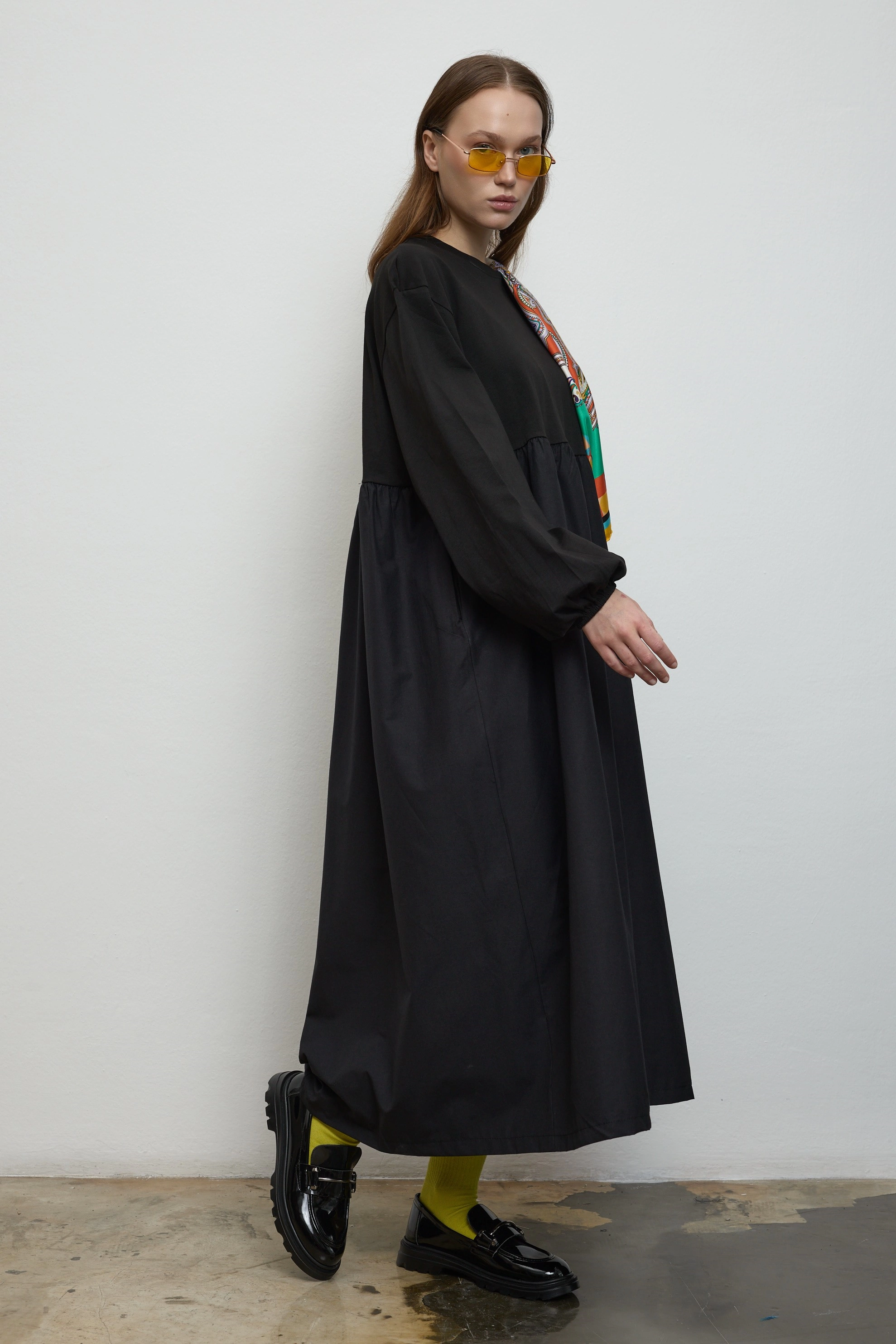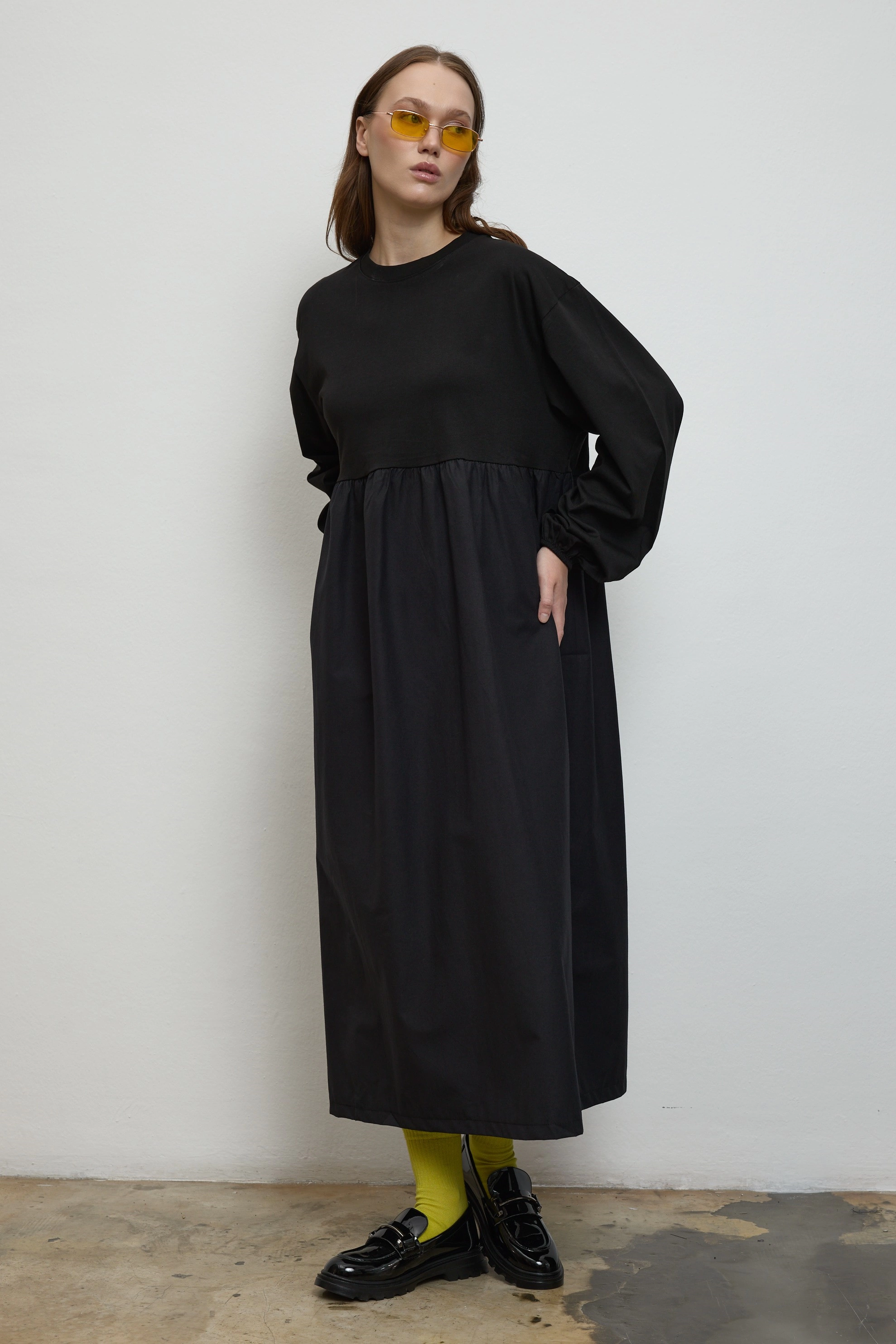 Qanu Nora Sweatshirt Elbise Siyah