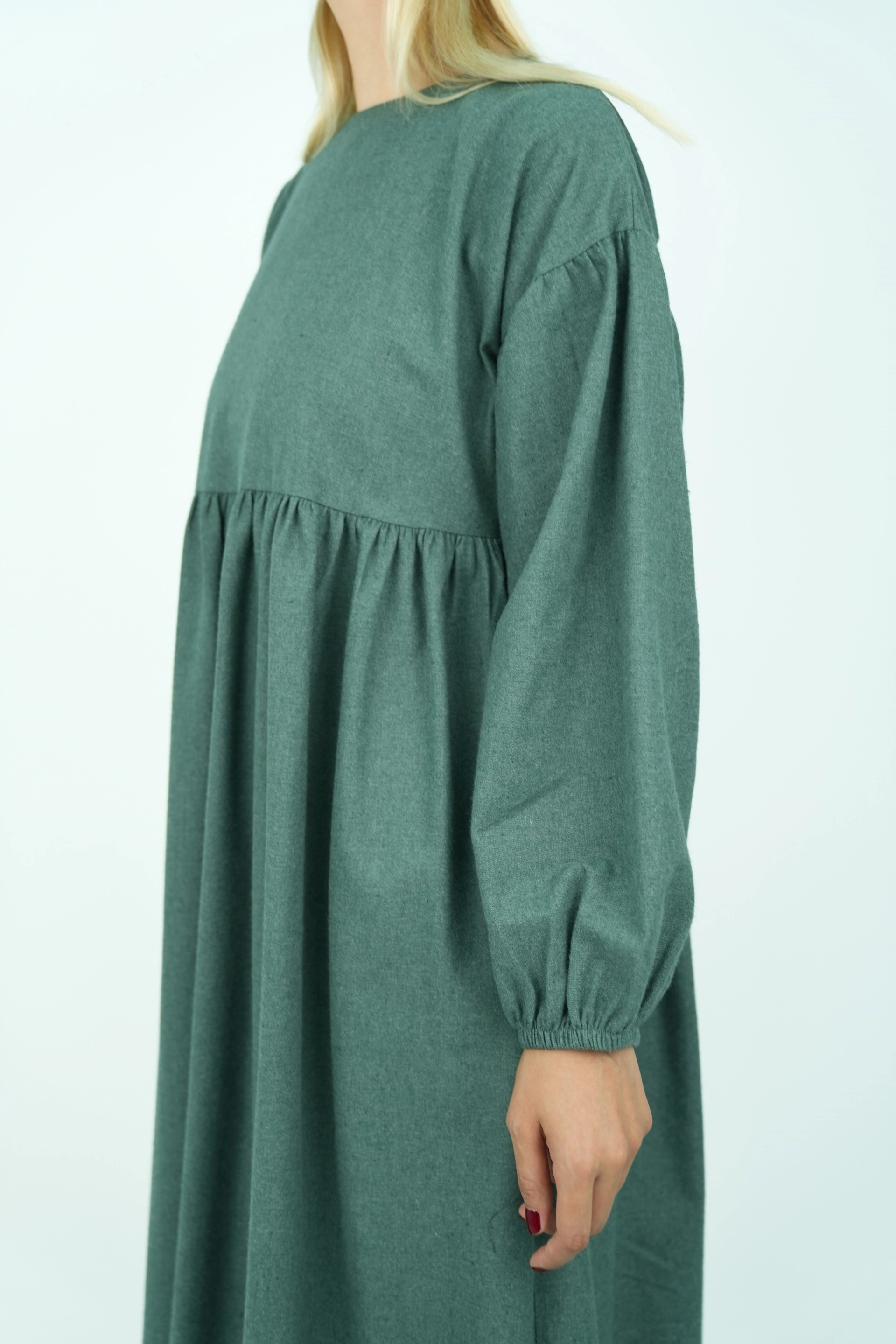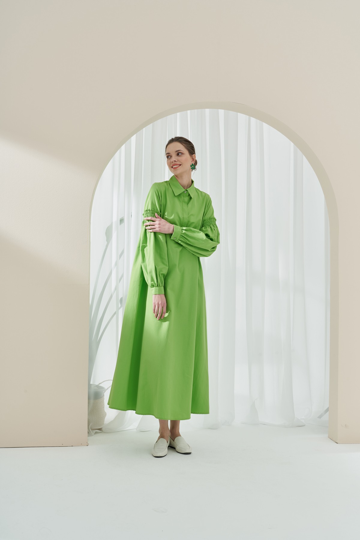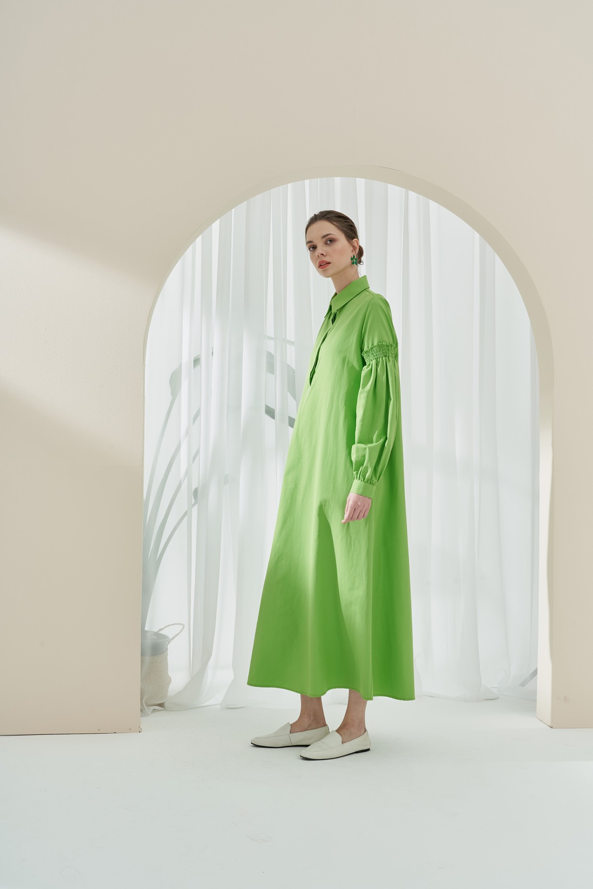 Qanu Büzgülü Pamuklu Elbise Yeşil