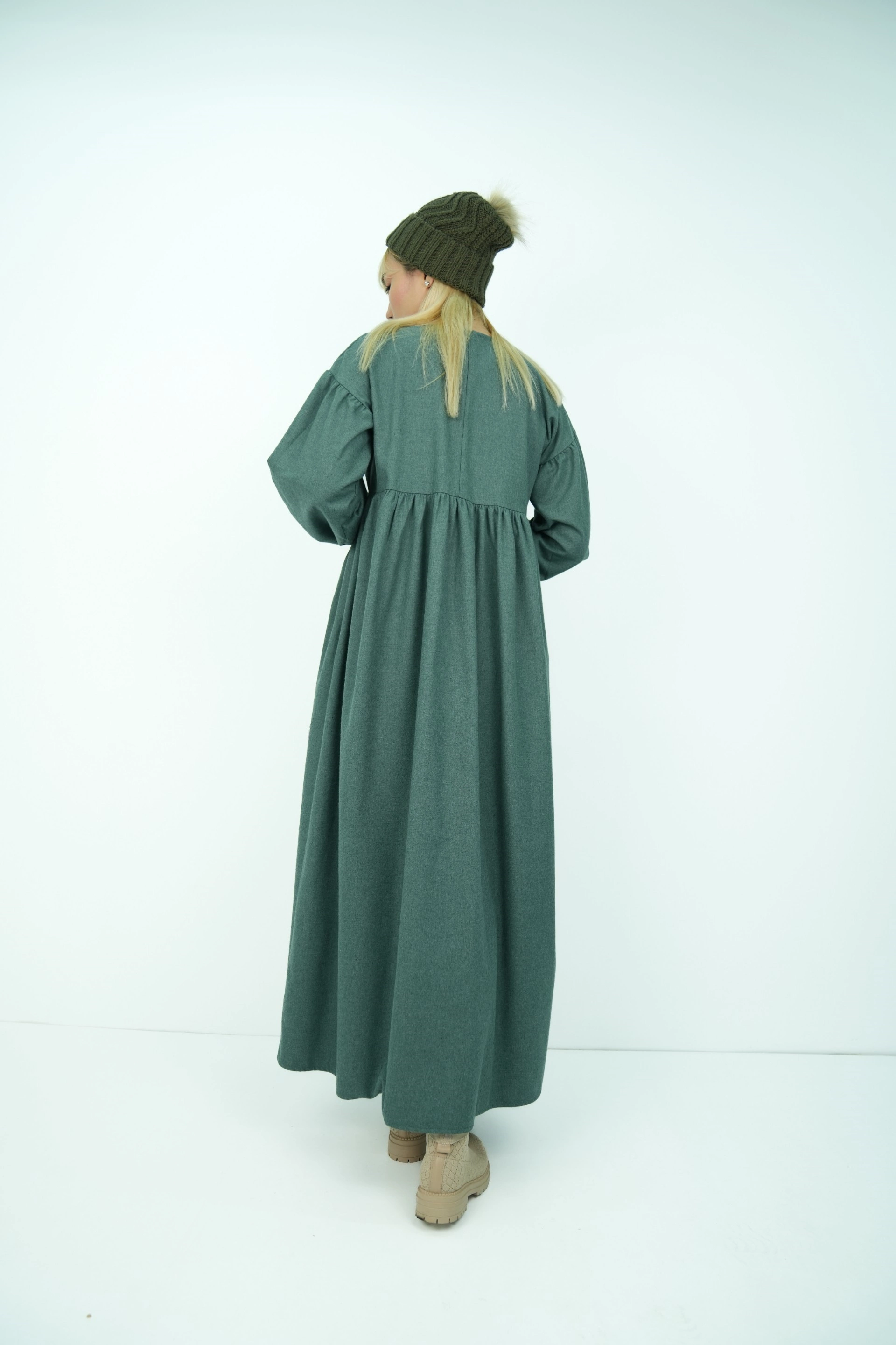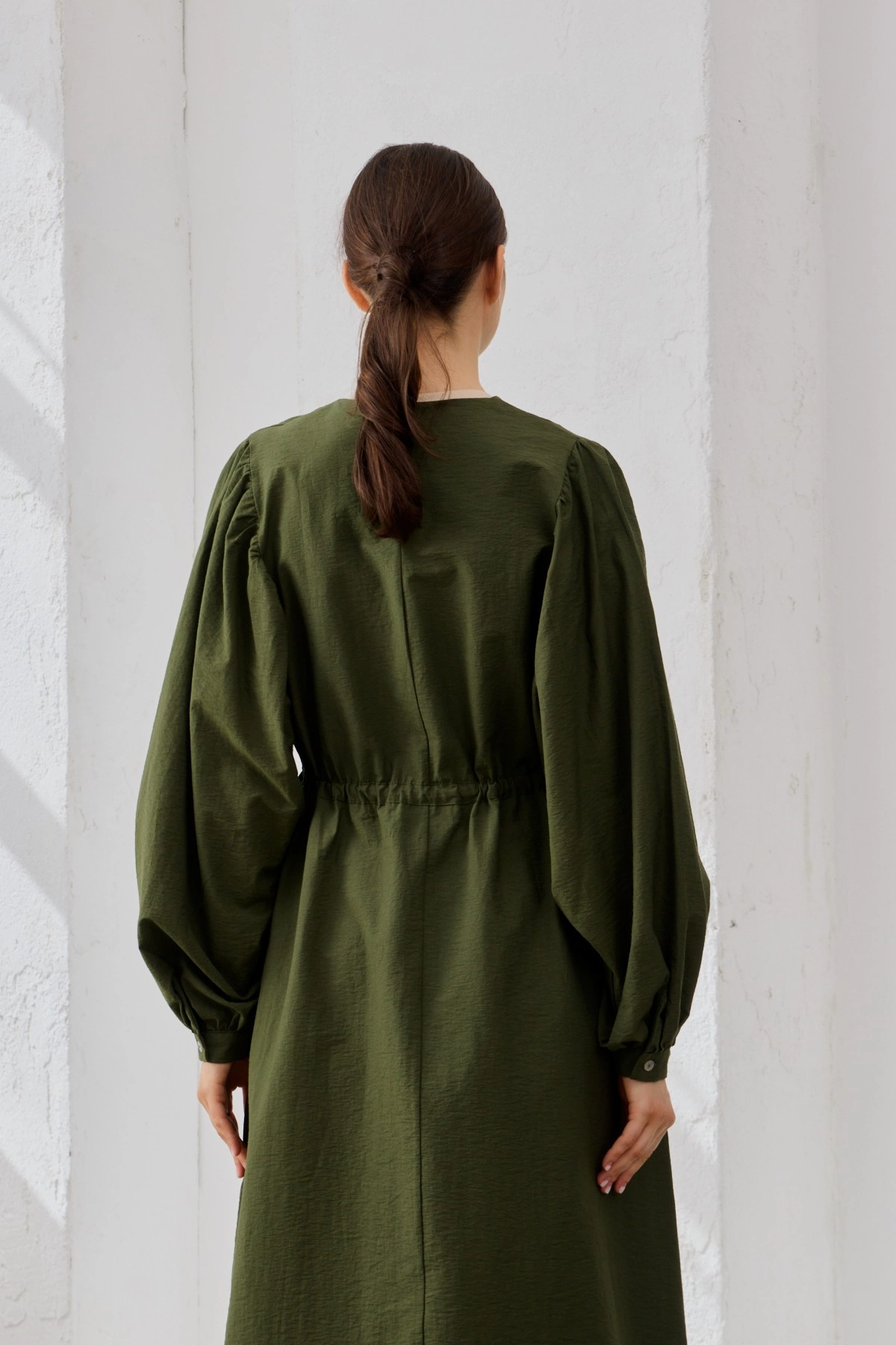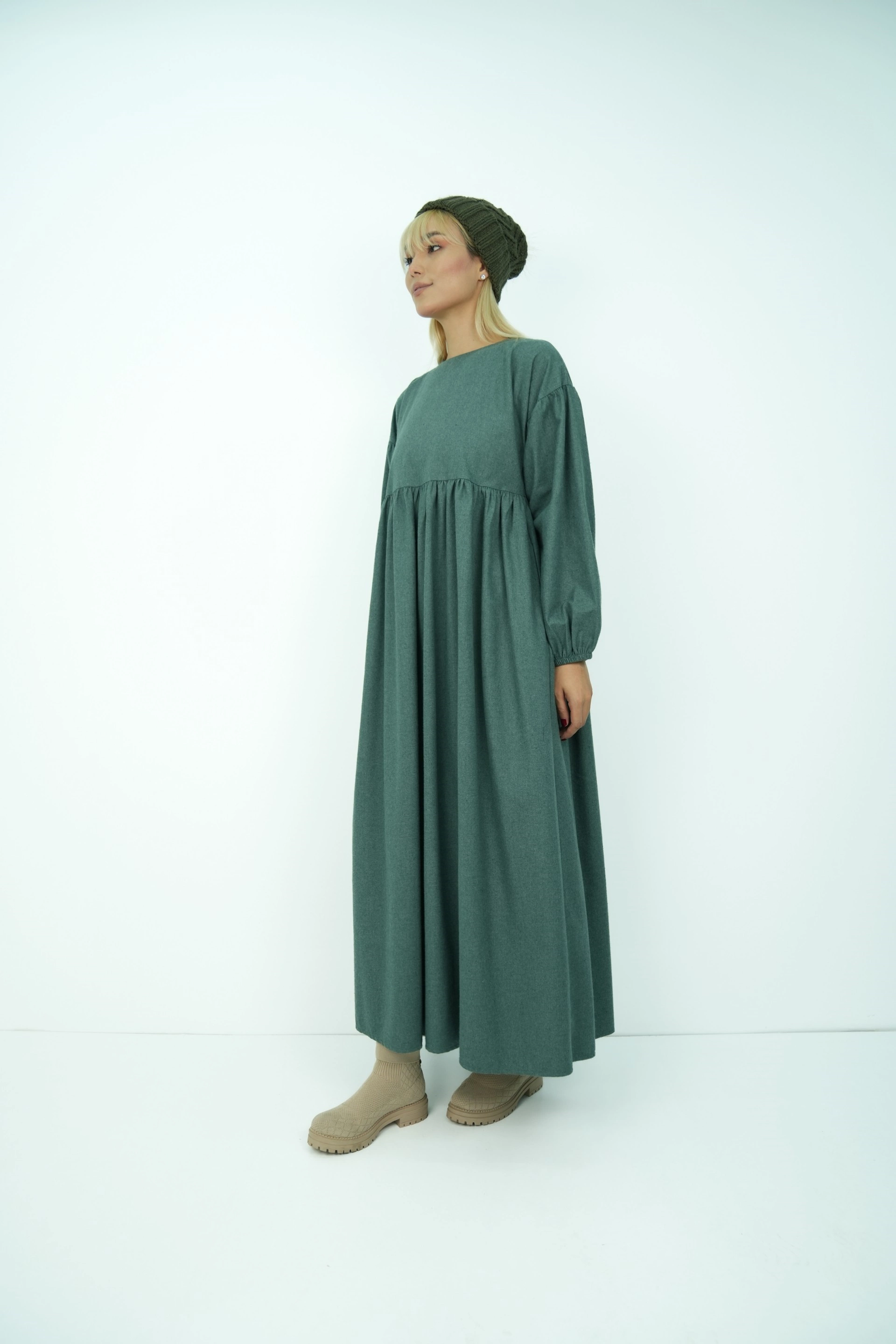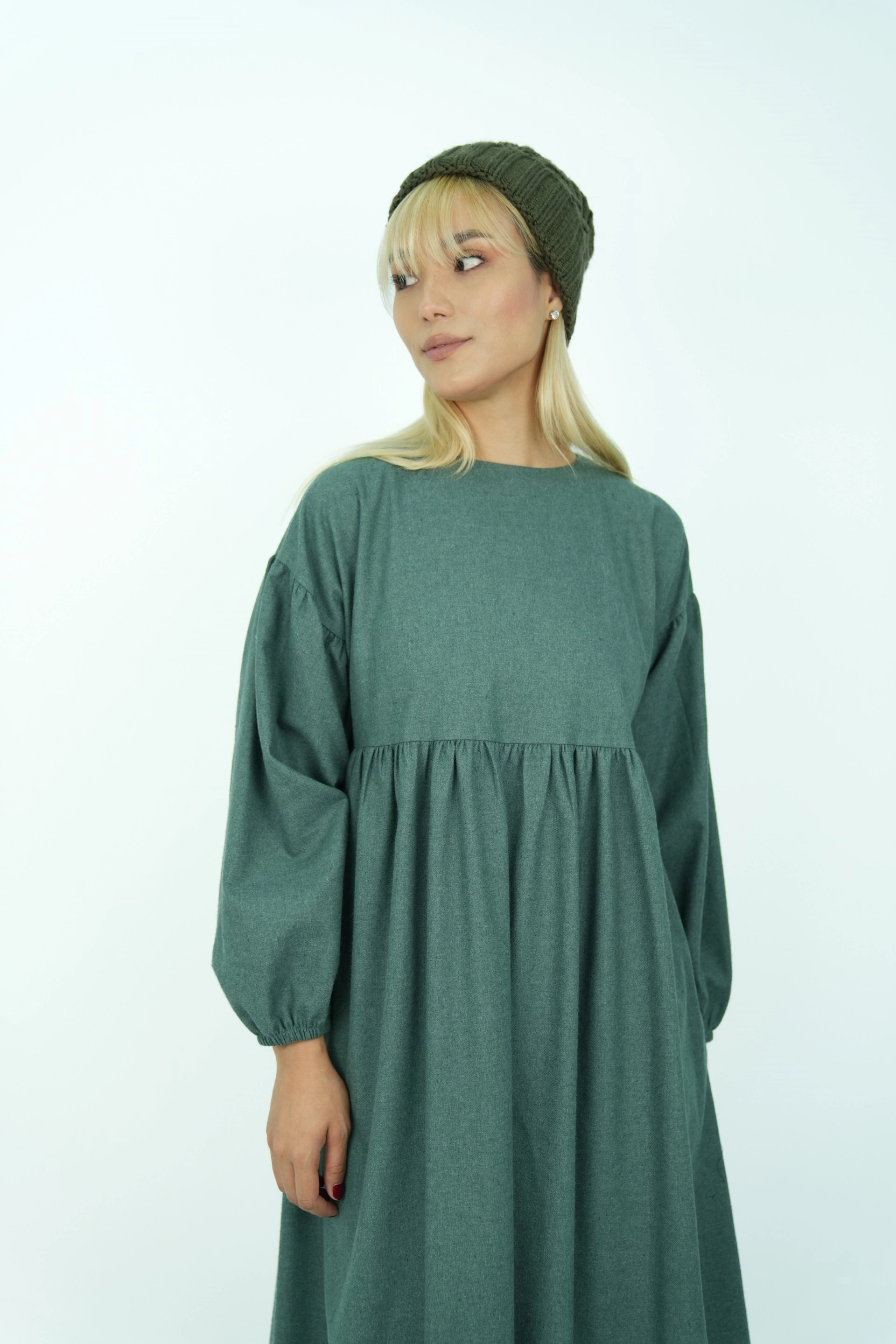 Qanu Büzgülü Pamuklu Elbise Yeşil