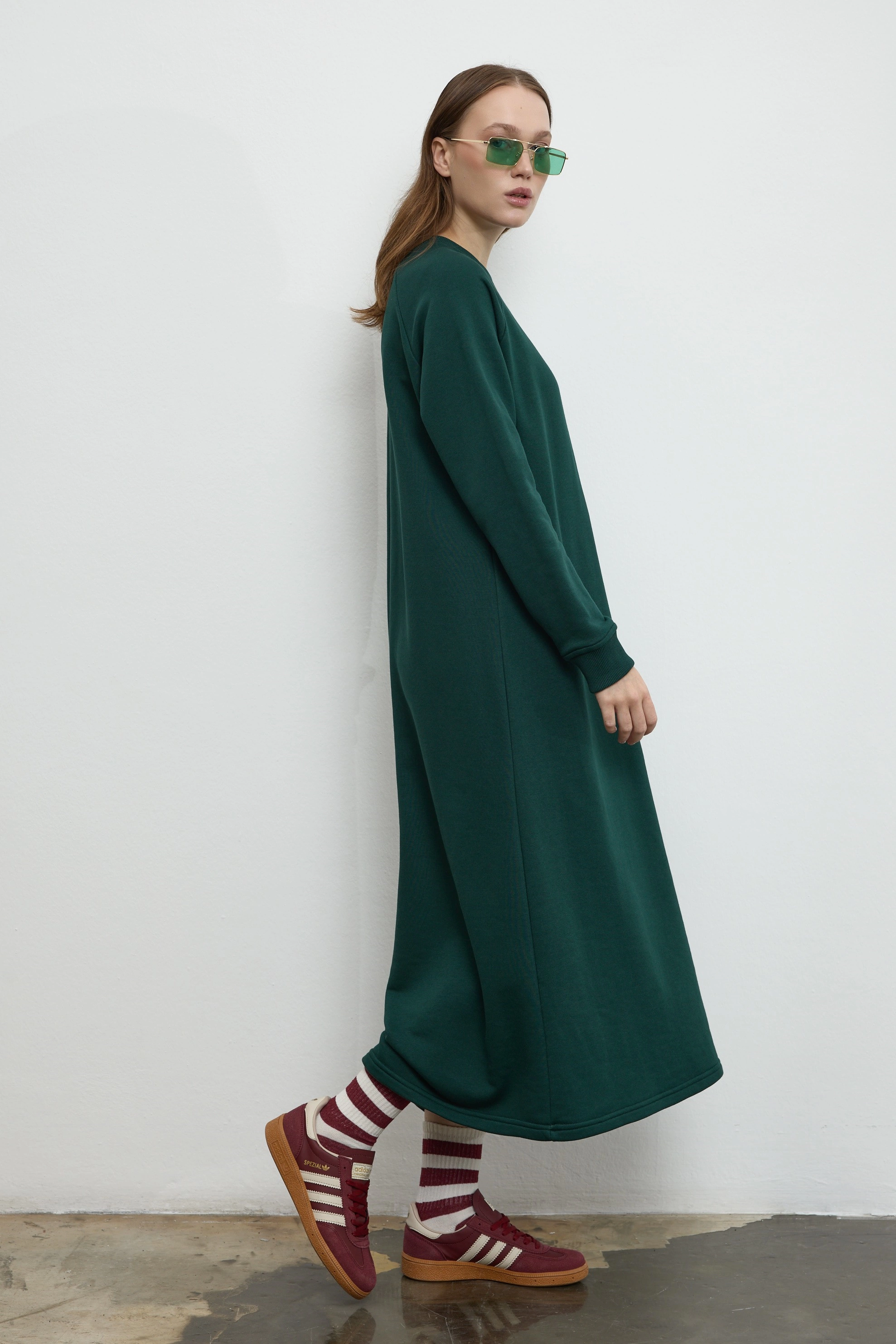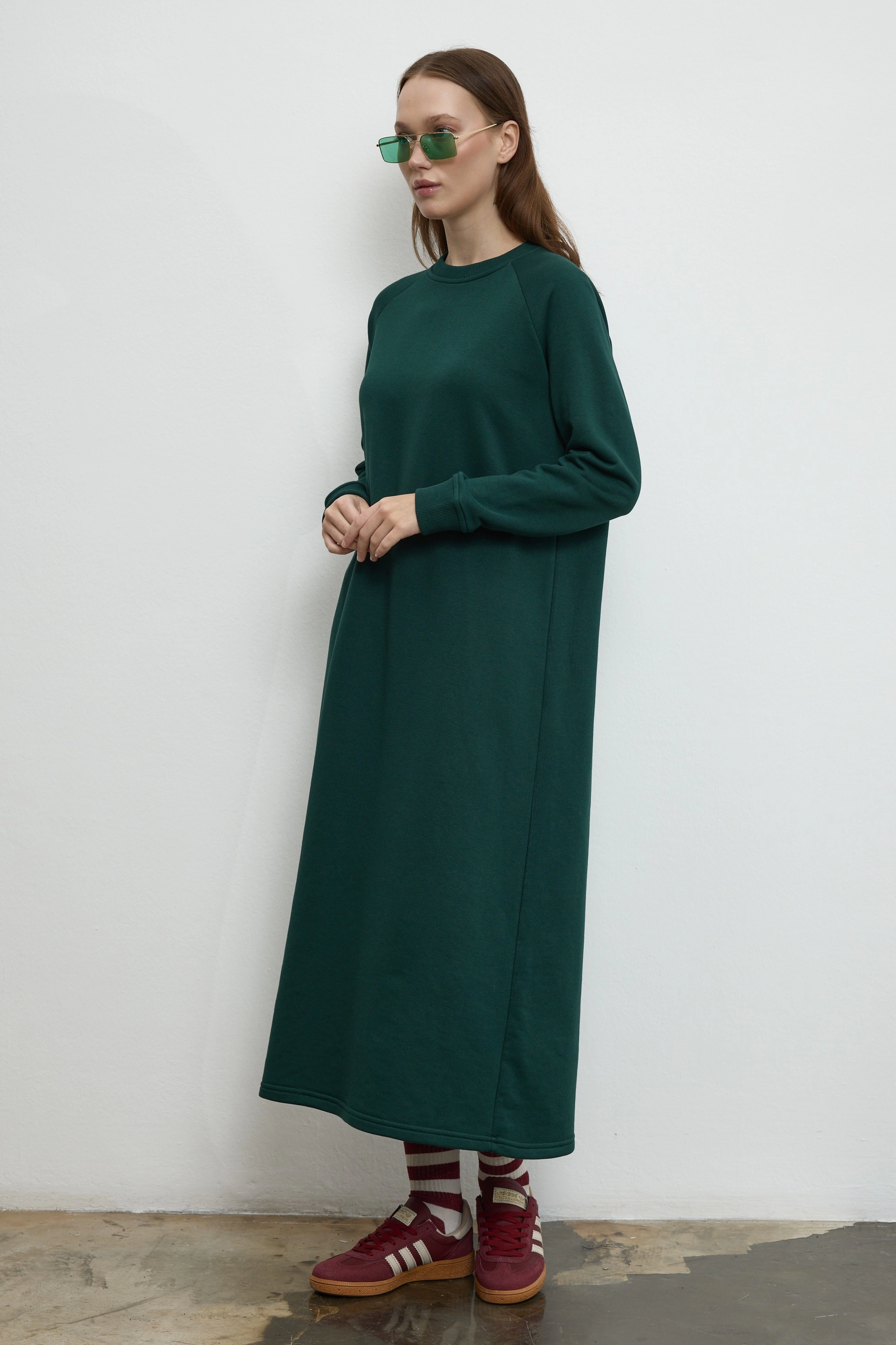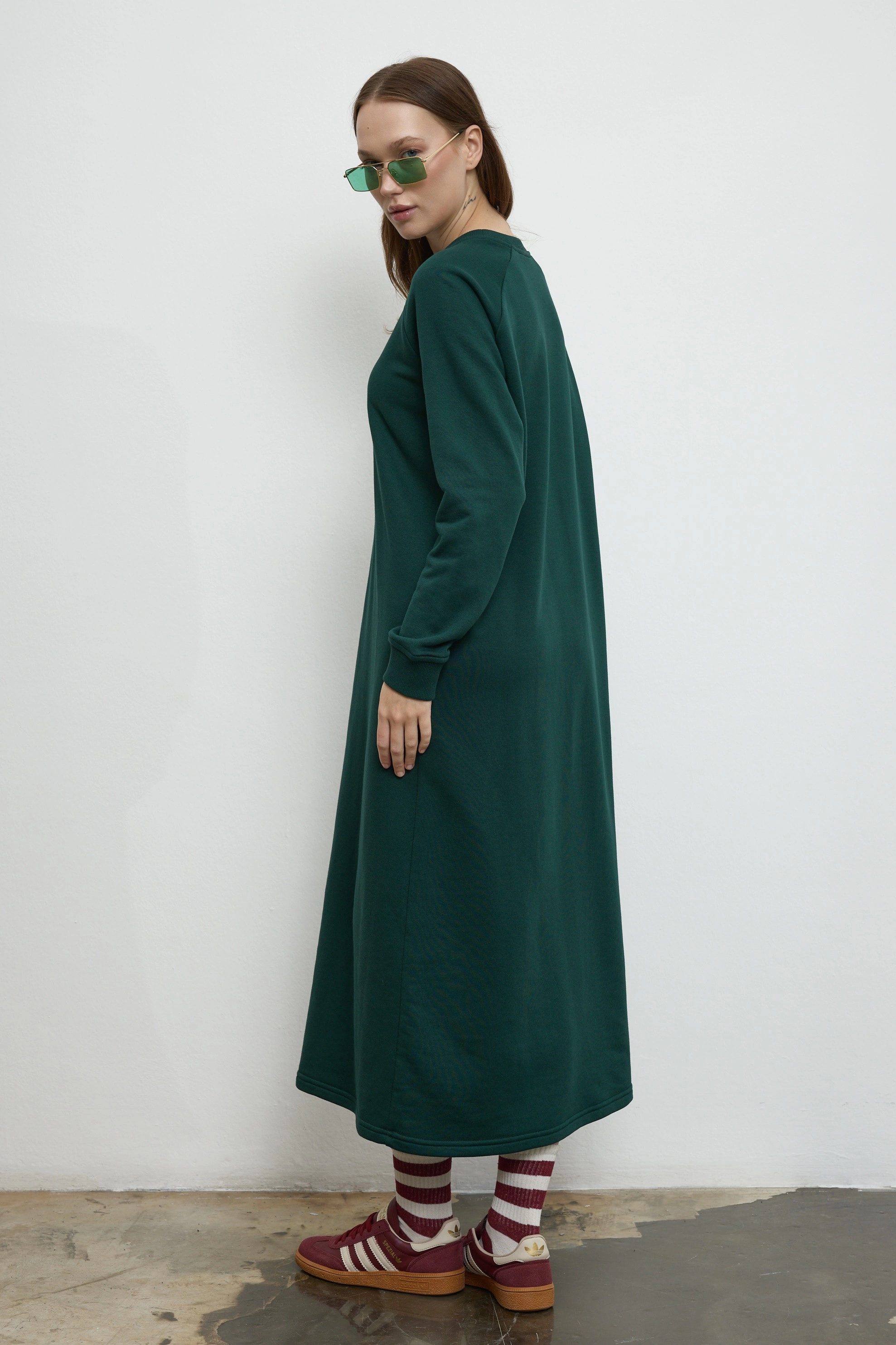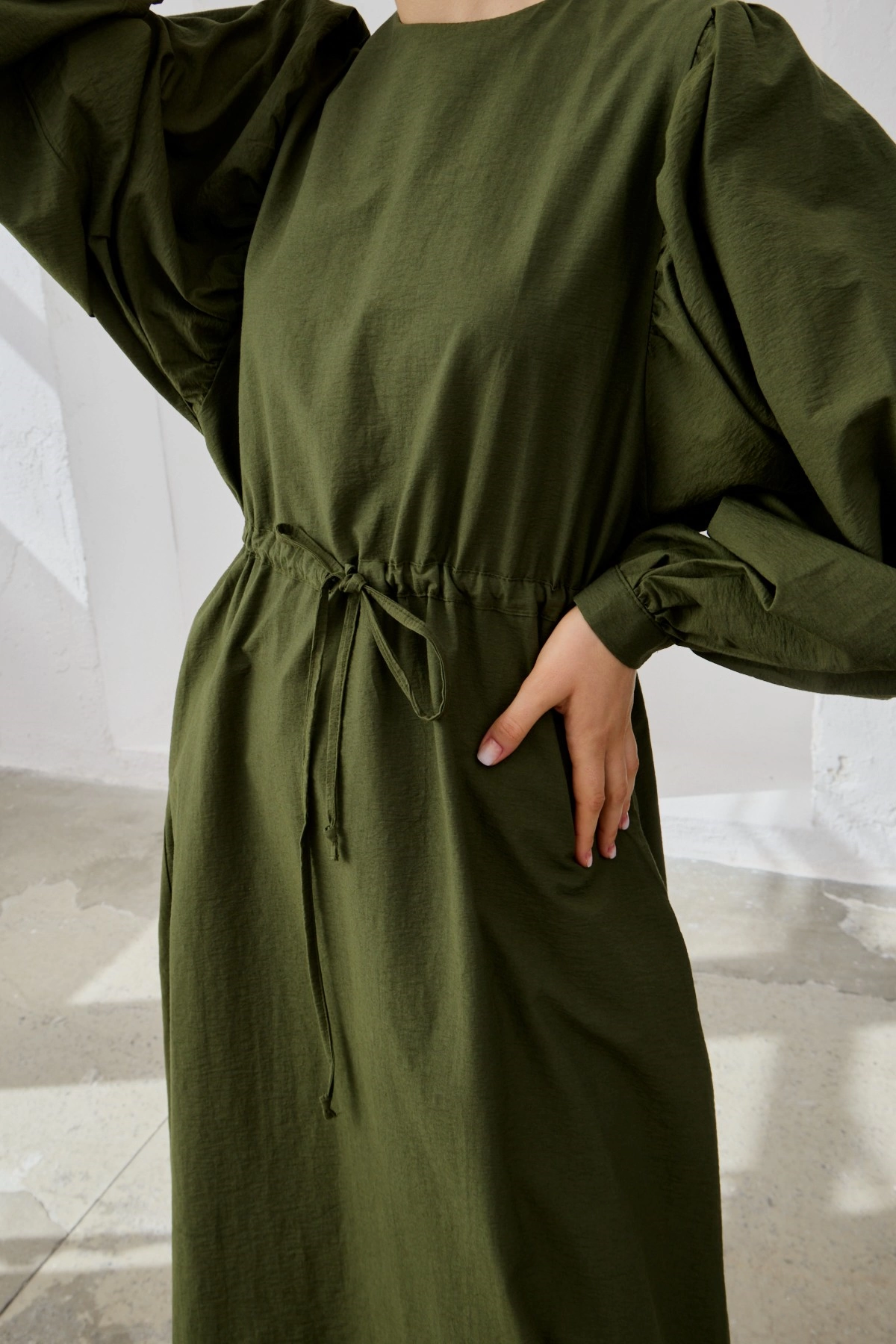 Qanu Pamuklu Büzgülü Elbise Yeşil