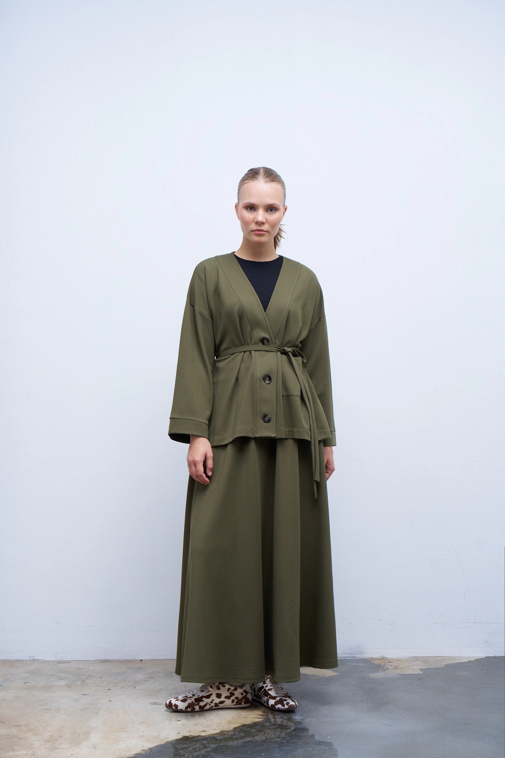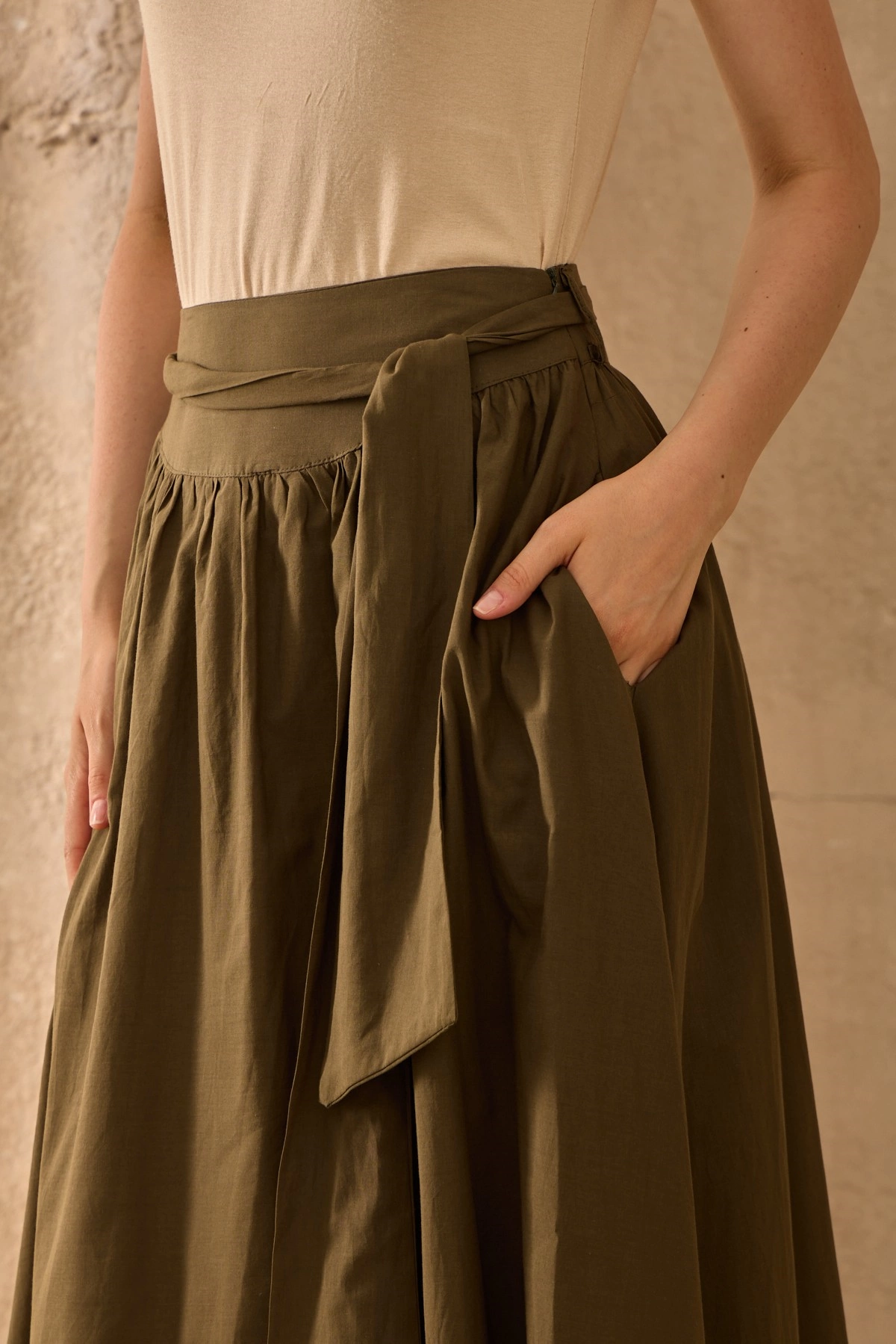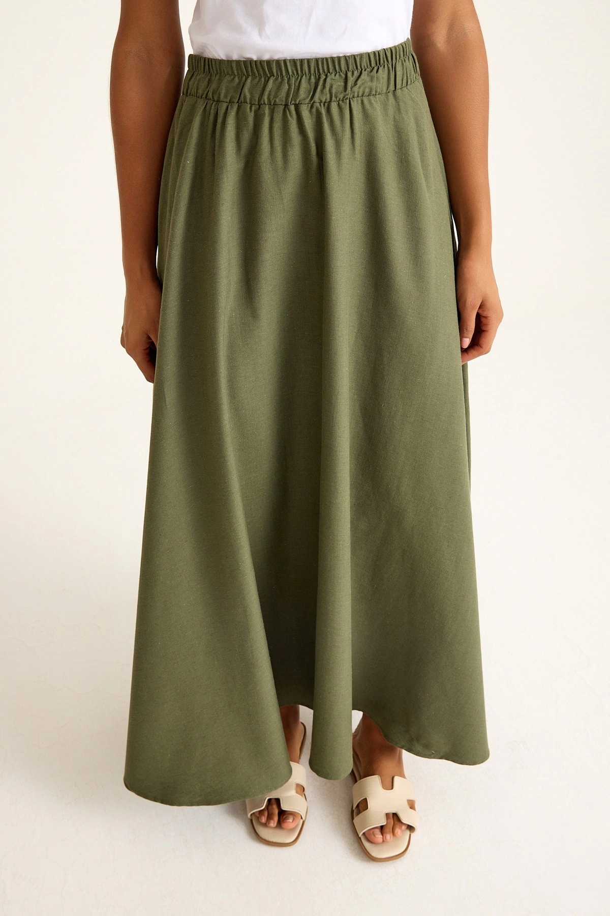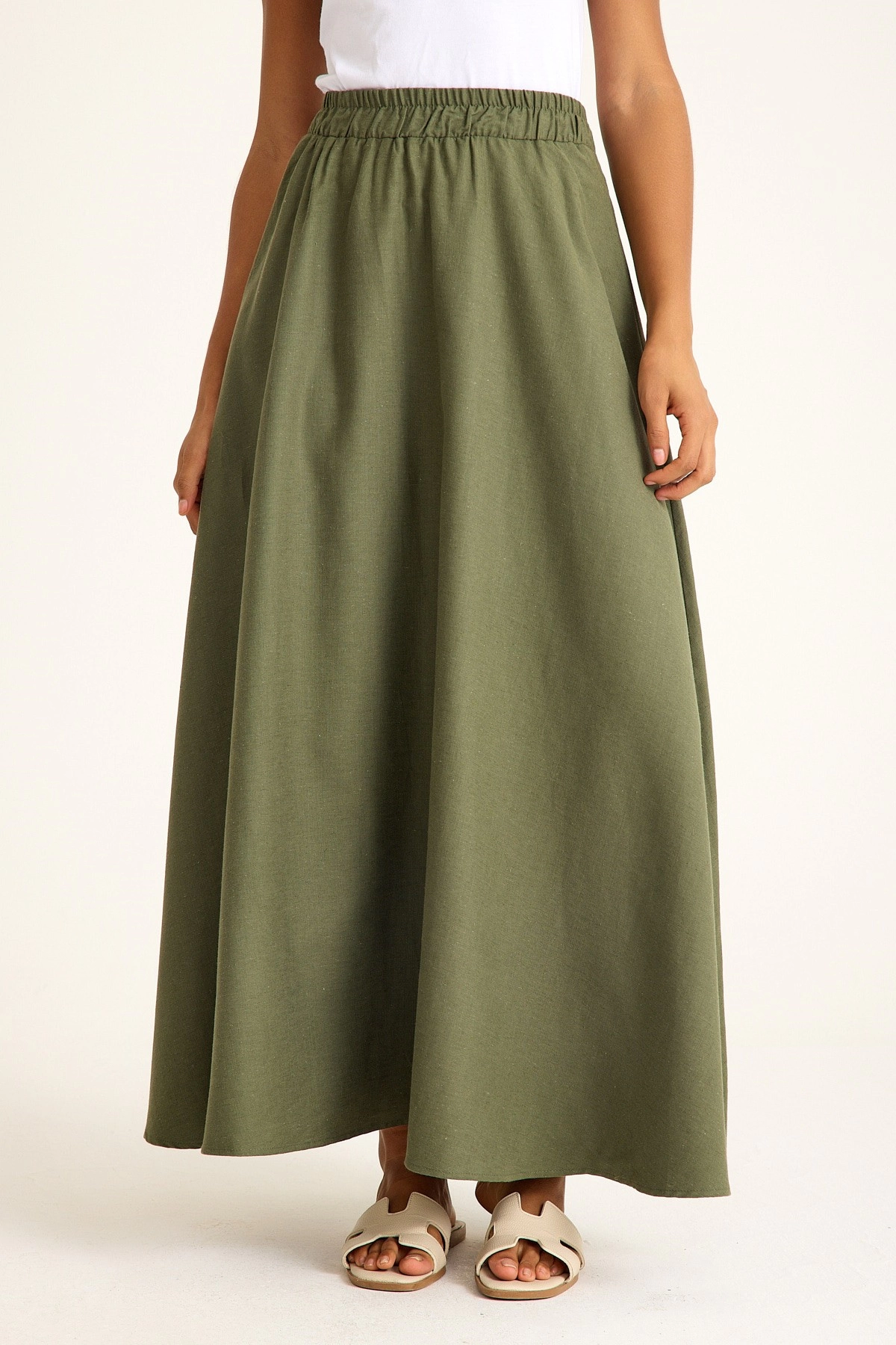 Qanu Kuşaklı Vual Etek Haki