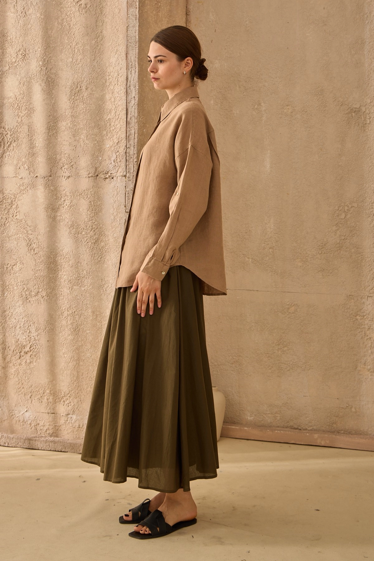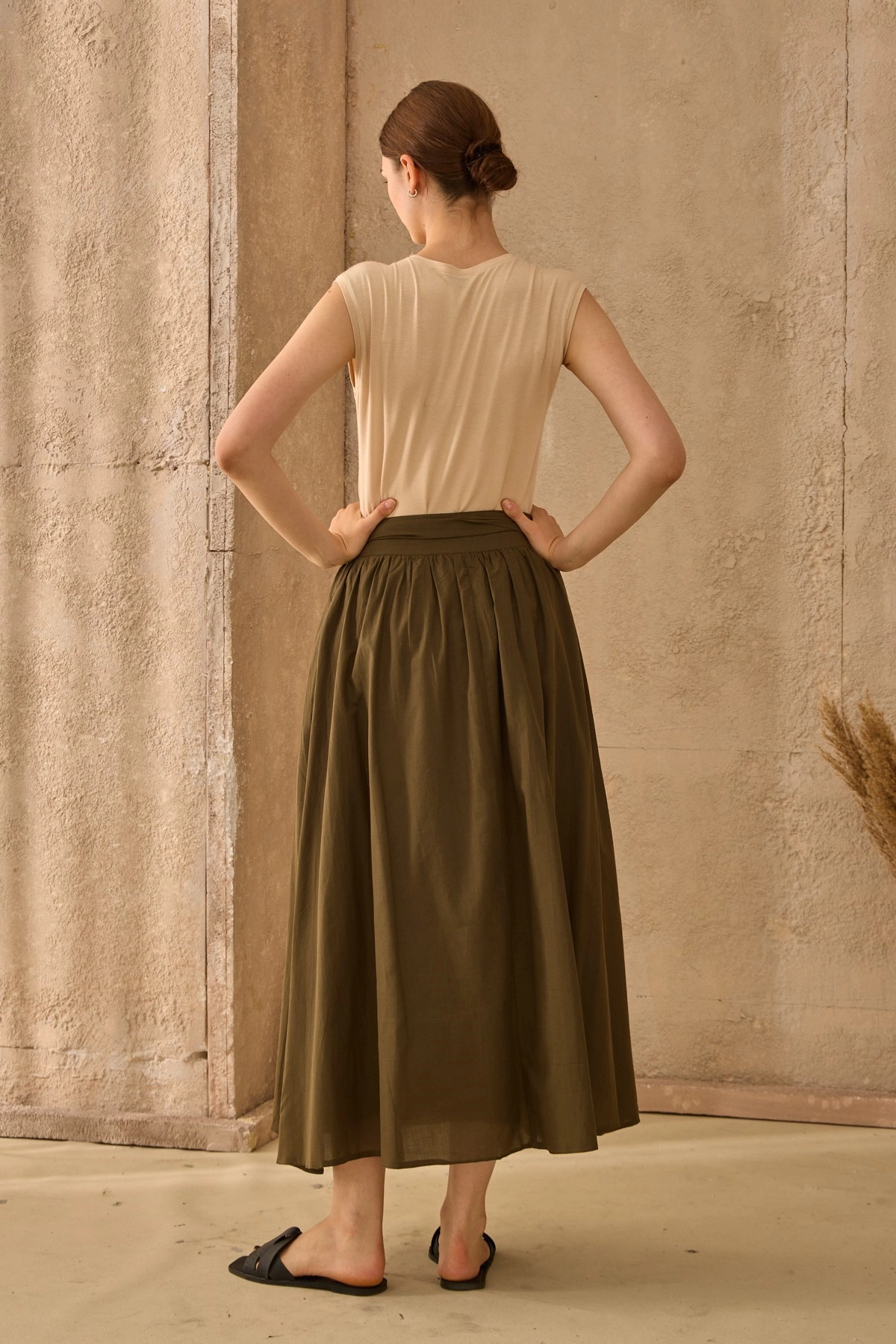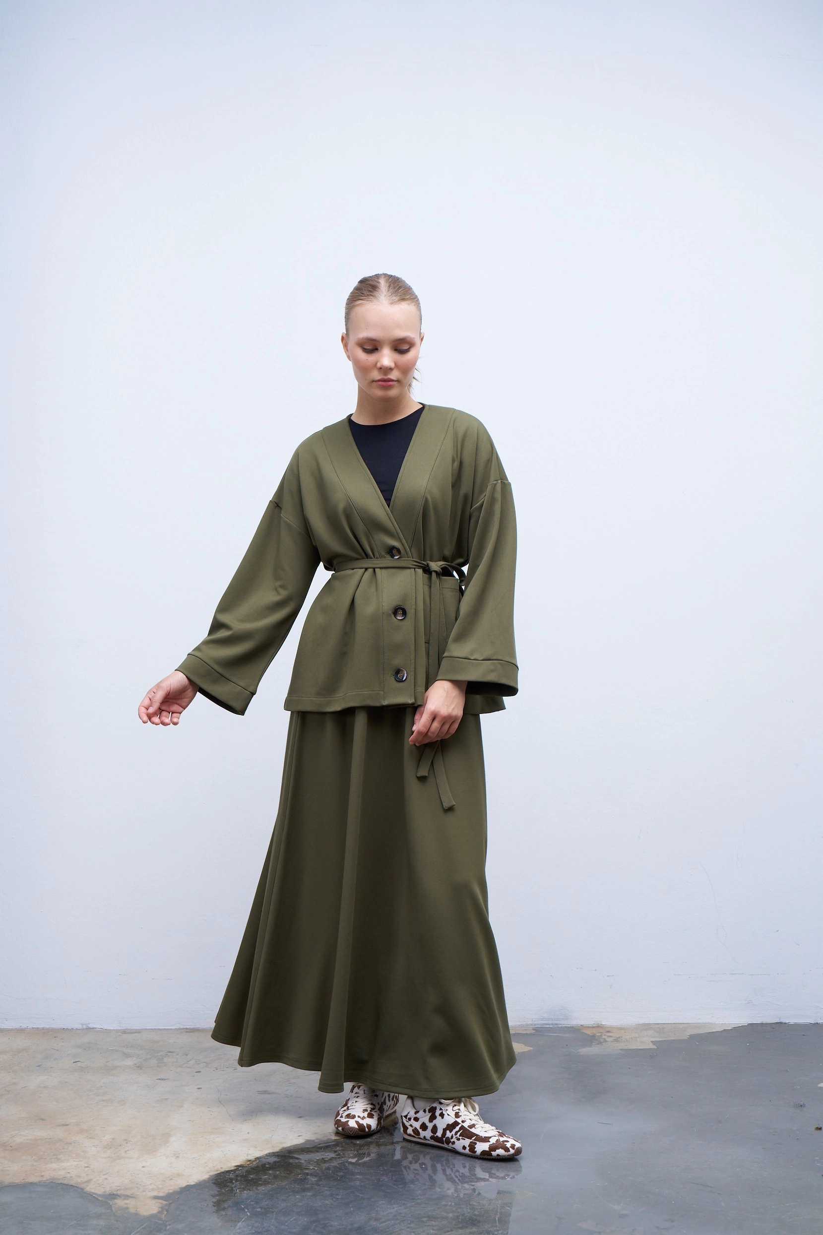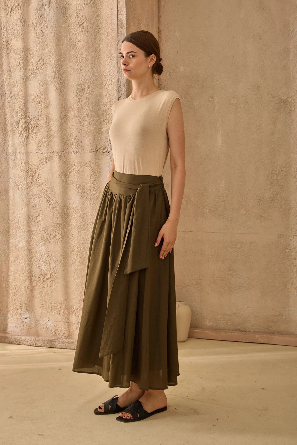 Qanu Kuşaklı Vual Etek Haki