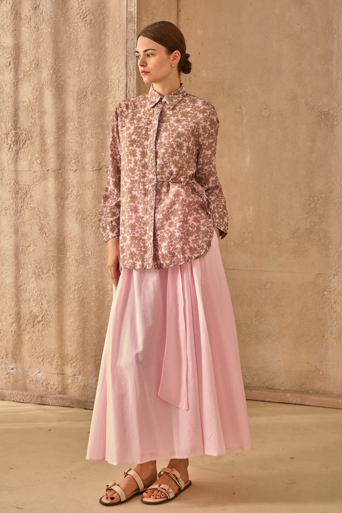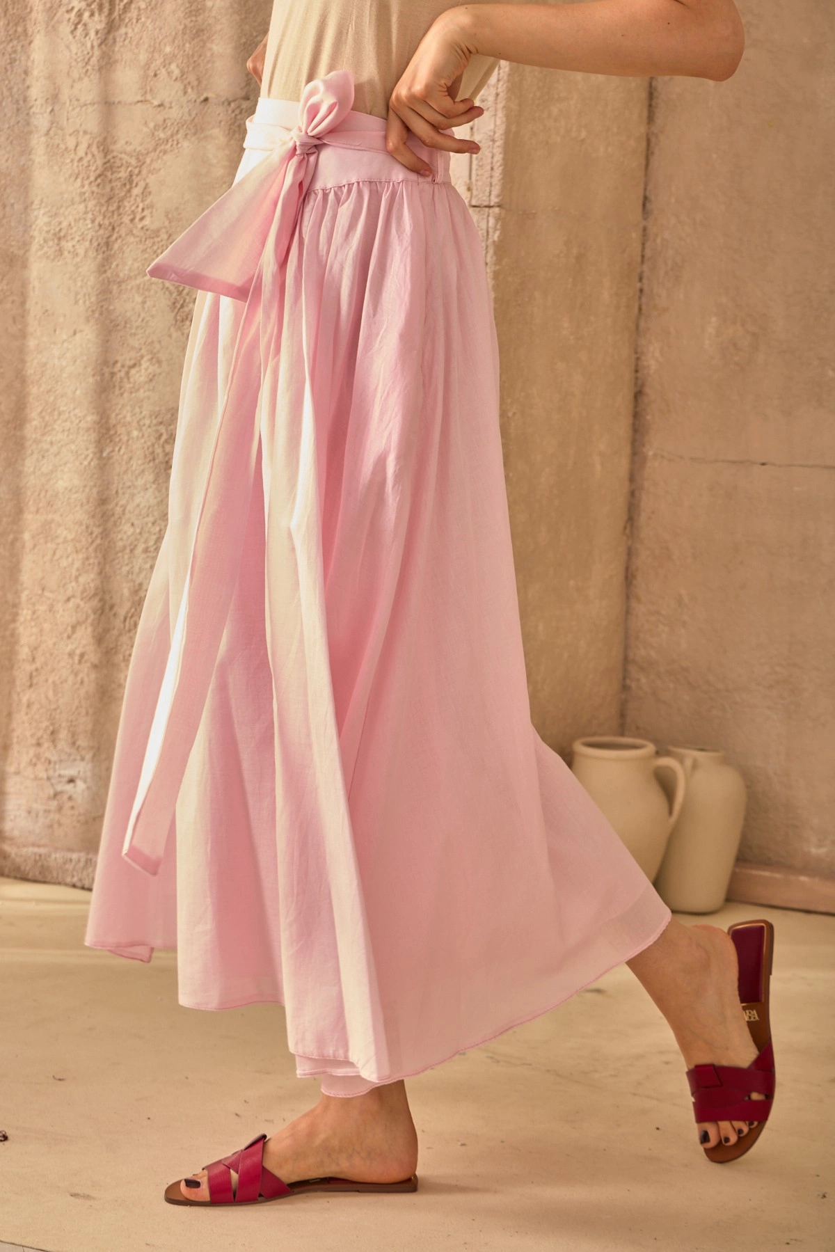 Qanu Kuşaklı Vual Etek Pembe