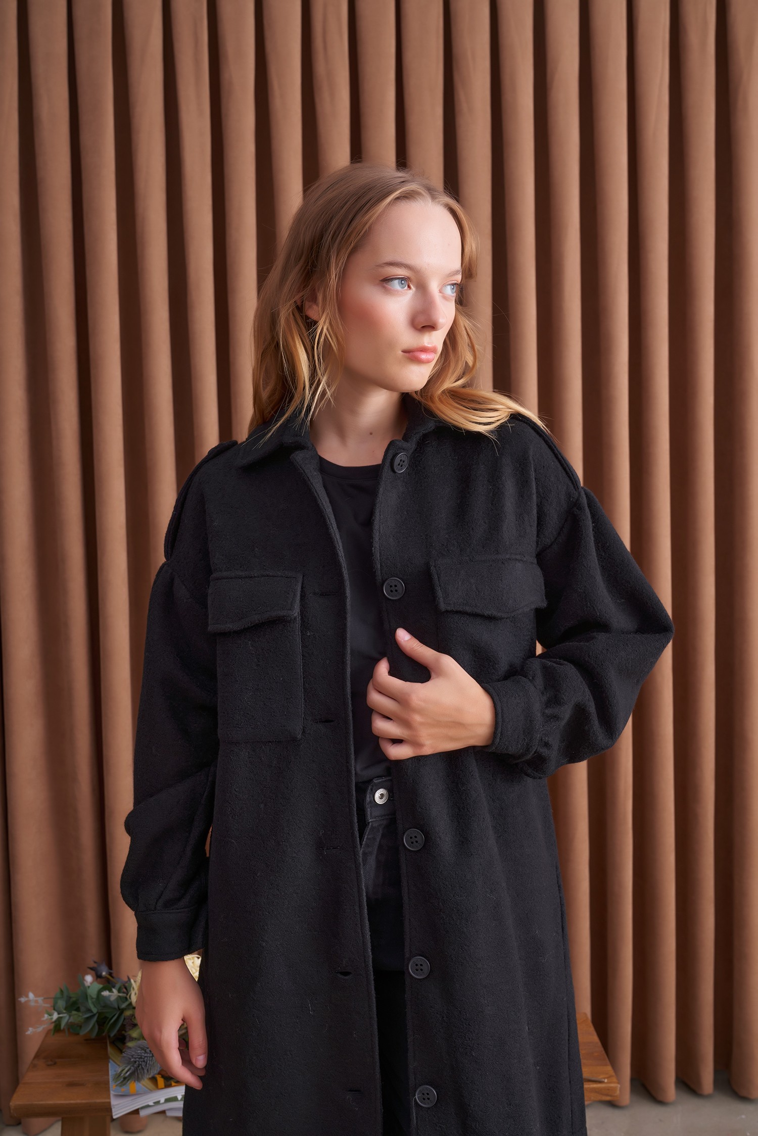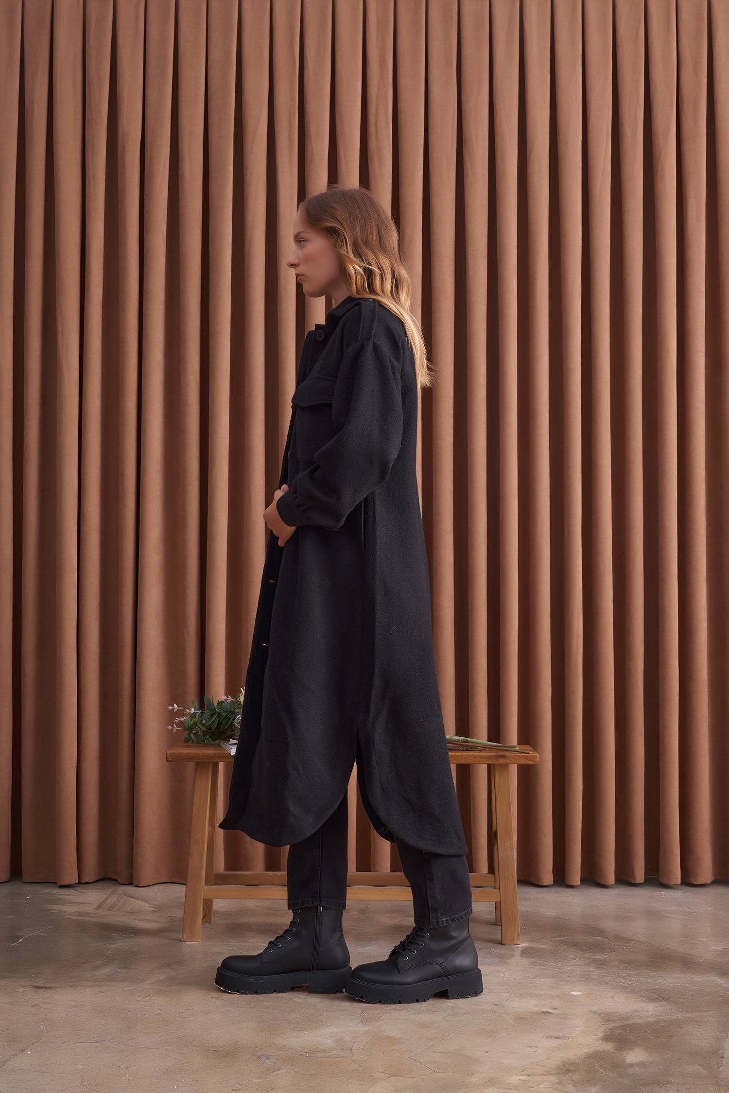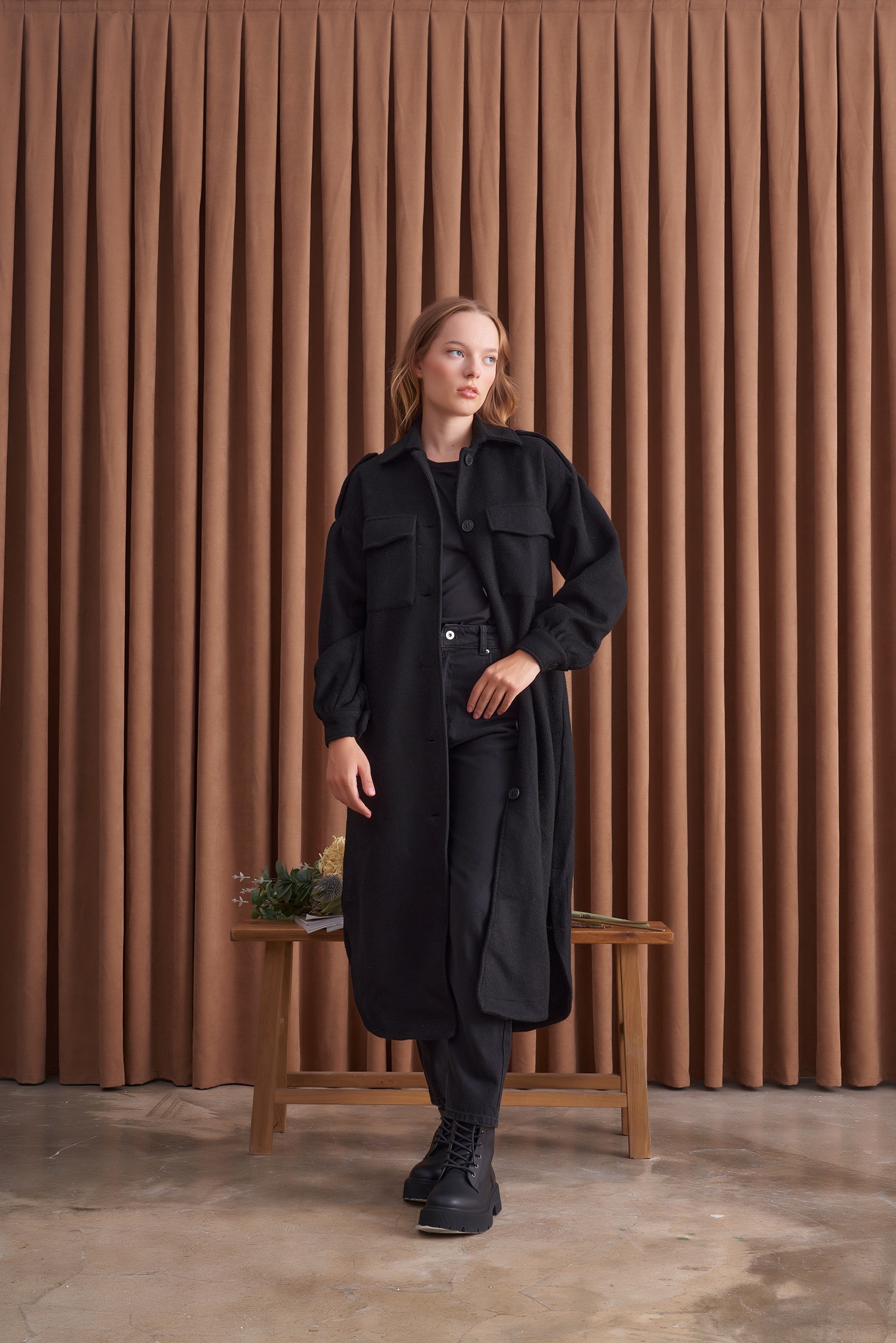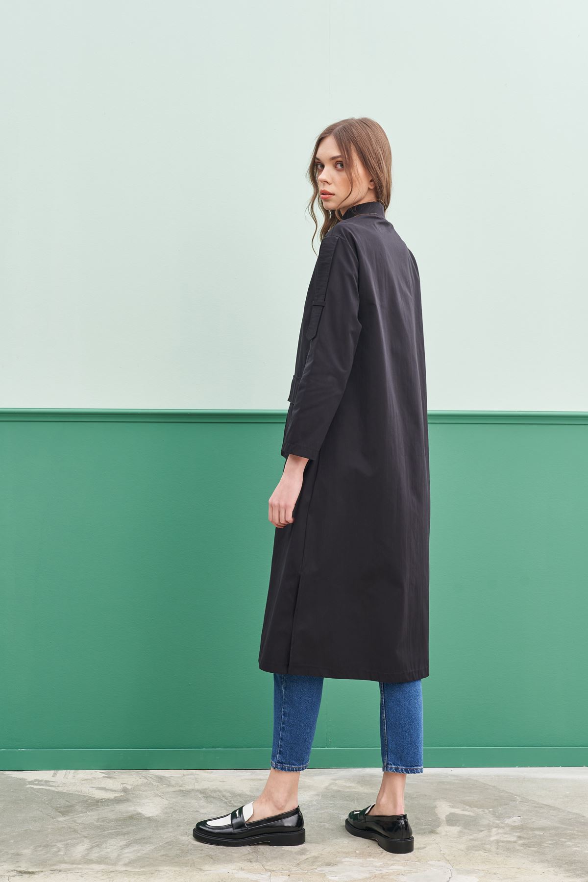 Qanu Körük Cepli Trençkot Siyah