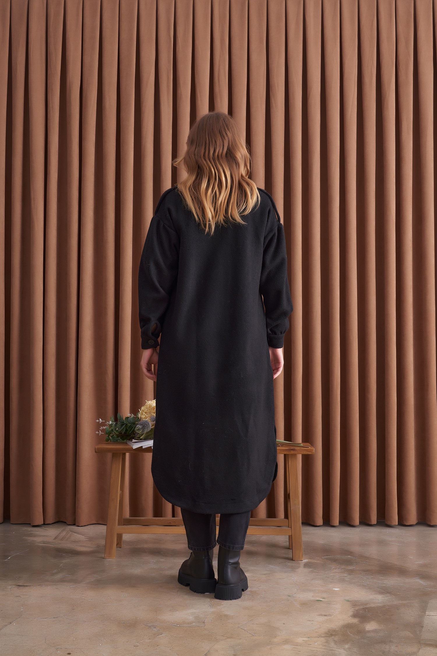 Qanu Kuşaklı Gömlek Siyah