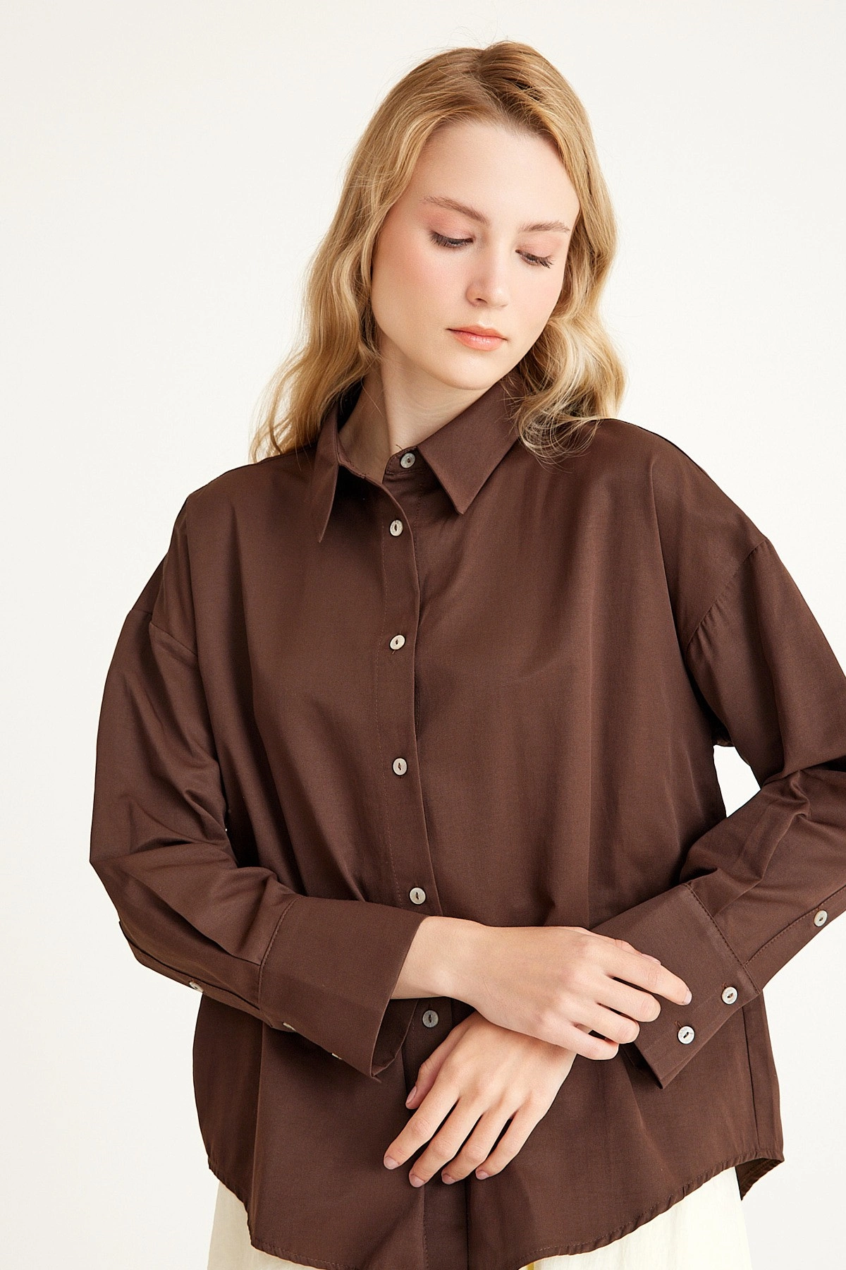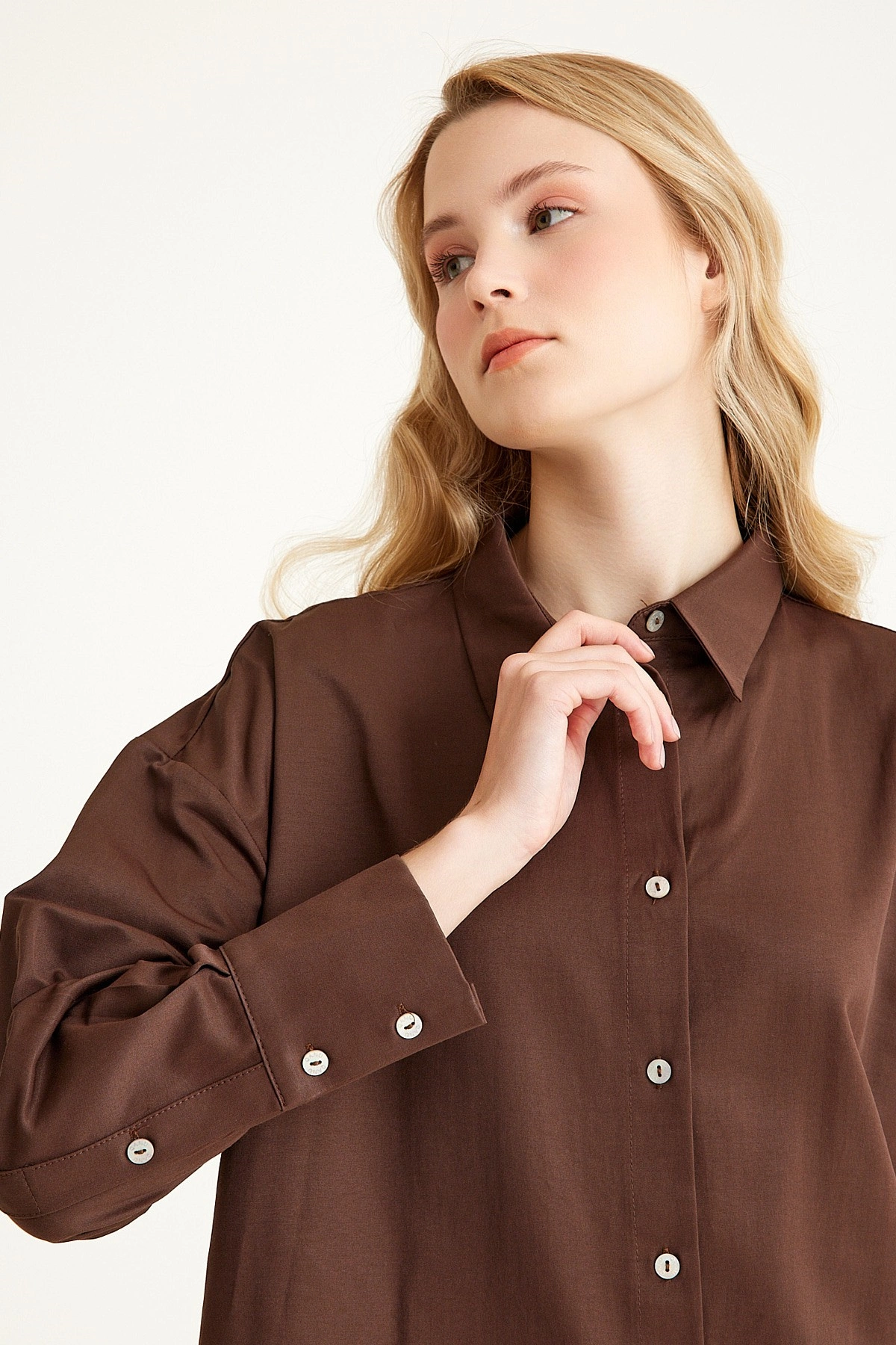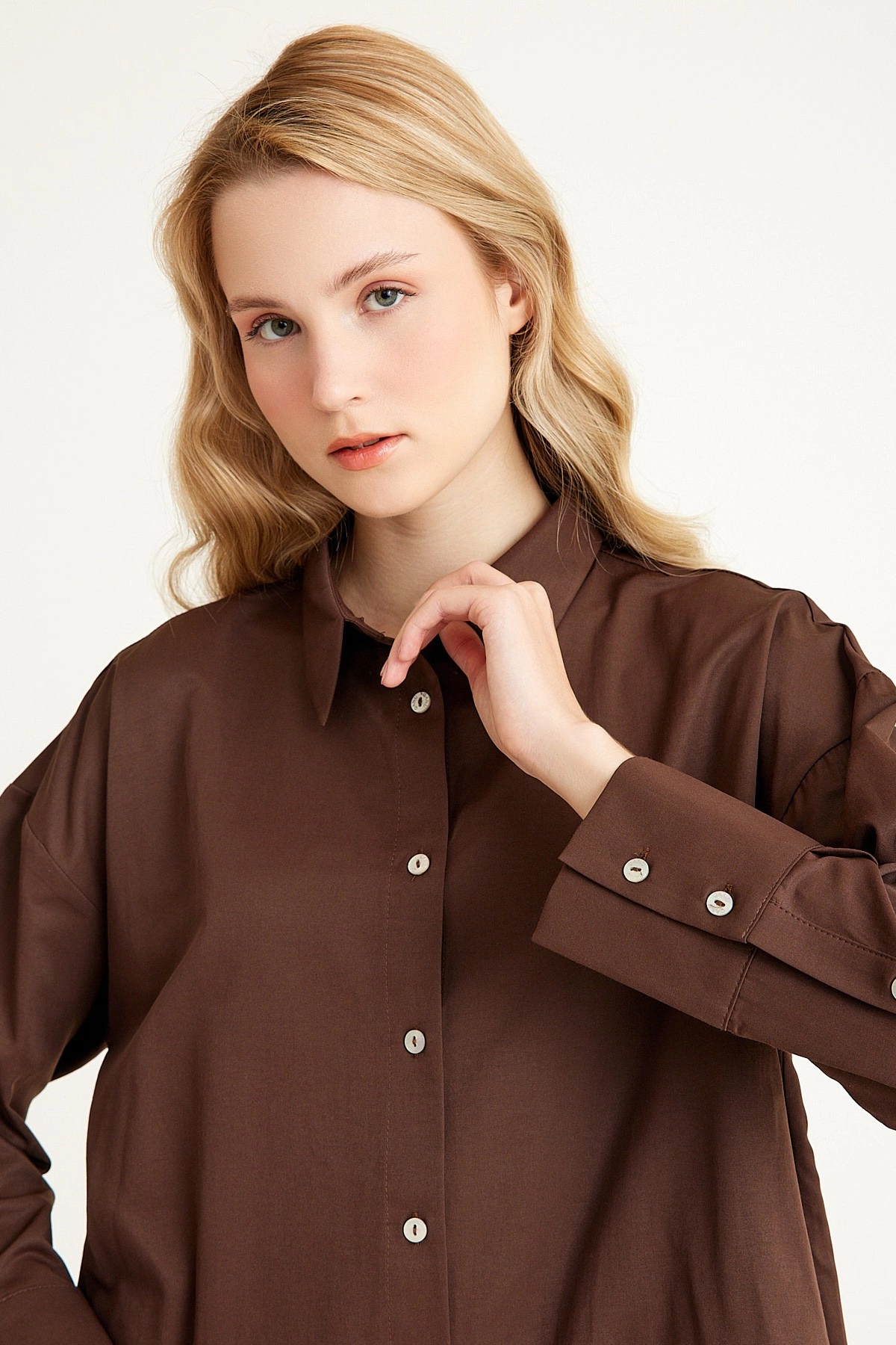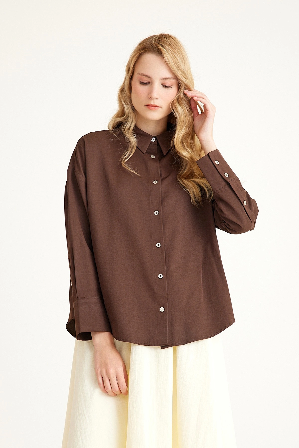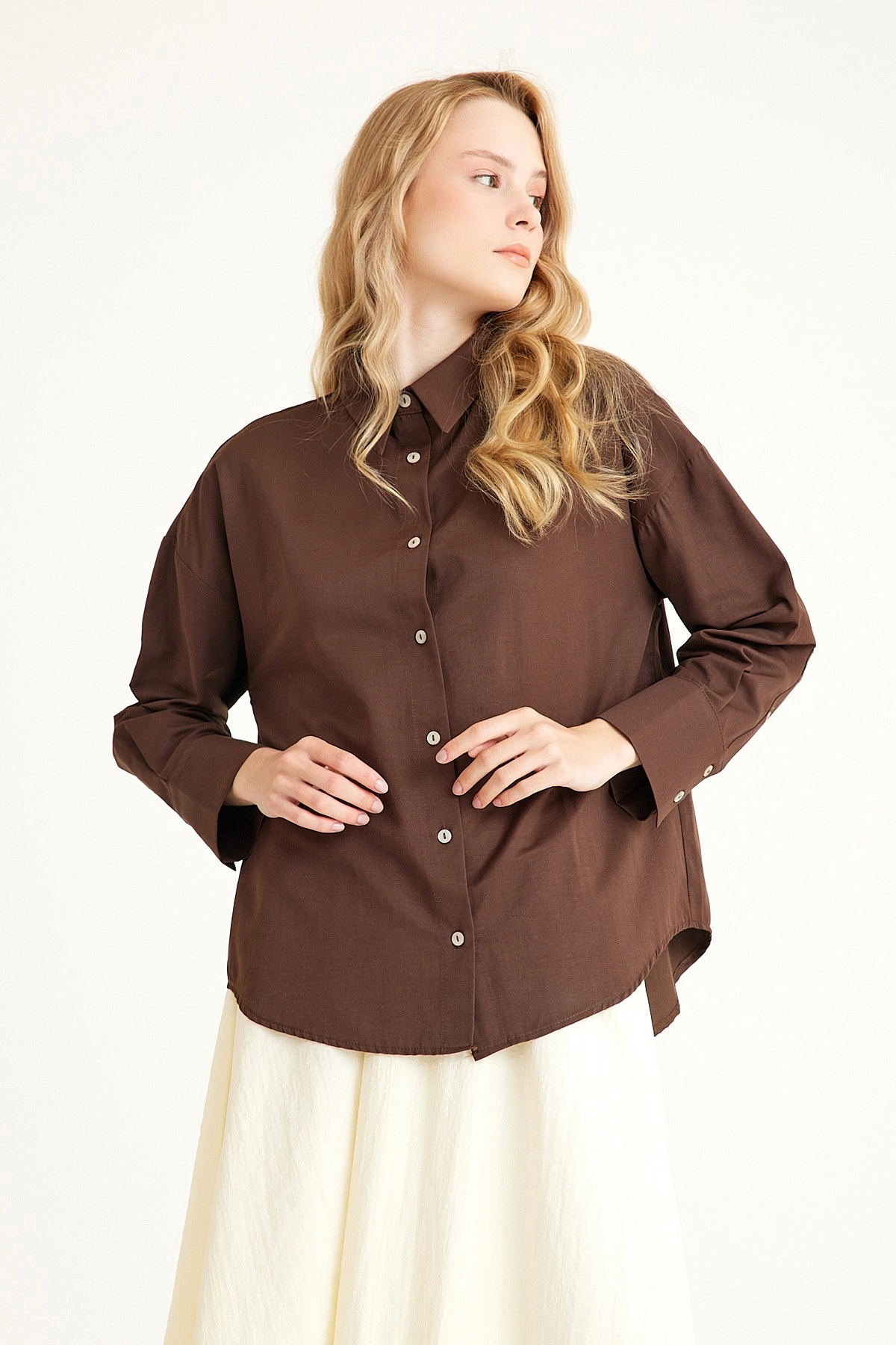 Qanu Poplin Kısa Gömlek Kahverengi