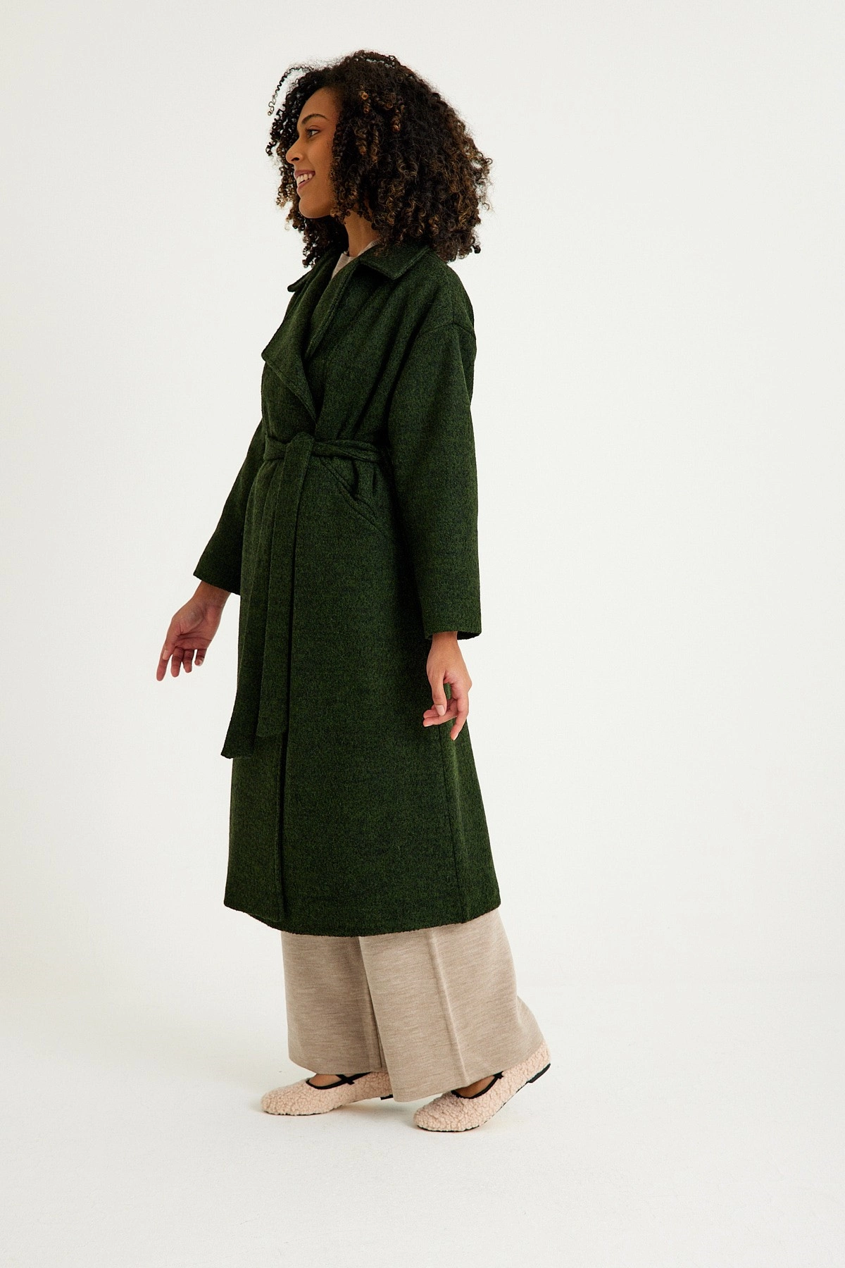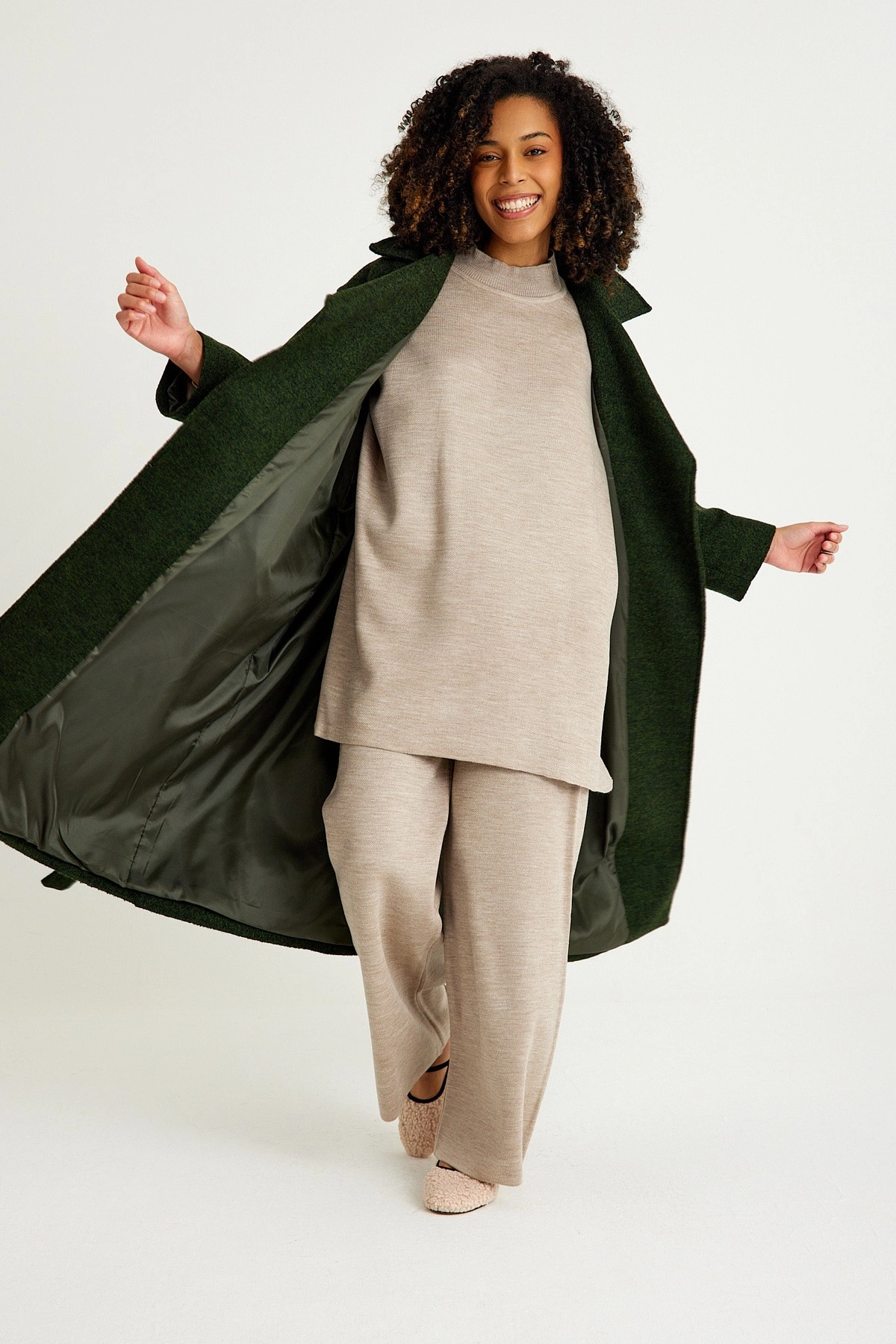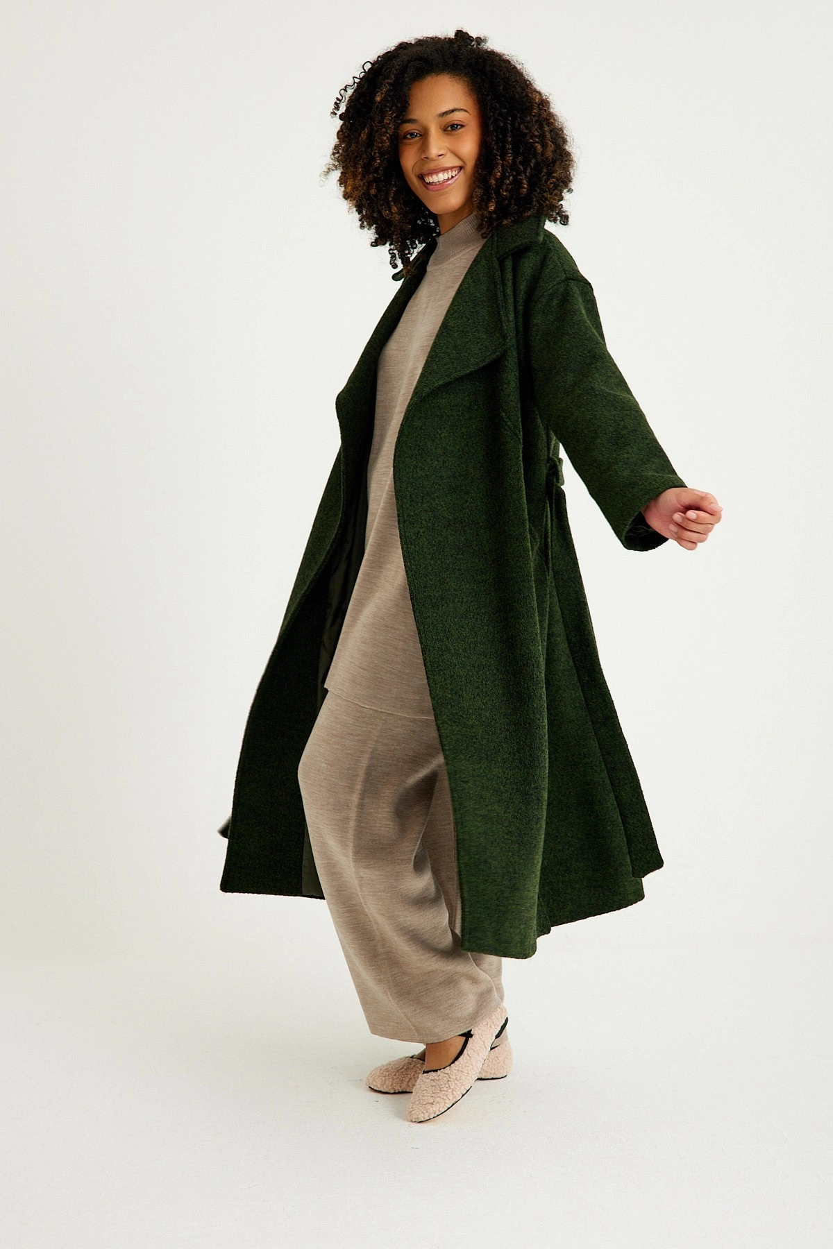 Qanu Beli Lastikli Krep Pantolon Yeşil