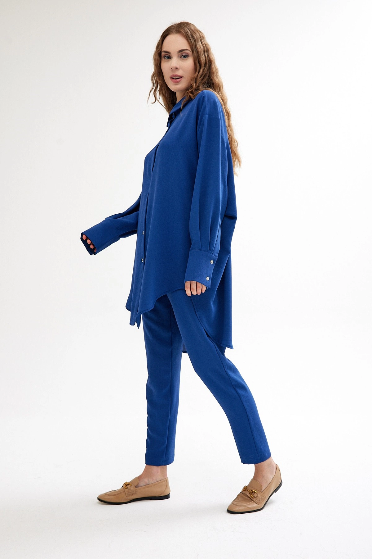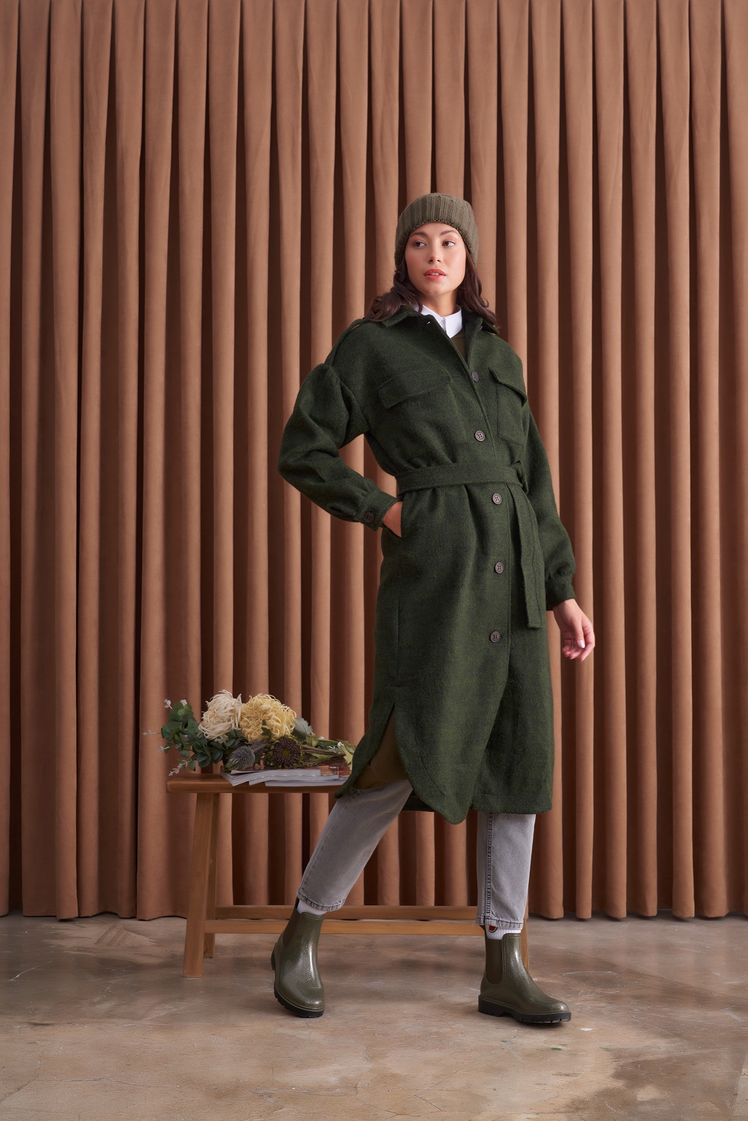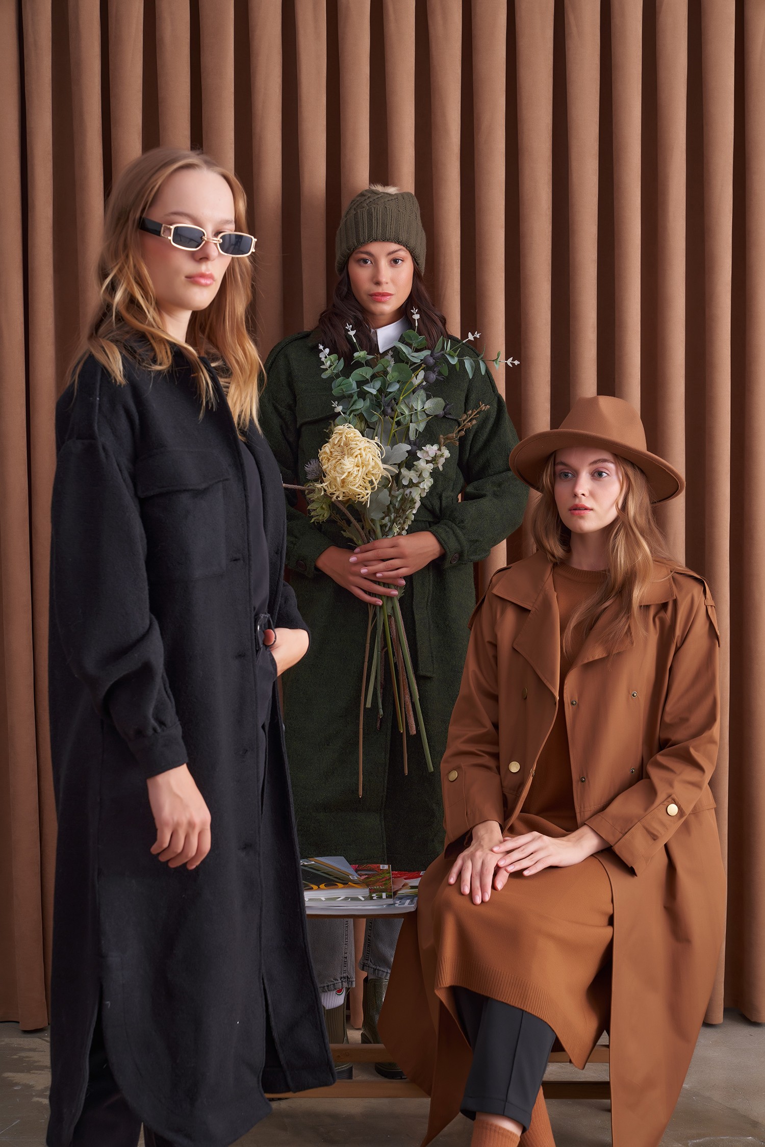 Qanu Beli Lastikli Krep Pantolon Yeşil