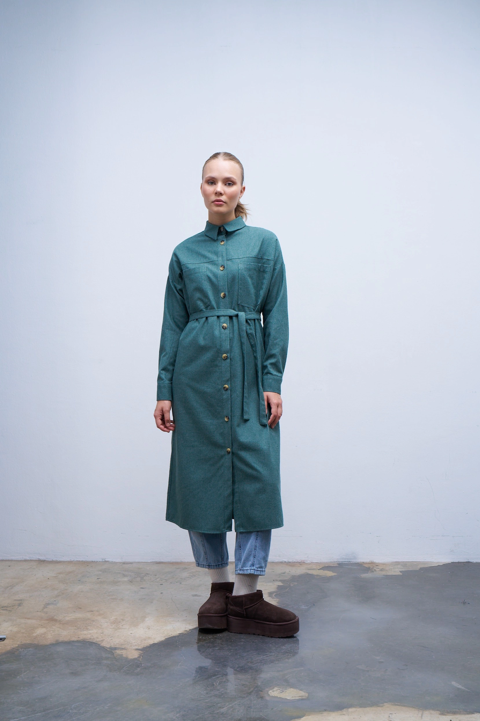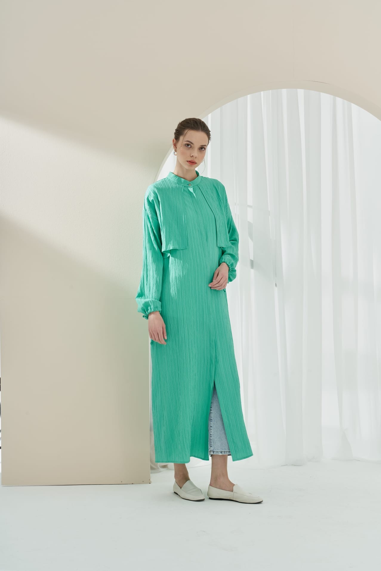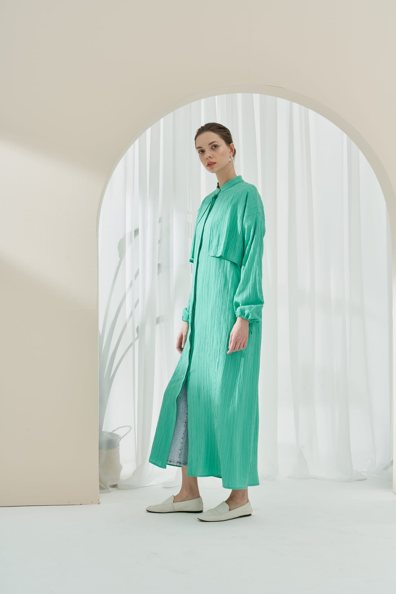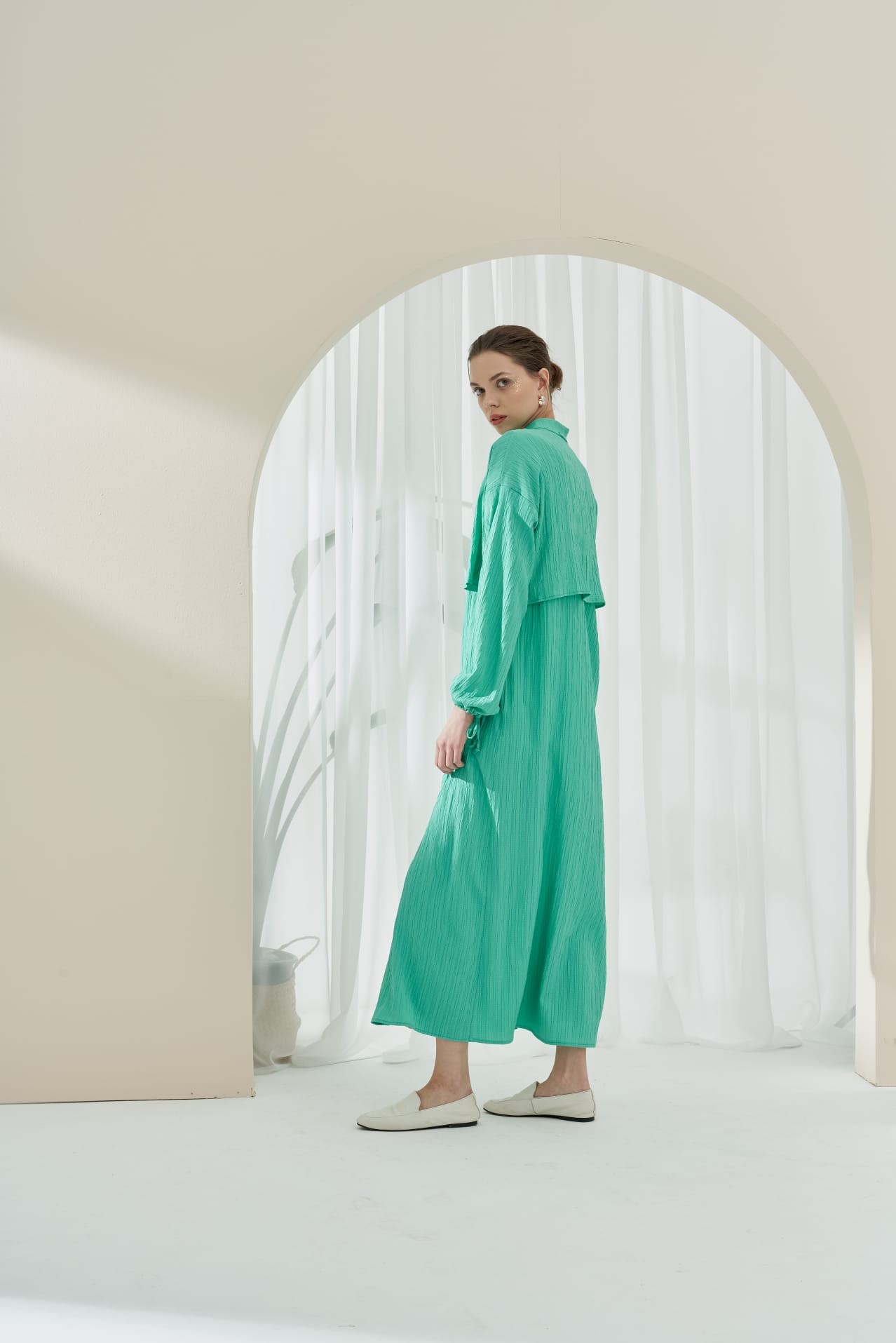 Qanu Büzgülü Pamuklu Elbise Yeşil
