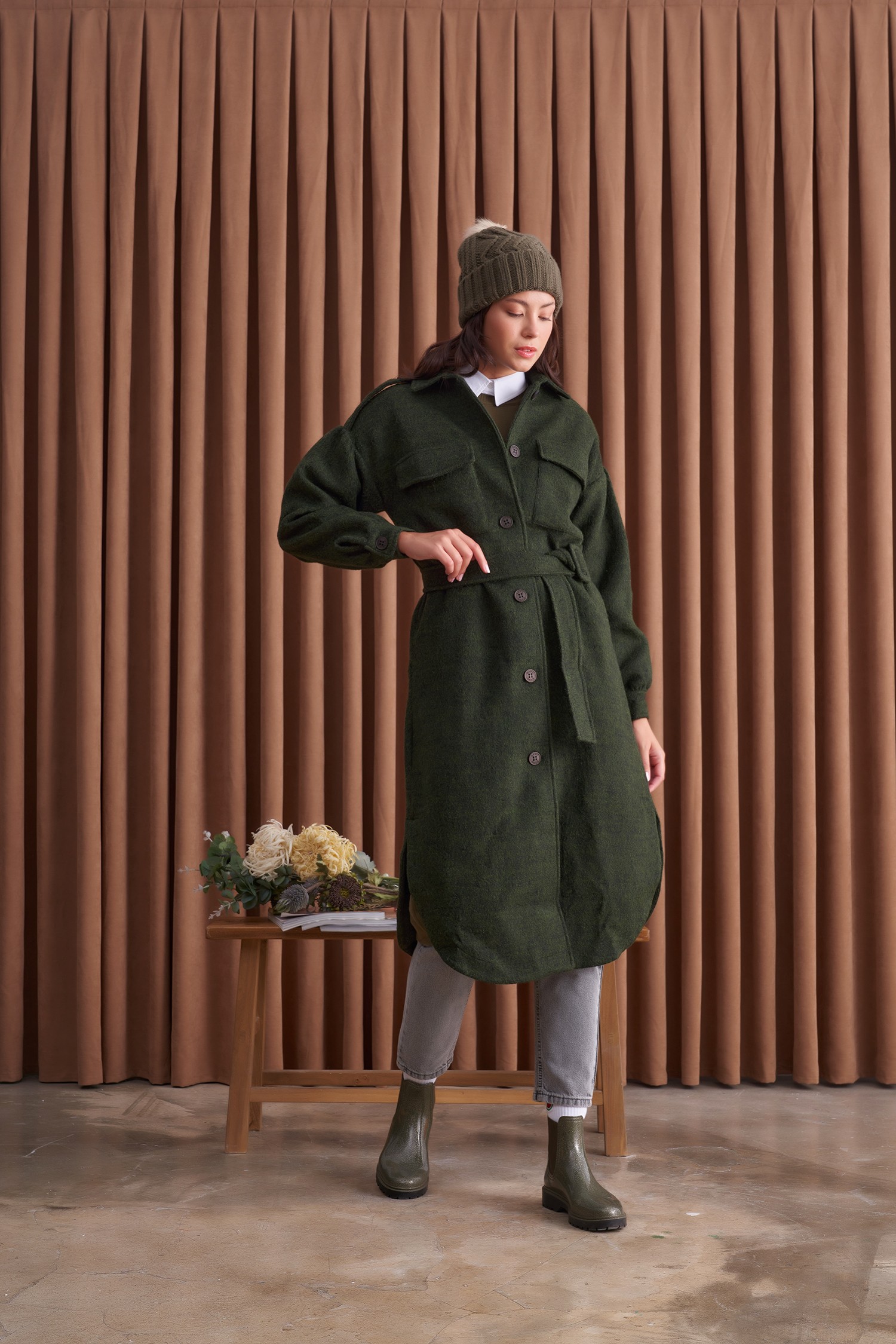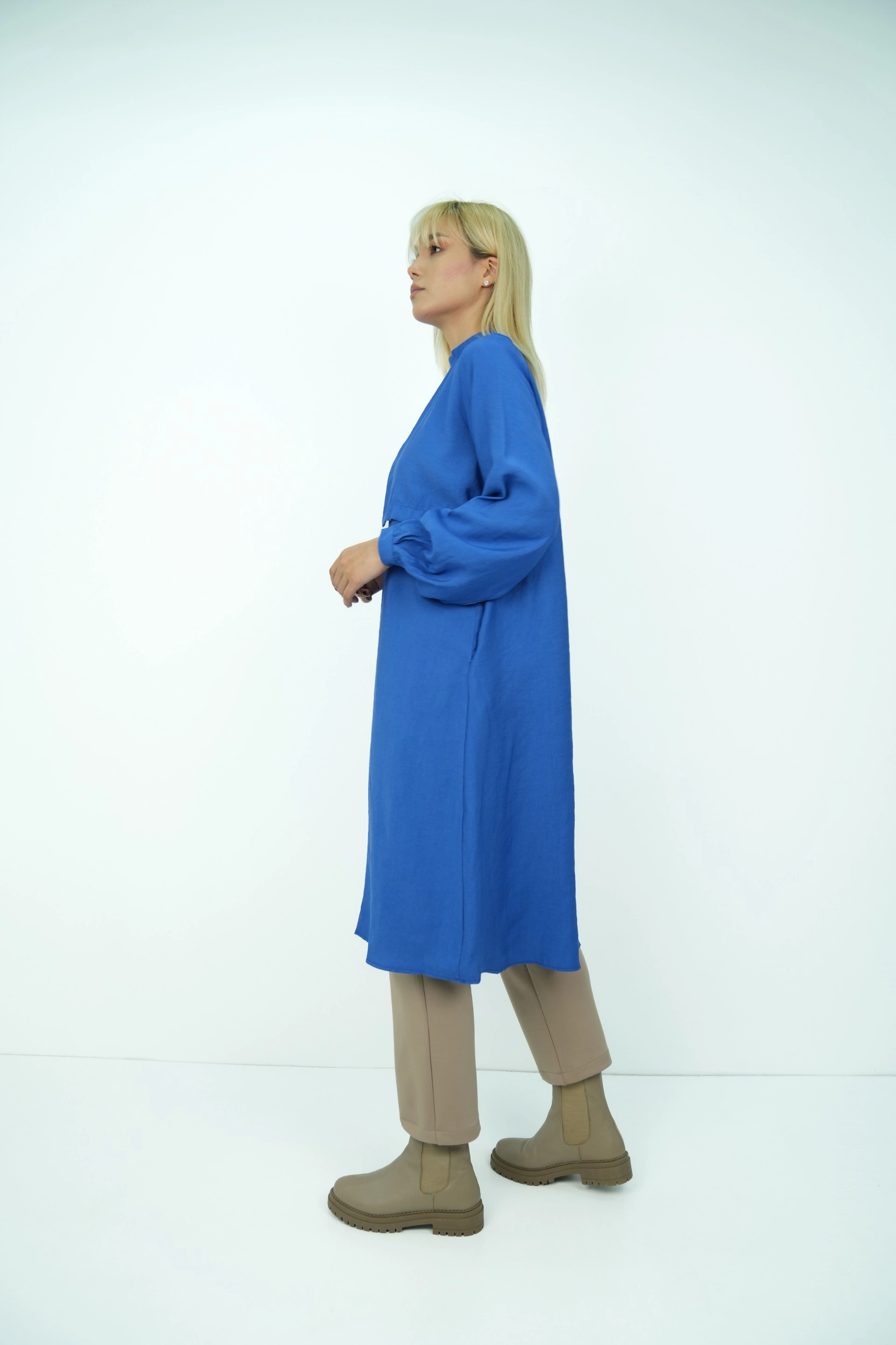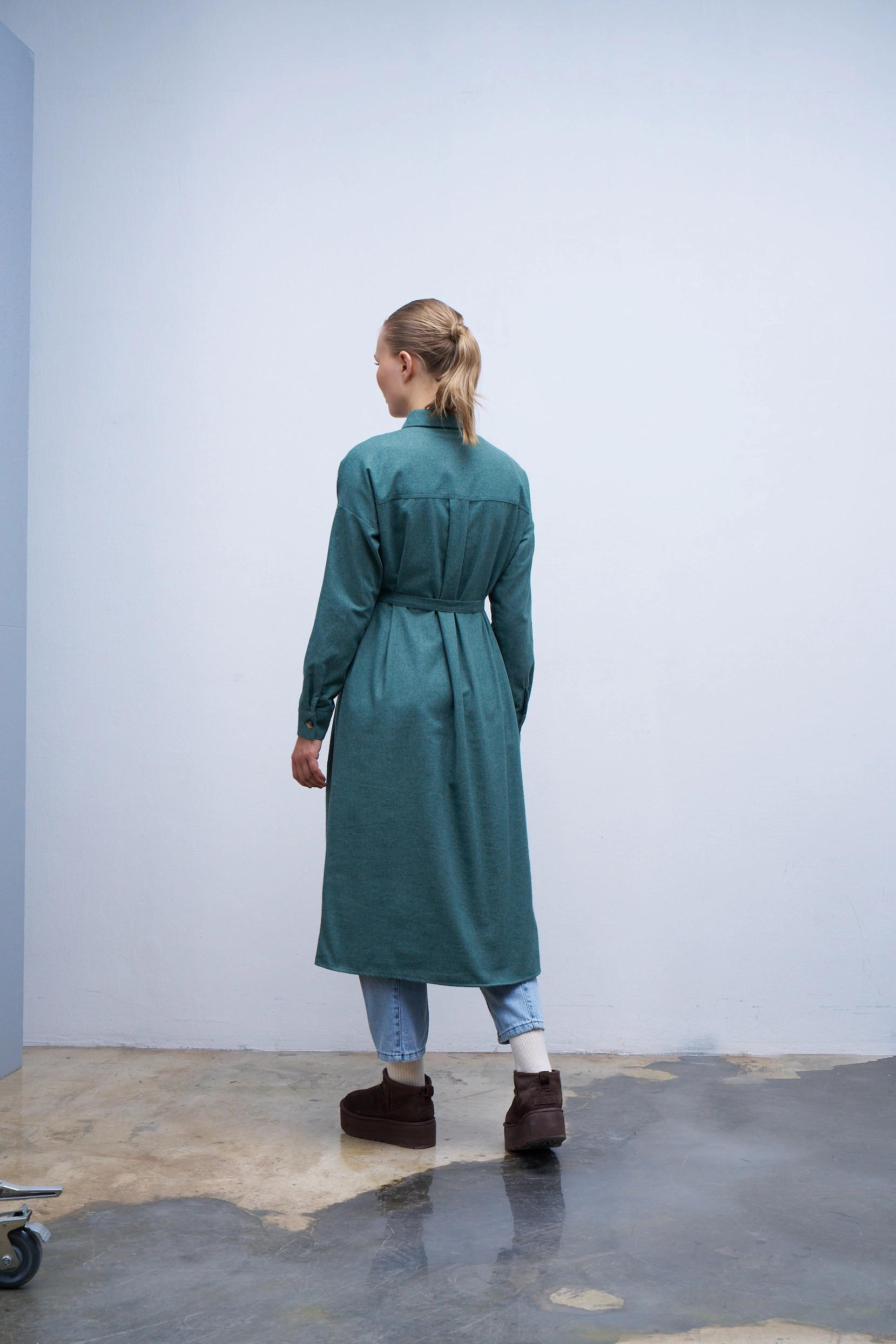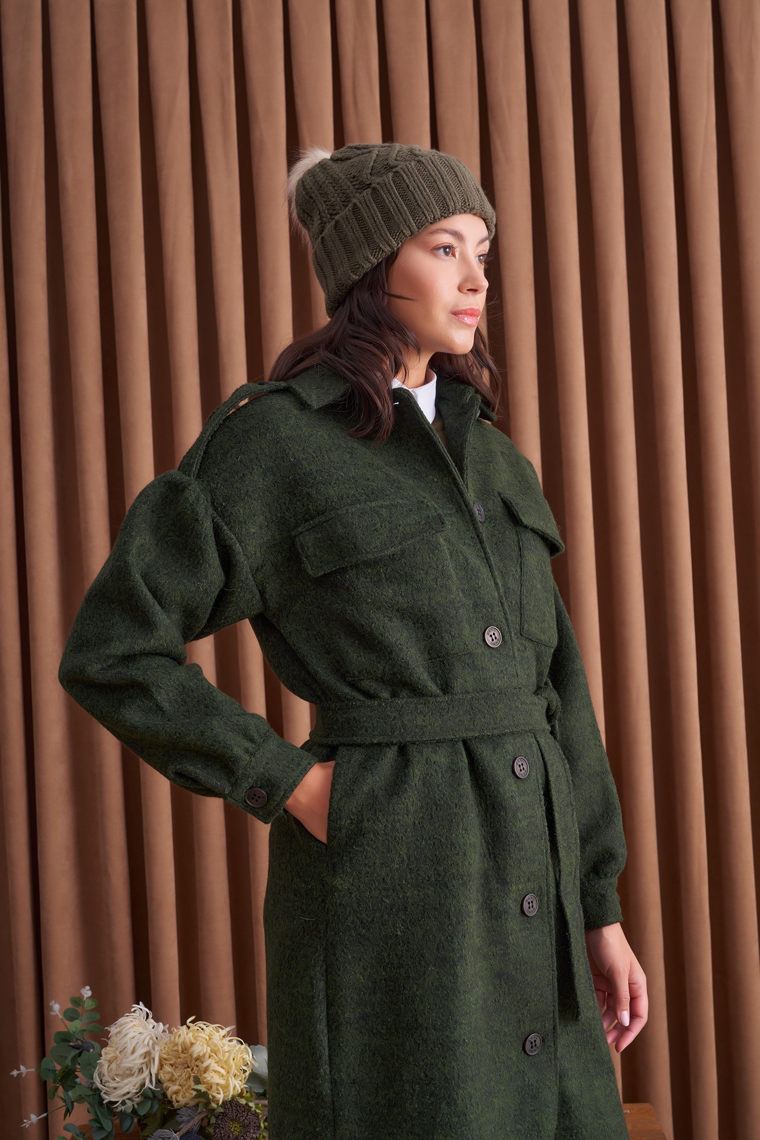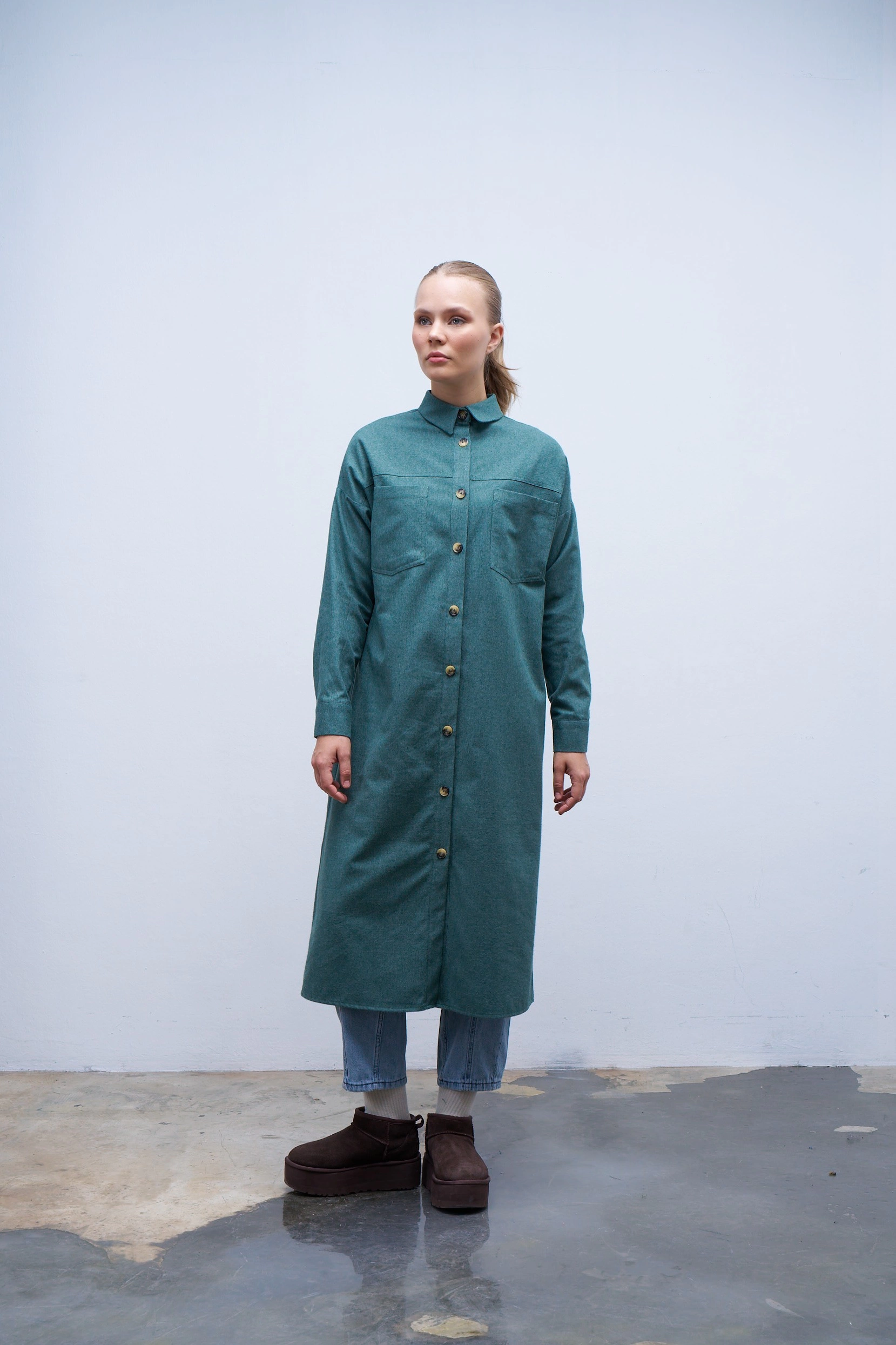 Qanu Büzgülü Pamuklu Elbise Yeşil