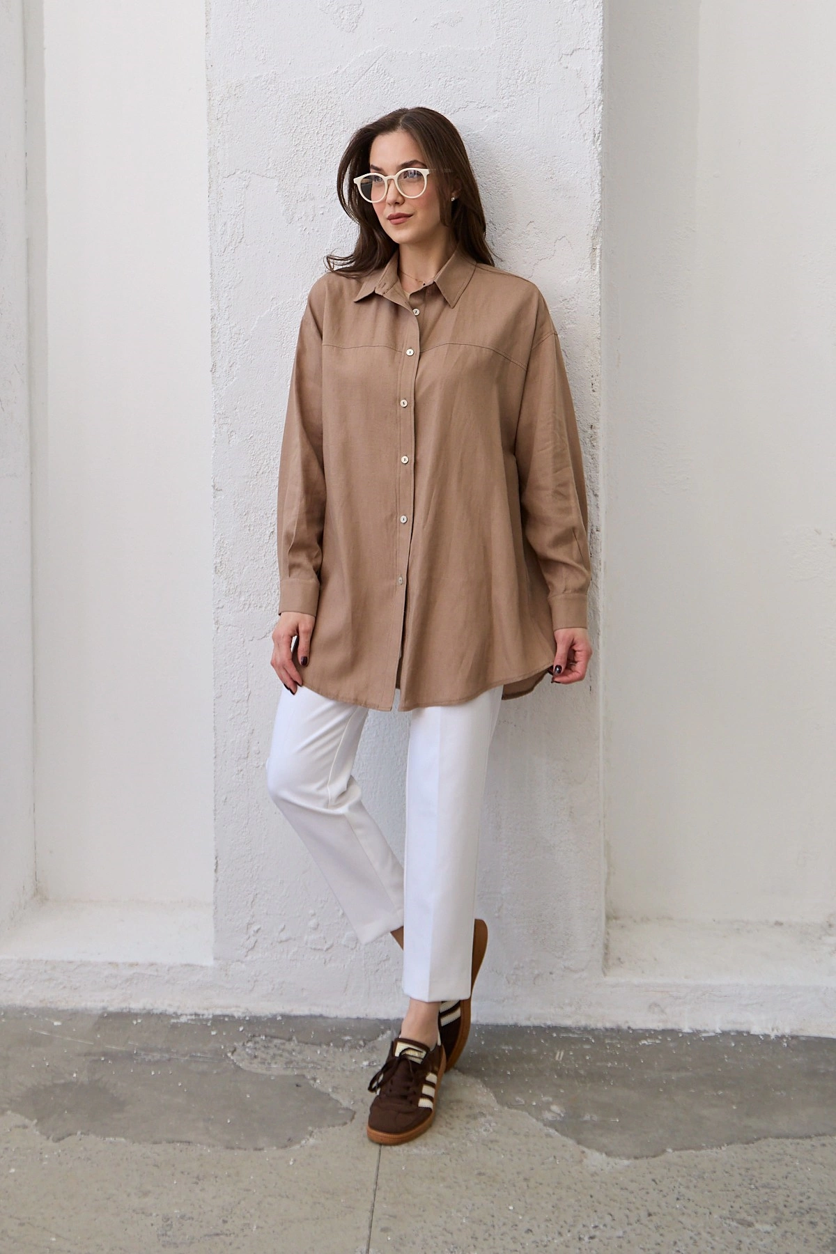 Qanu Ekose Volanlı Gömlek Kahve-Gri