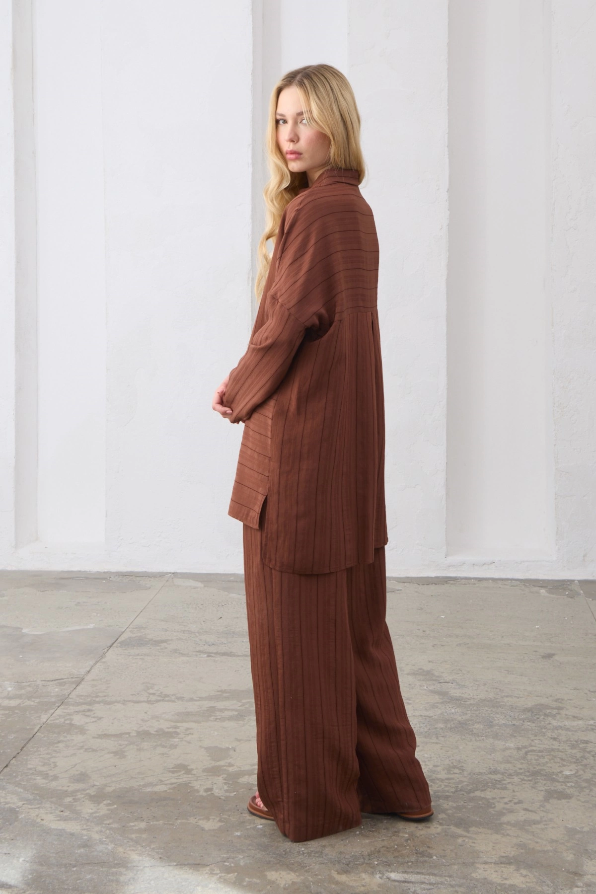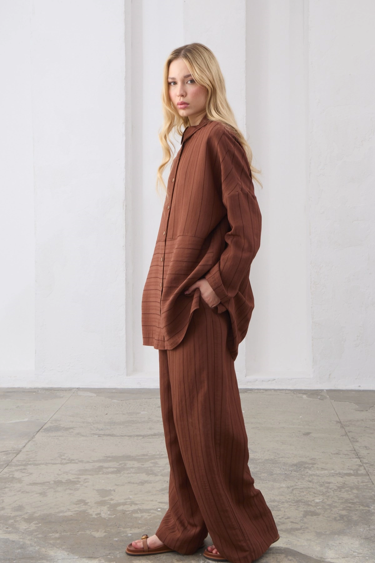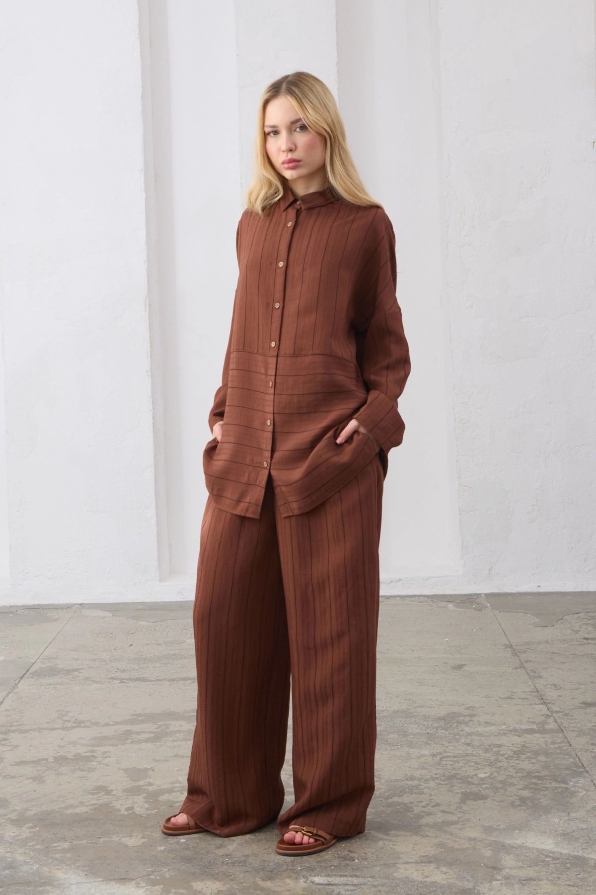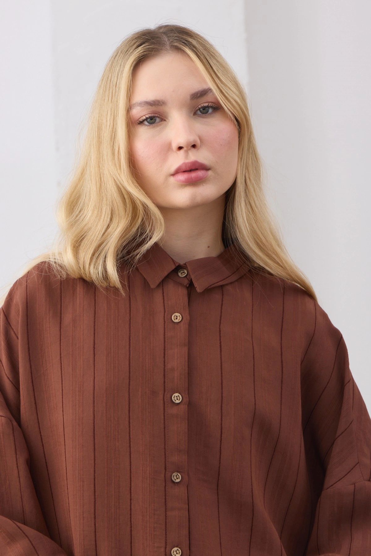 Qanu Biye Detaylı Pamuklu Gömlek Kahverengi