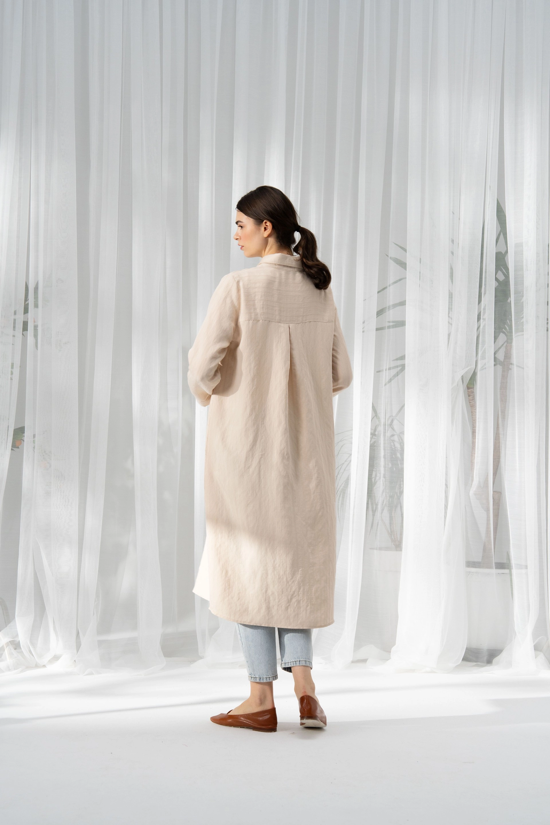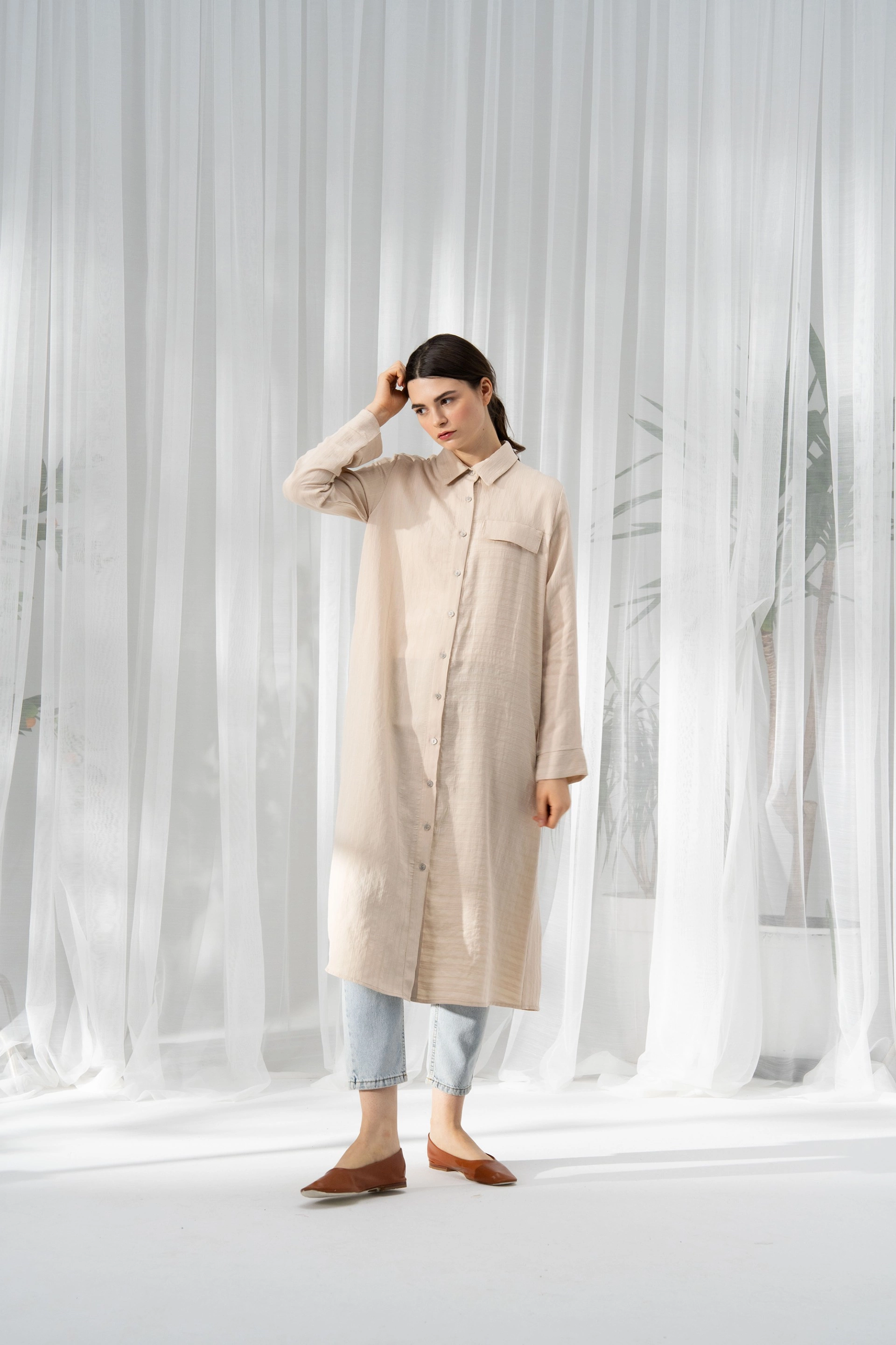 Qanu Biye Detaylı Pamuklu Gömlek Kahverengi