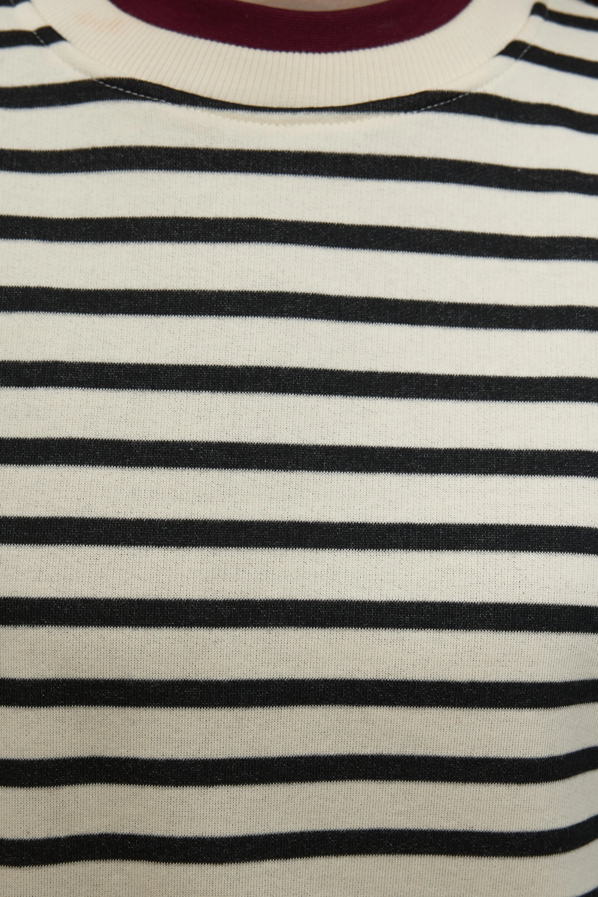 Qanu Çizgili Kısa Sweatshirt Siyah