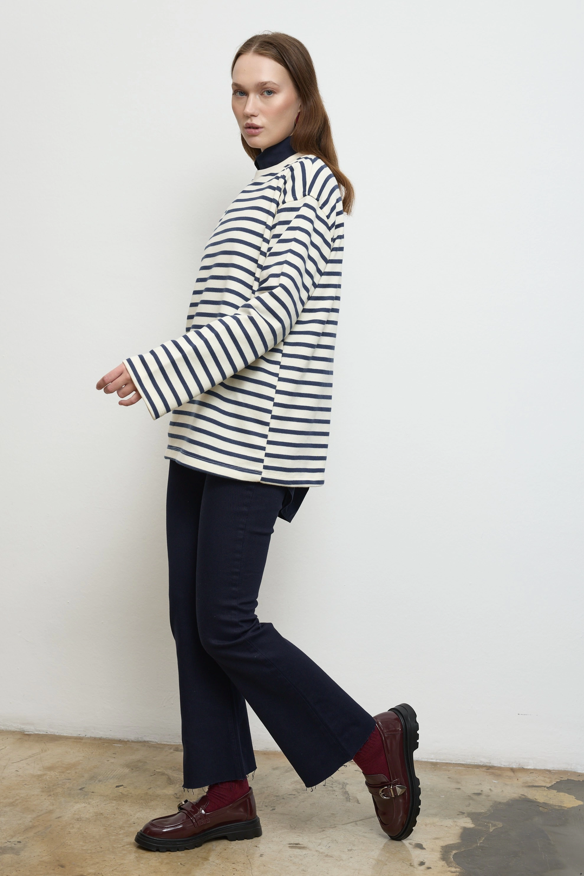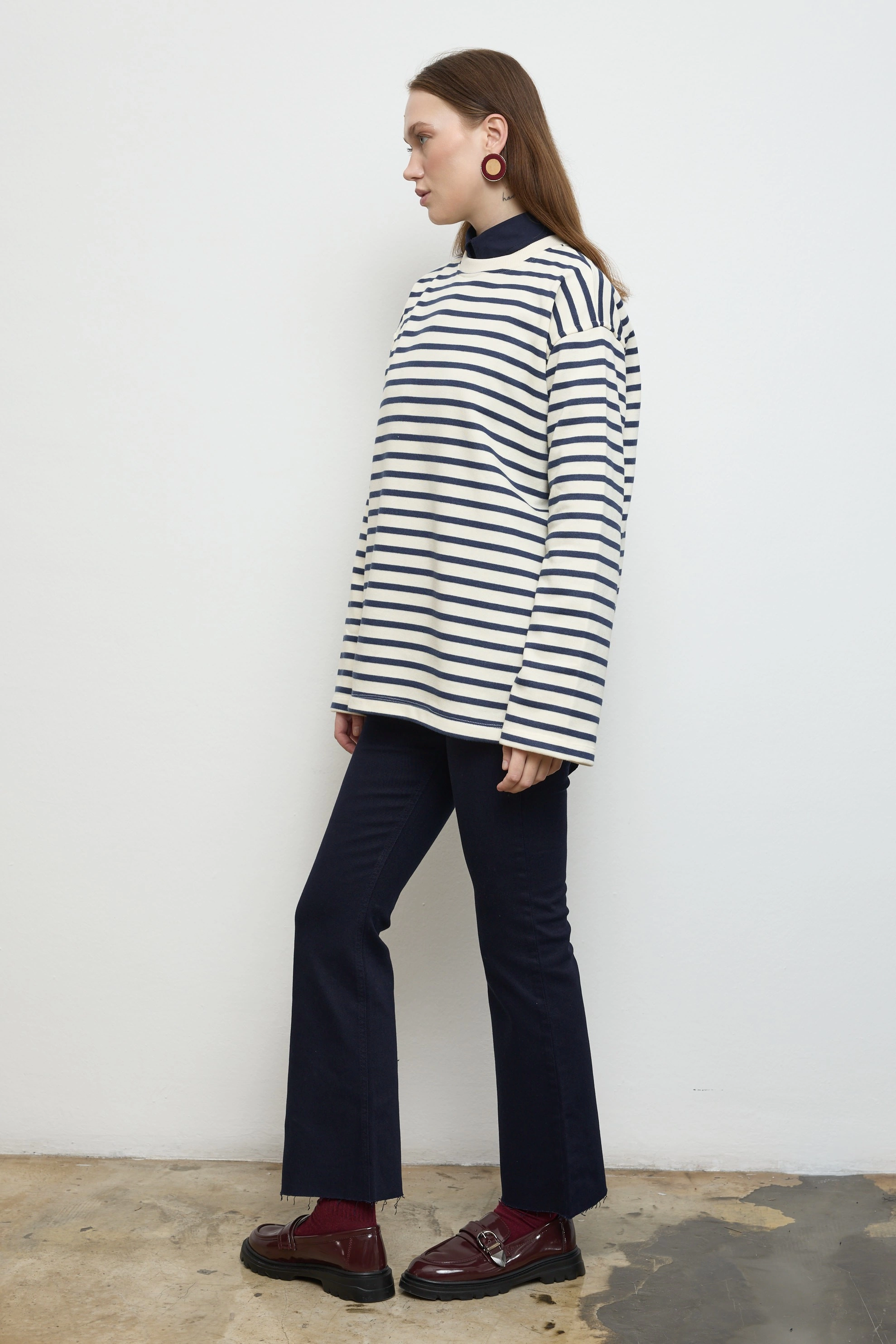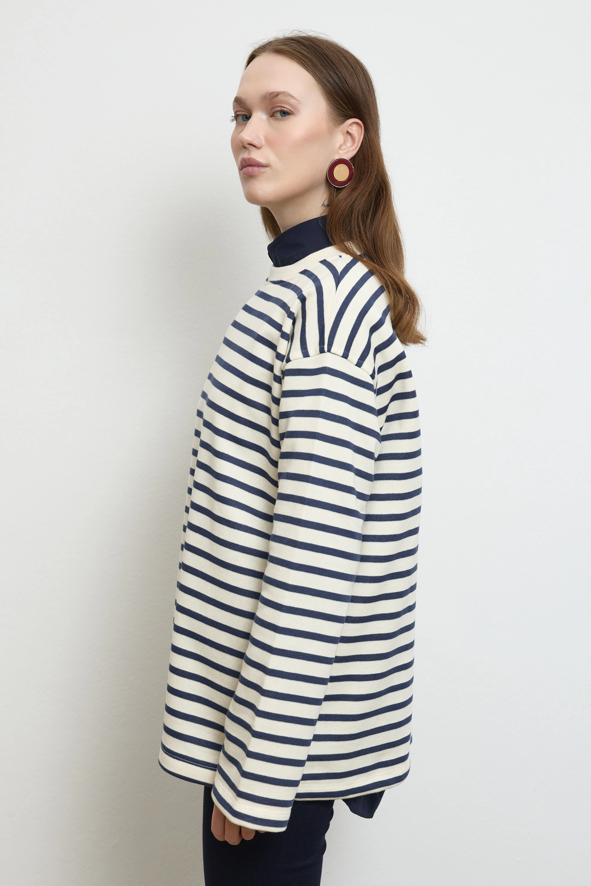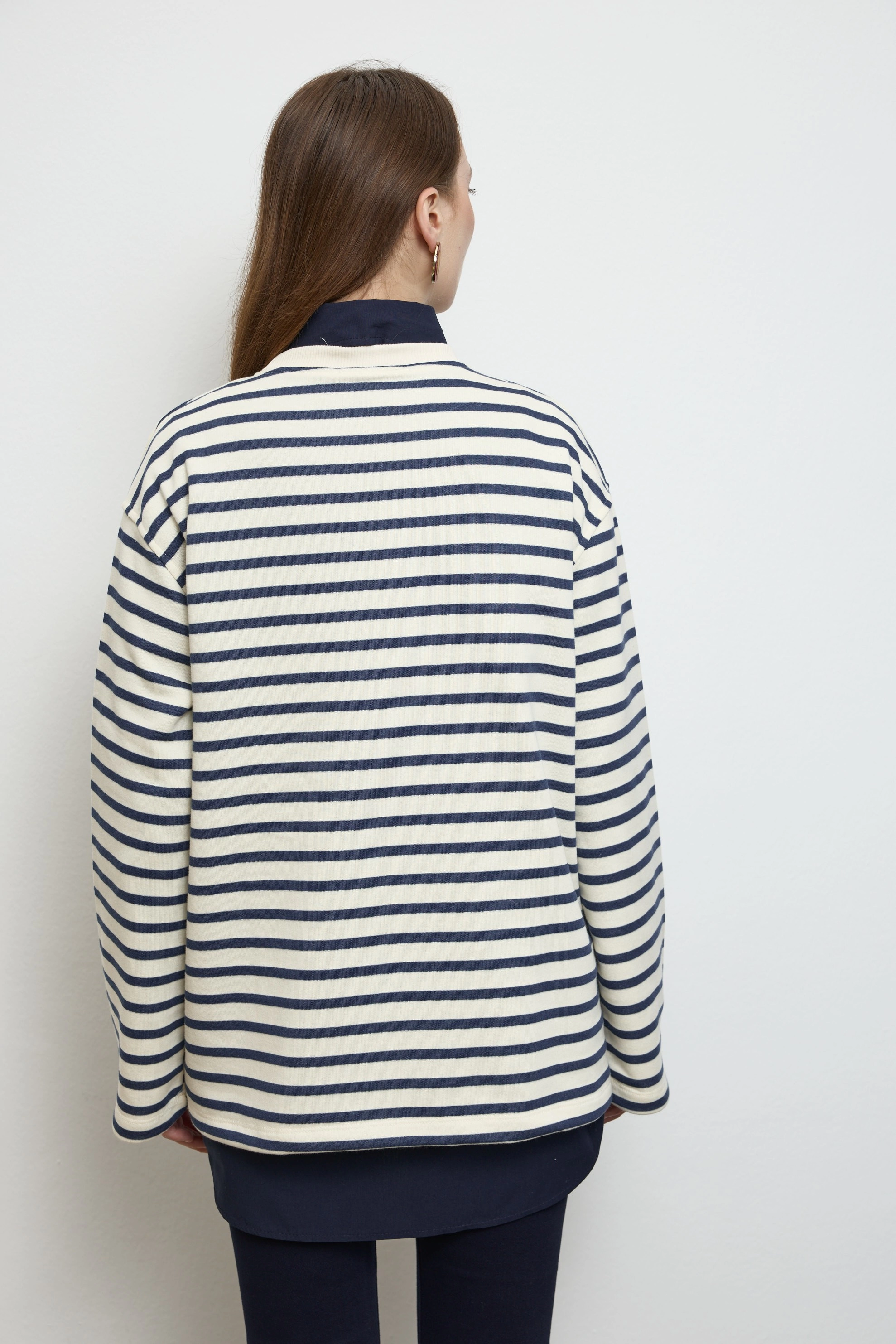 Qanu Çizgili Kısa Sweatshirt Lacivert
