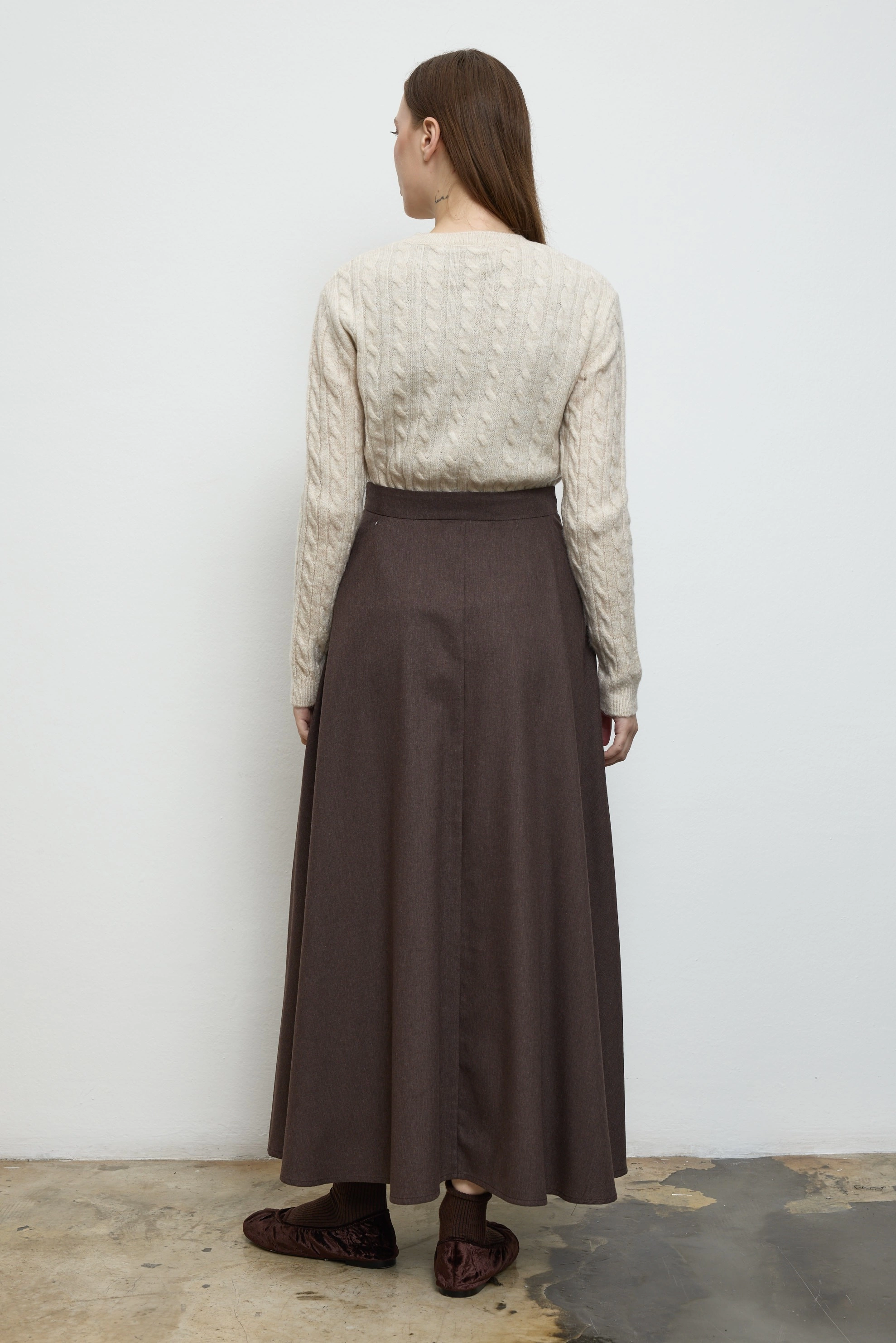 Qanu Leydi Ekose Etek Koyu Kahverengi