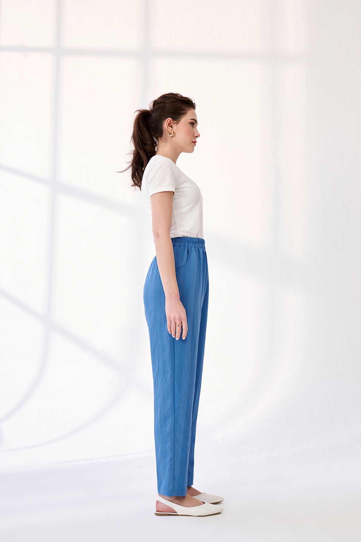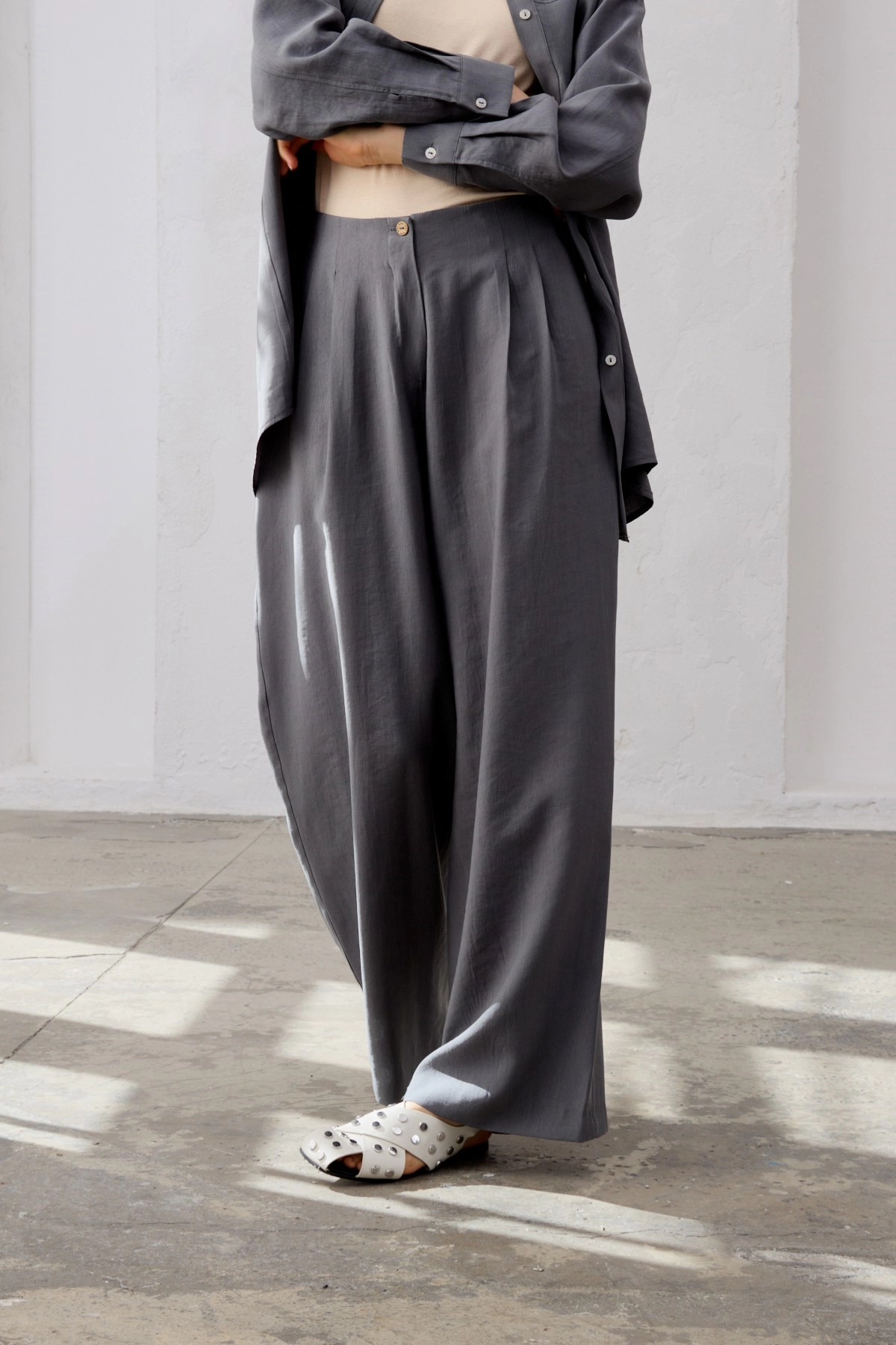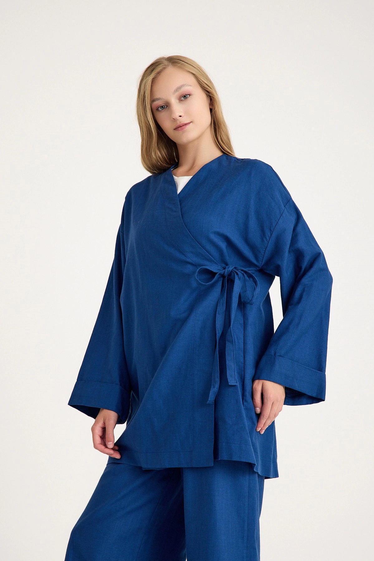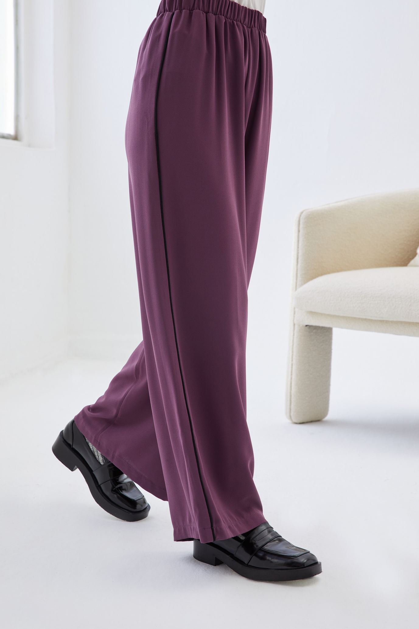 Qanu Pamuklu Bol Paça Pantolon Koyu Mavi
