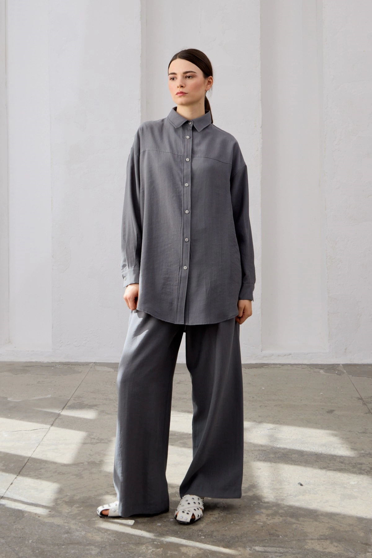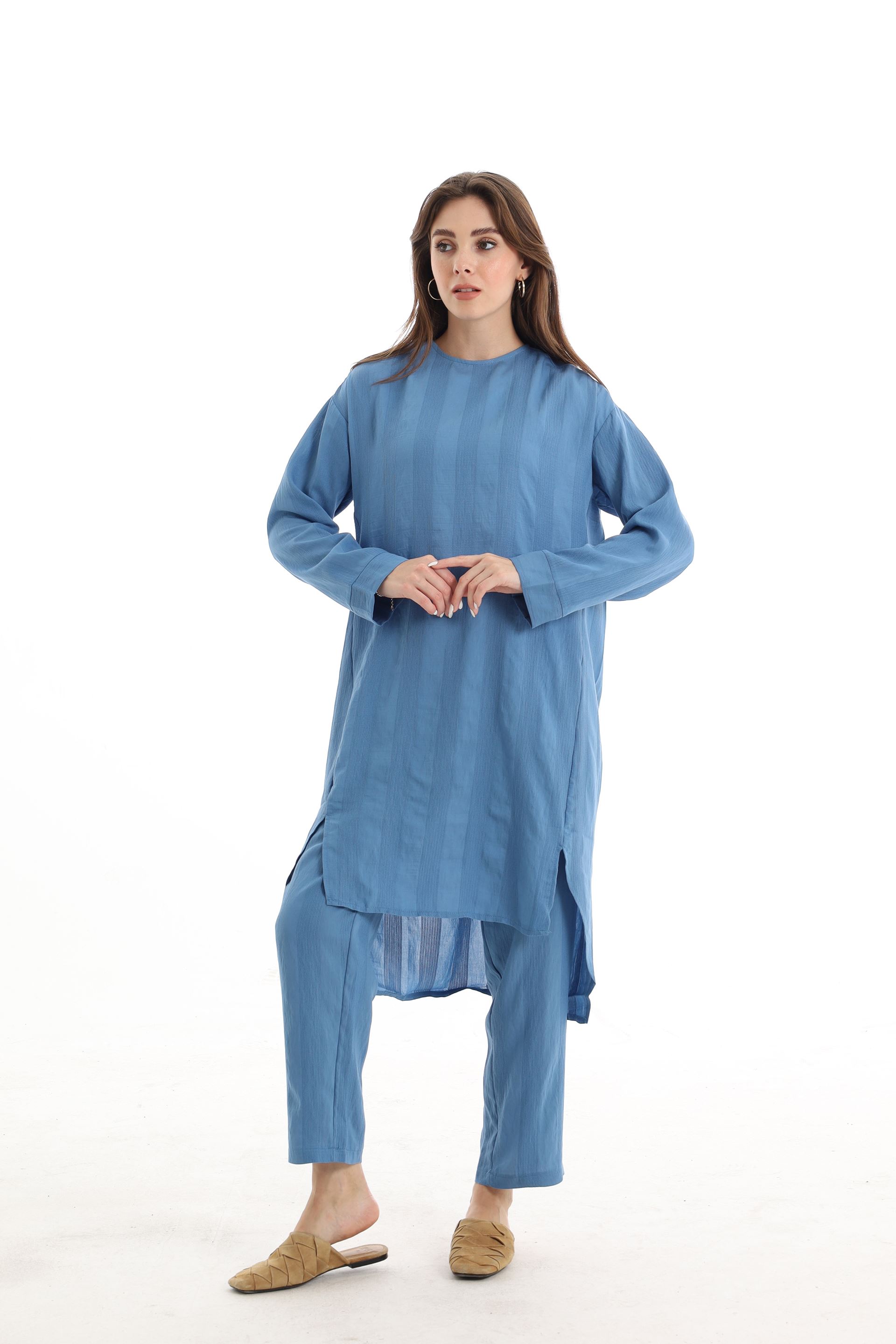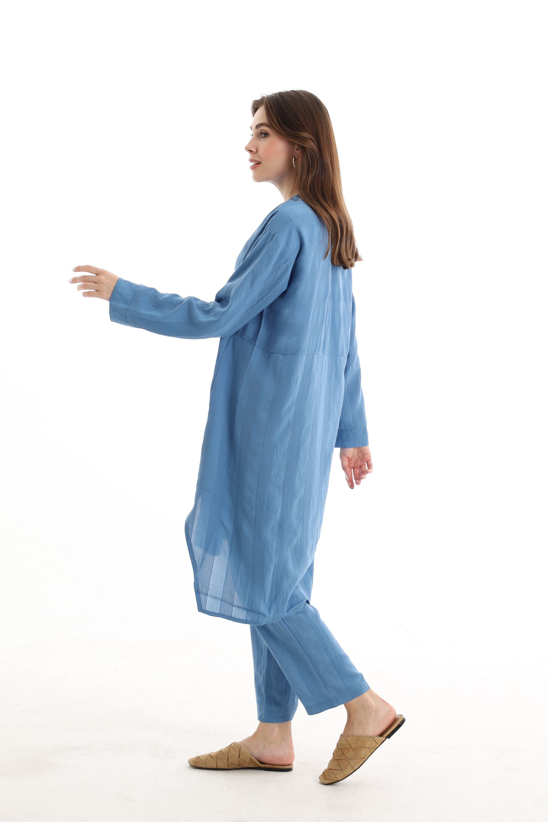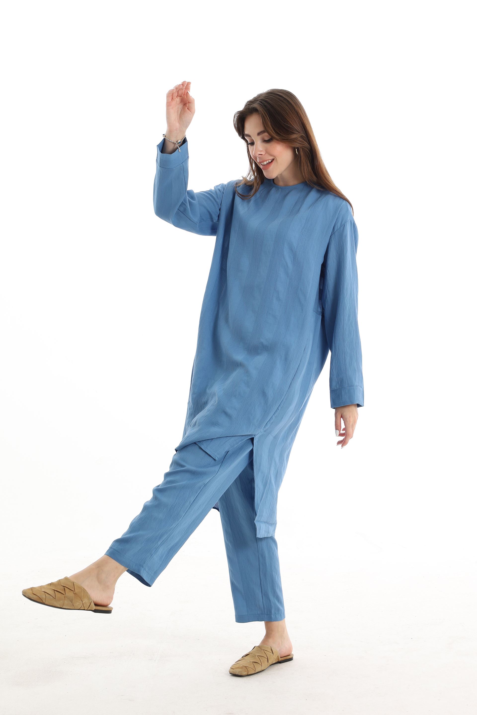 Qanu Pamuklu Bol Paça Pantolon Koyu Mavi