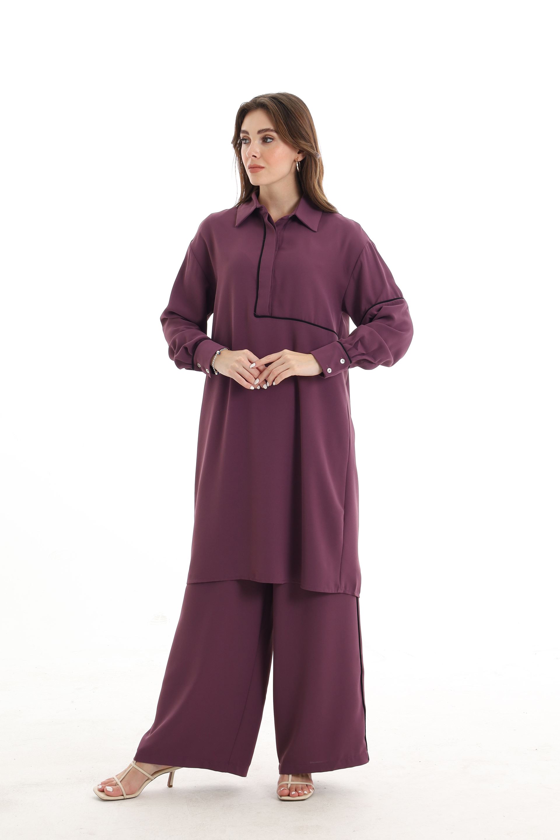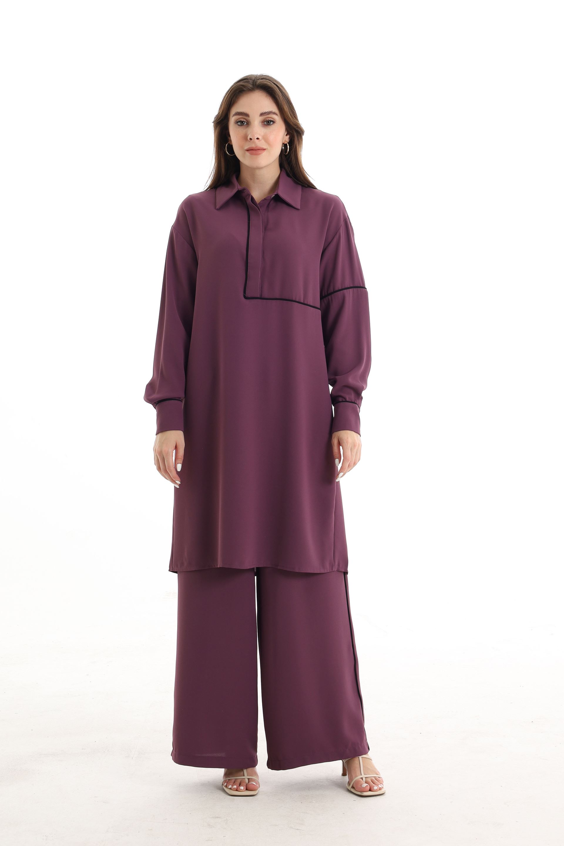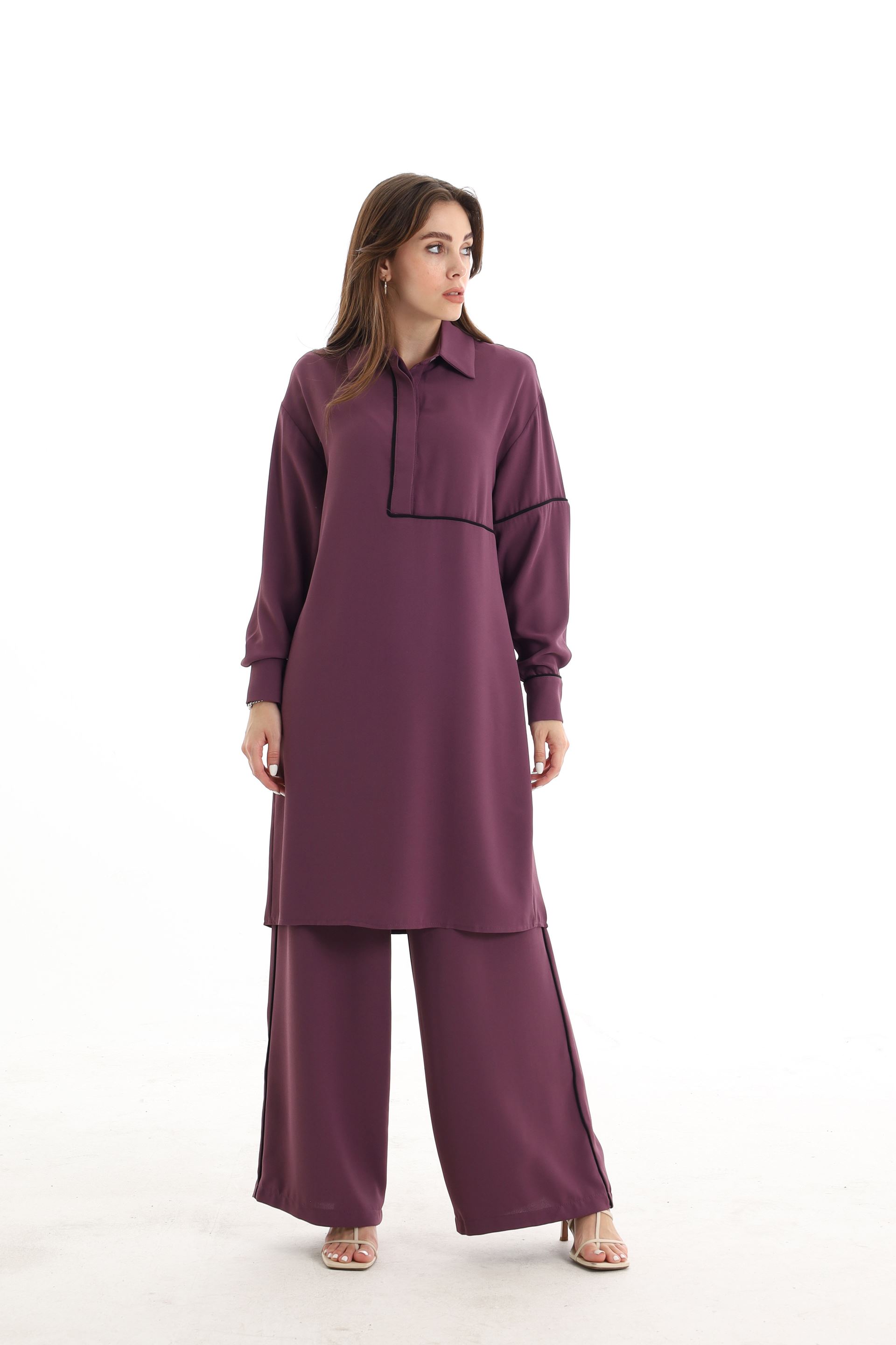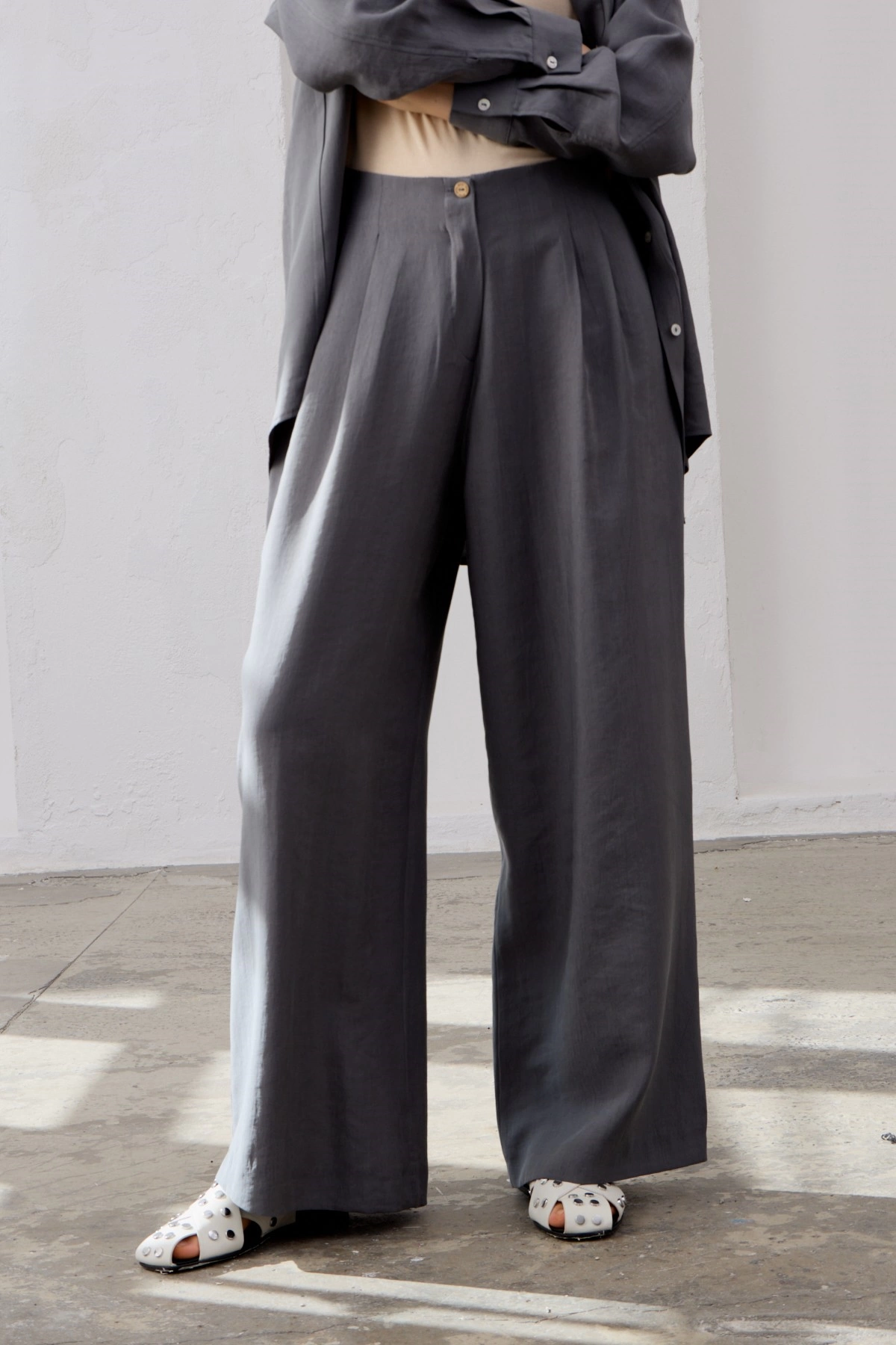 Qanu Pamuklu Bol Paça Pantolon Koyu Mavi