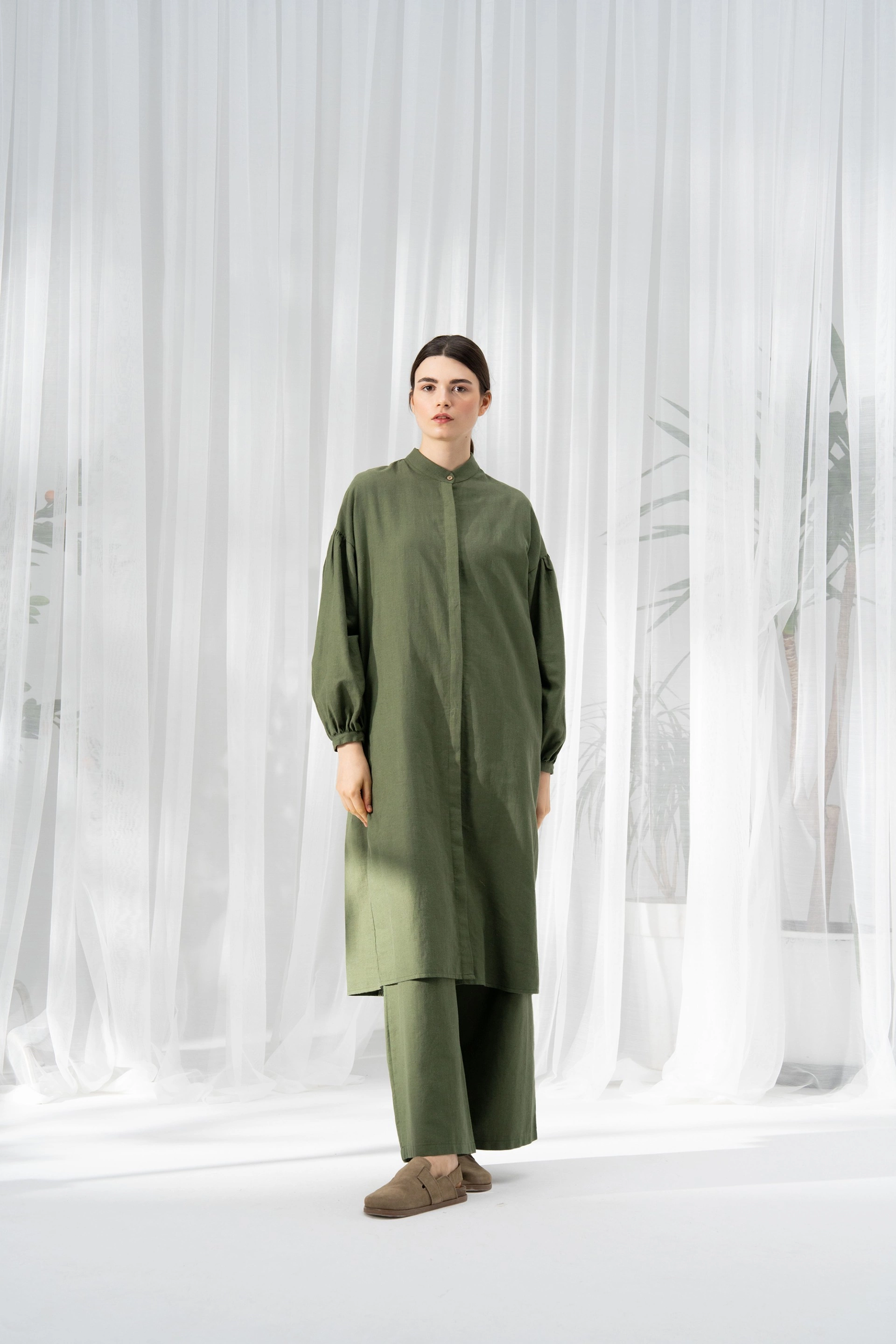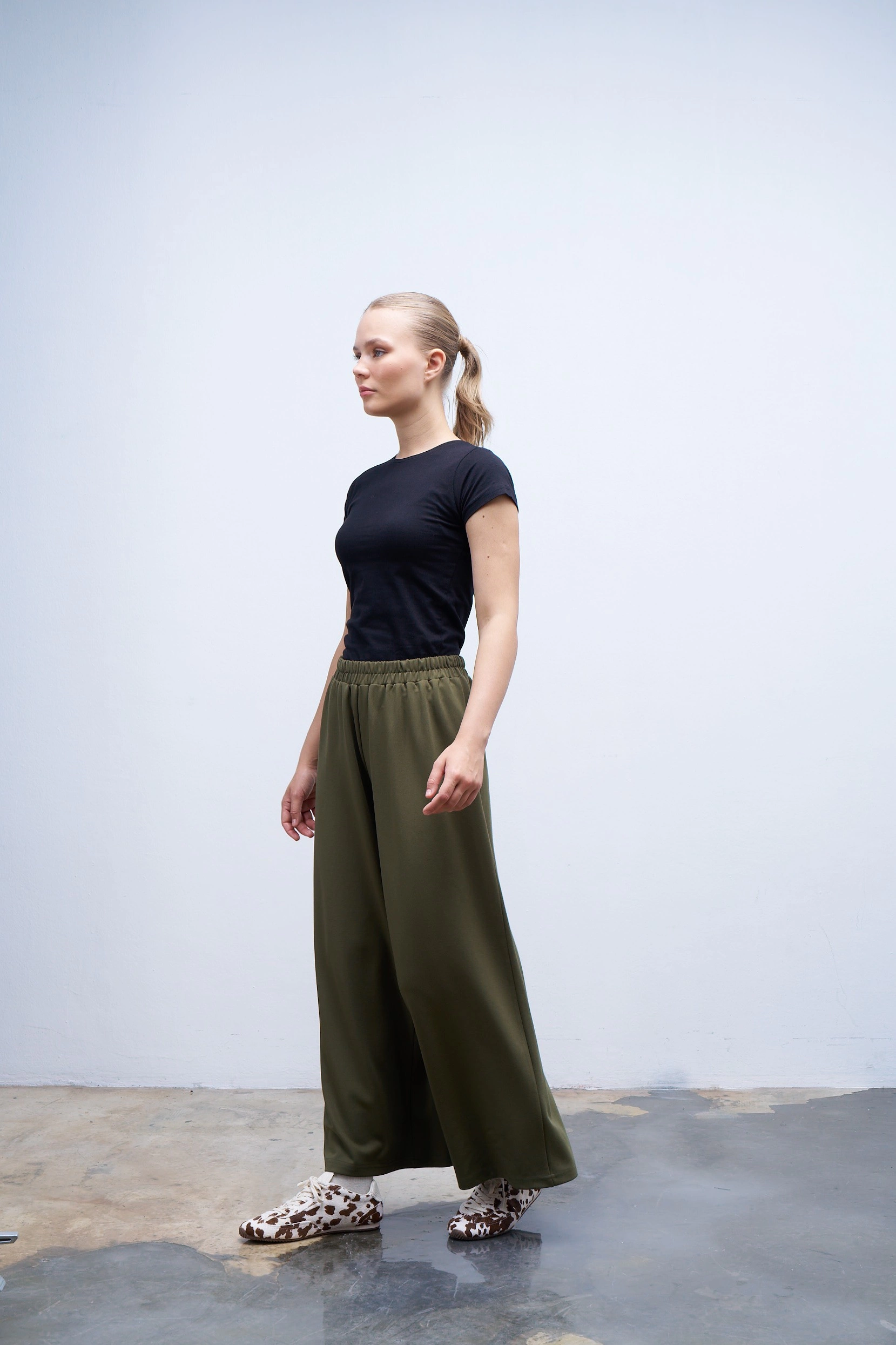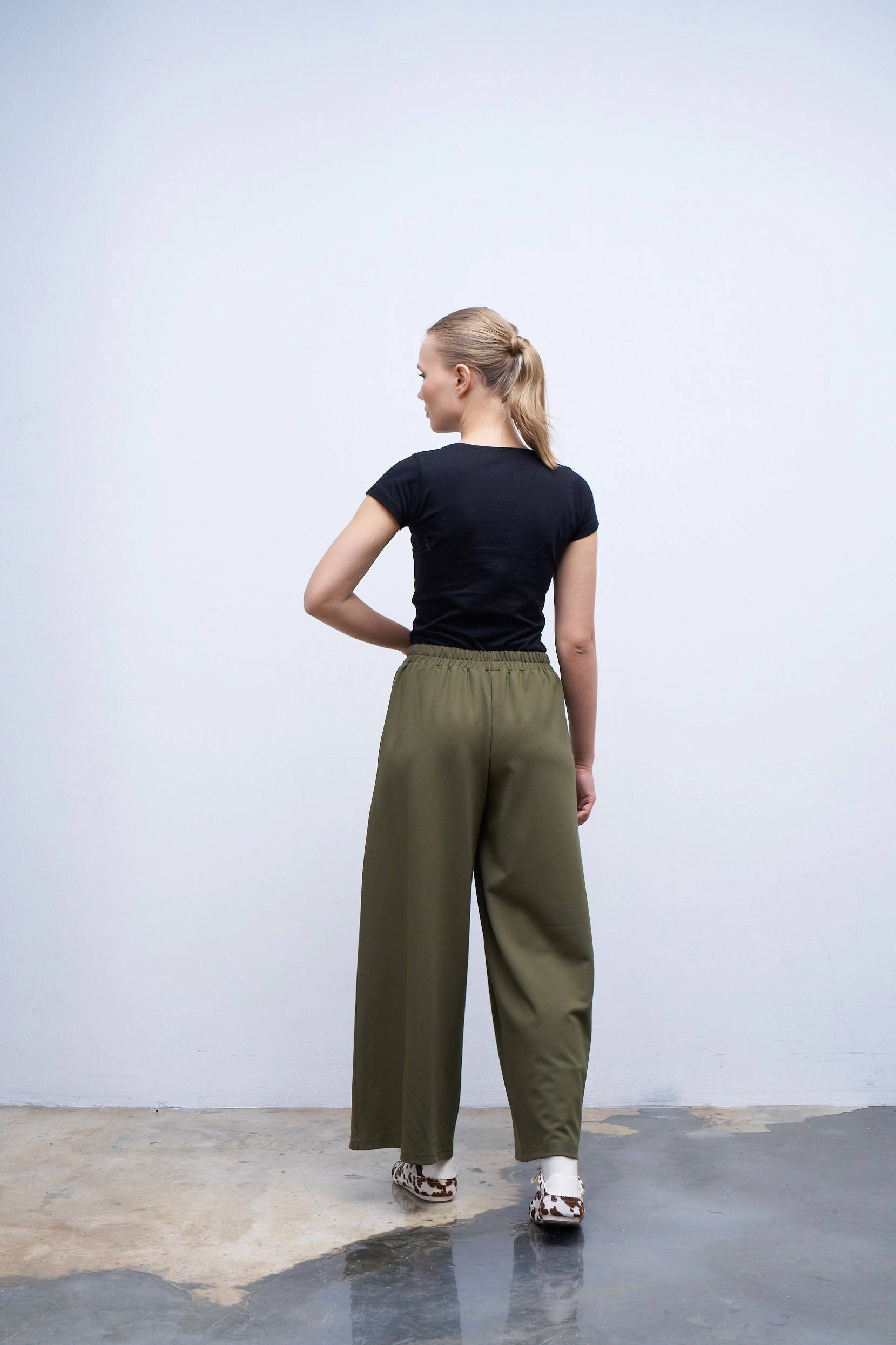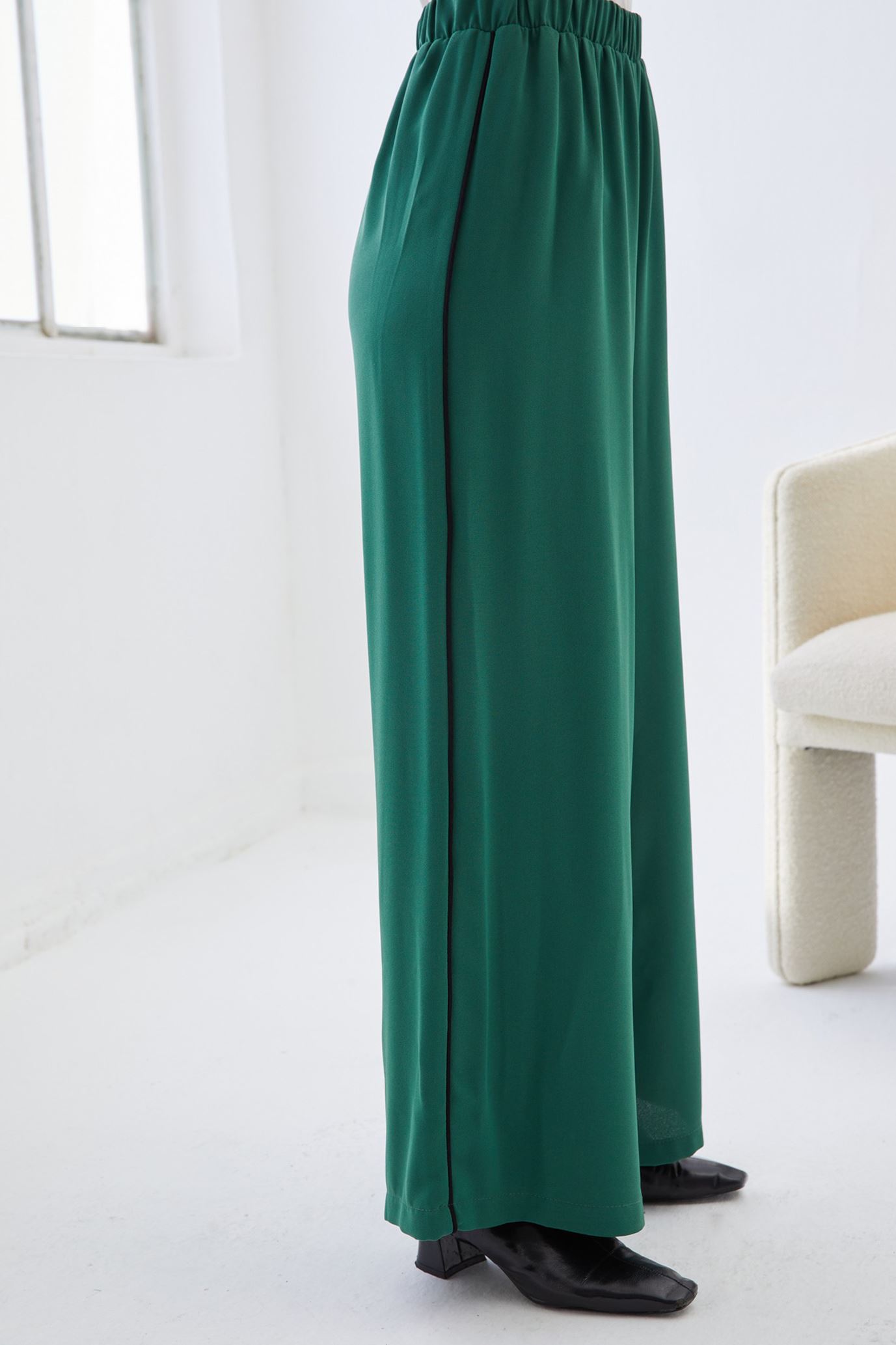 Qanu Beli Lastikli Krep Pantolon Yeşil