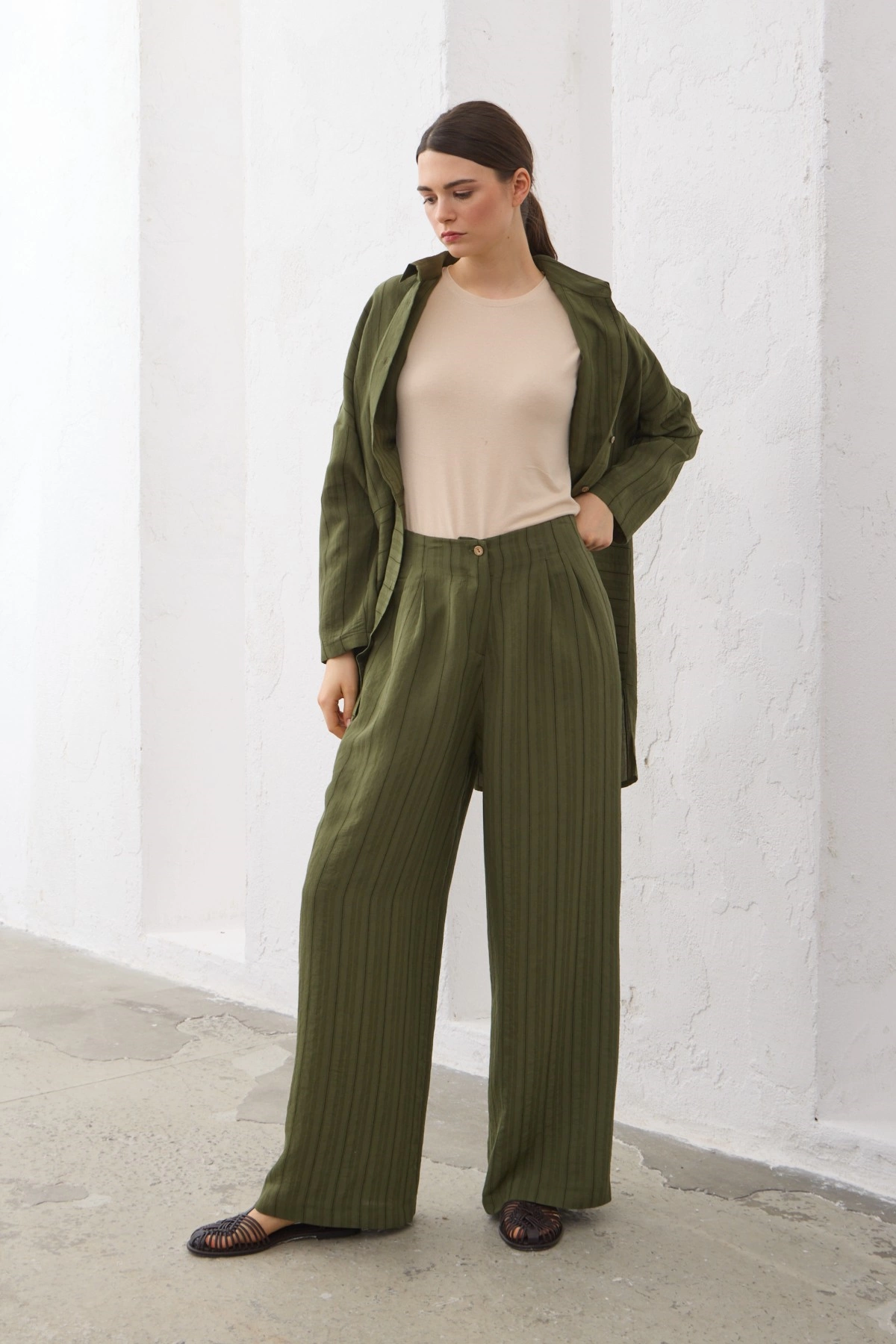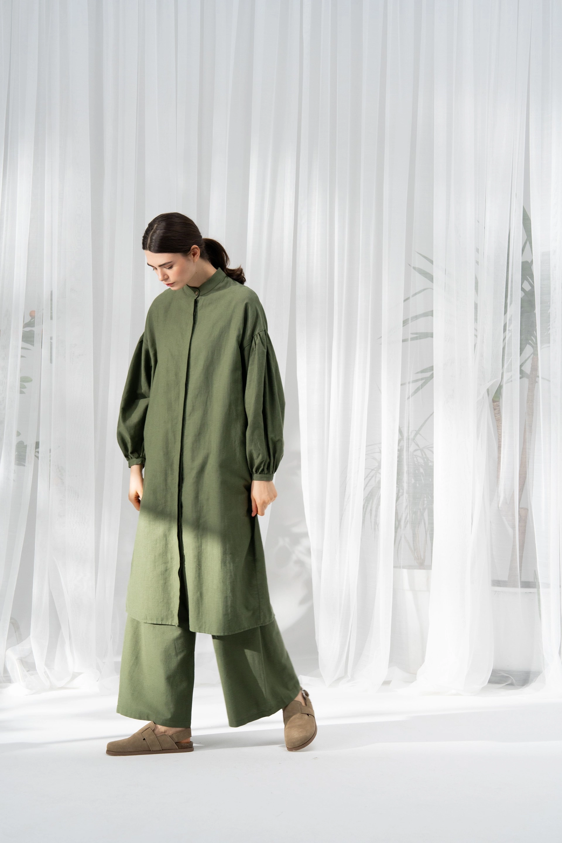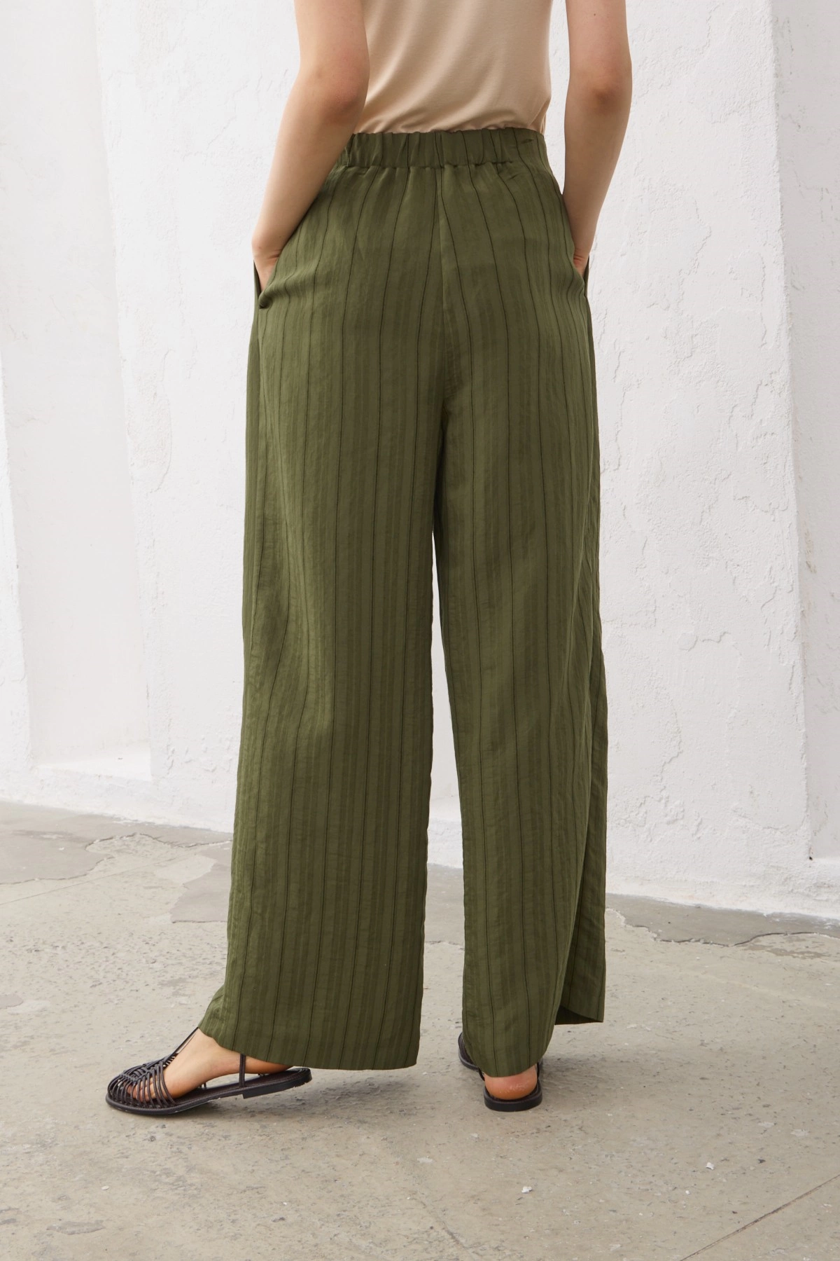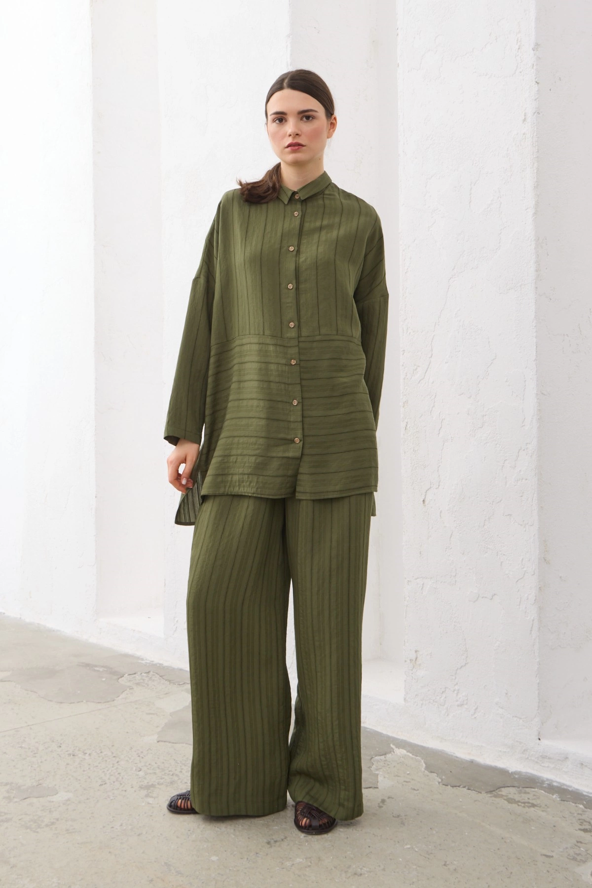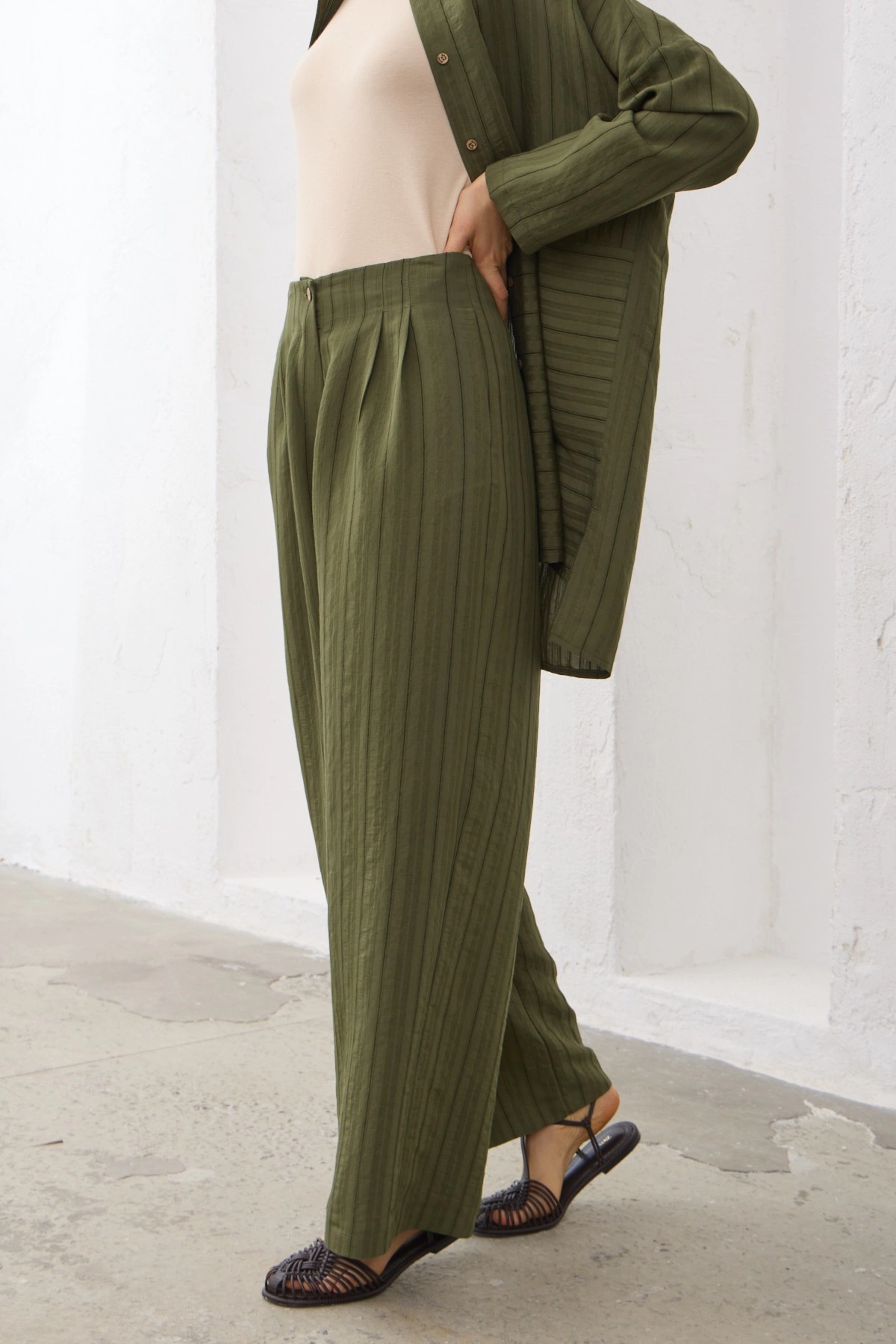 Qanu Beli Lastikli Krep Pantolon Yeşil