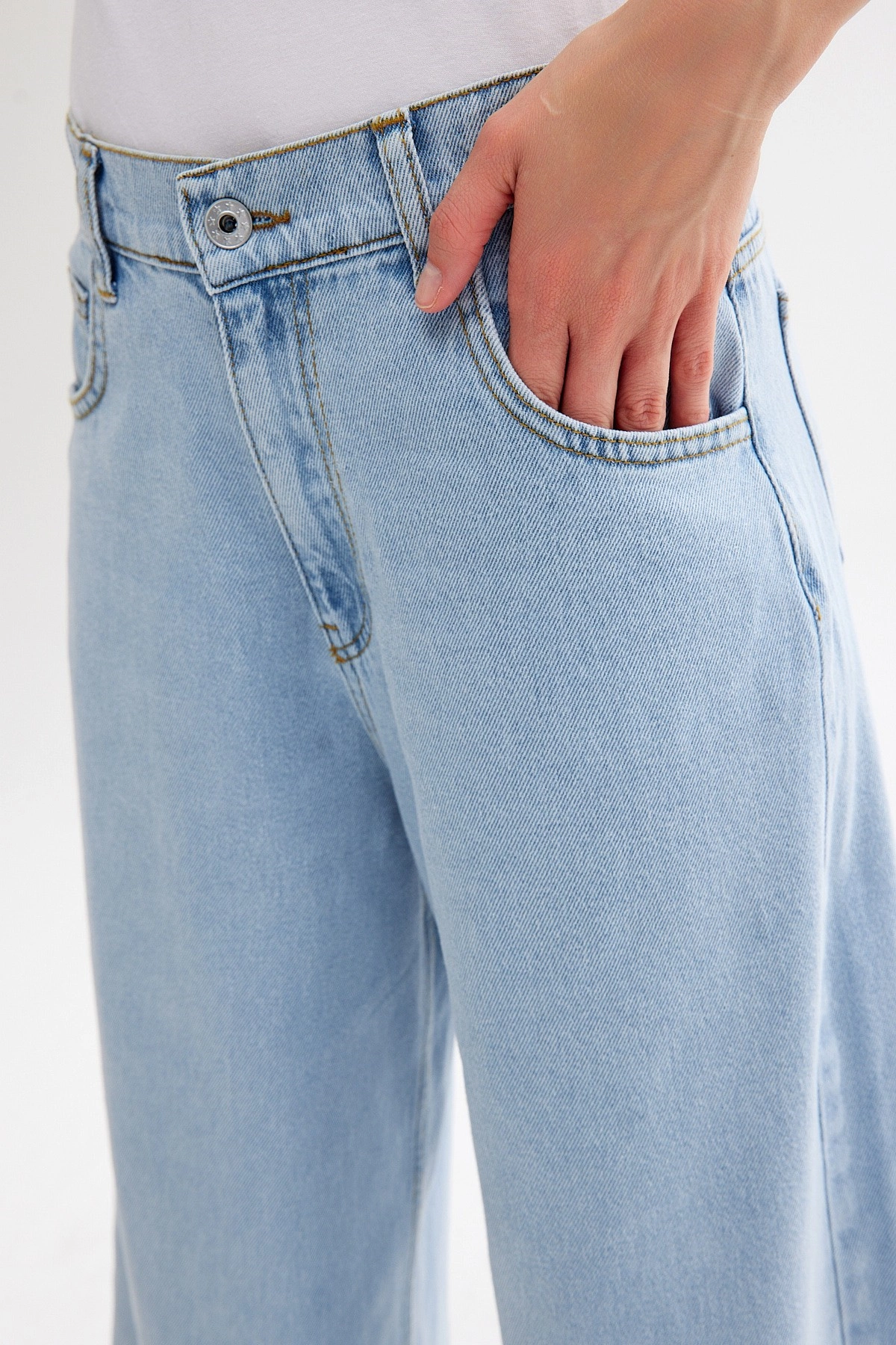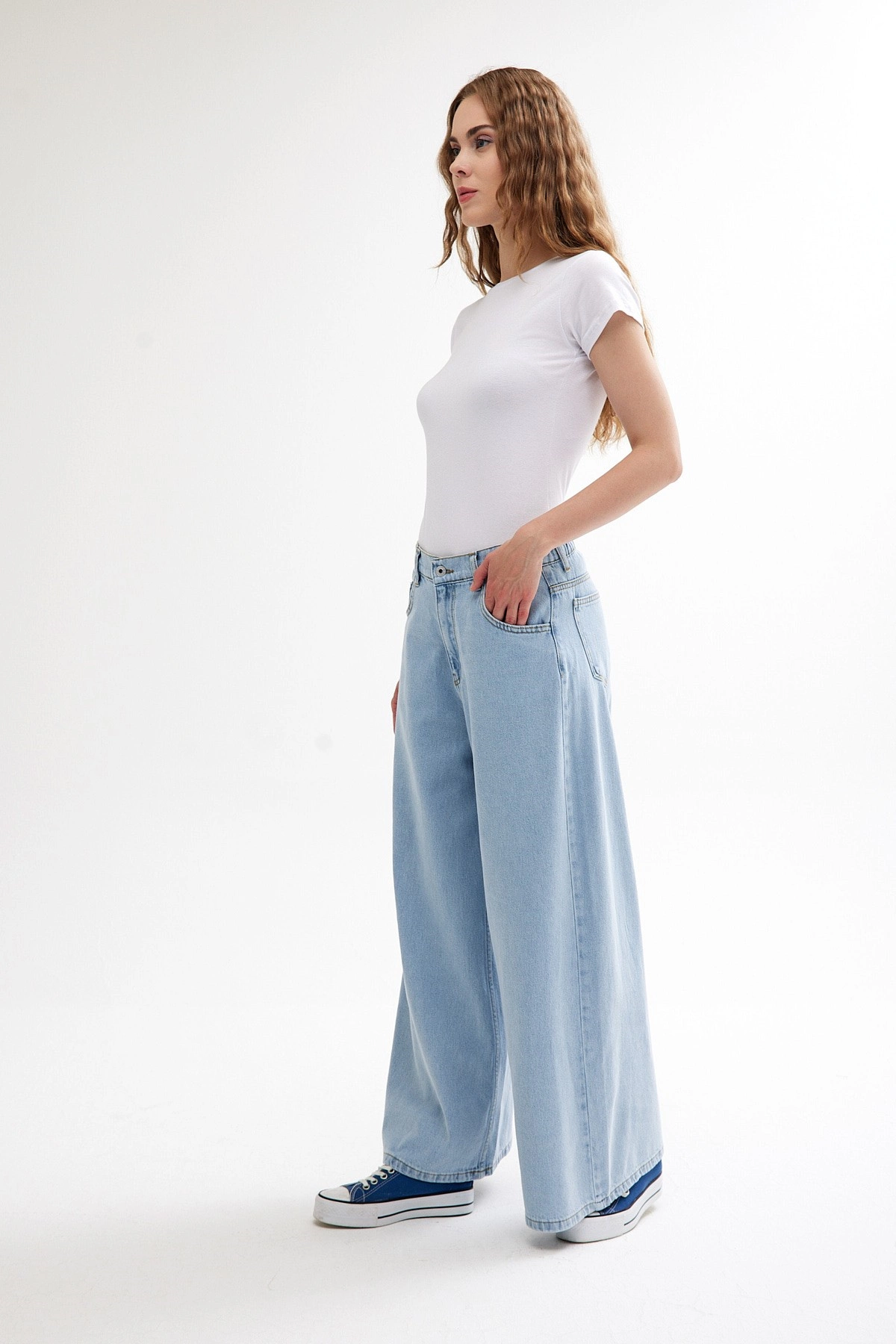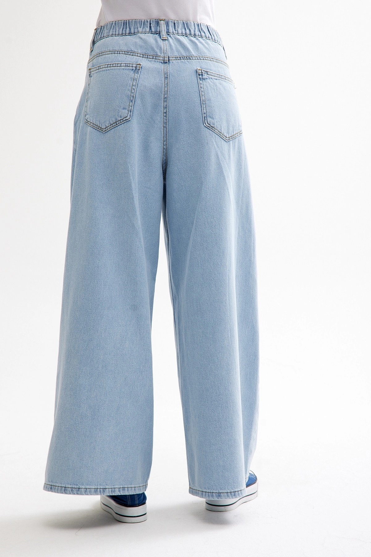 Qanu Pamuklu Bol Paça Açık Mavi Jean