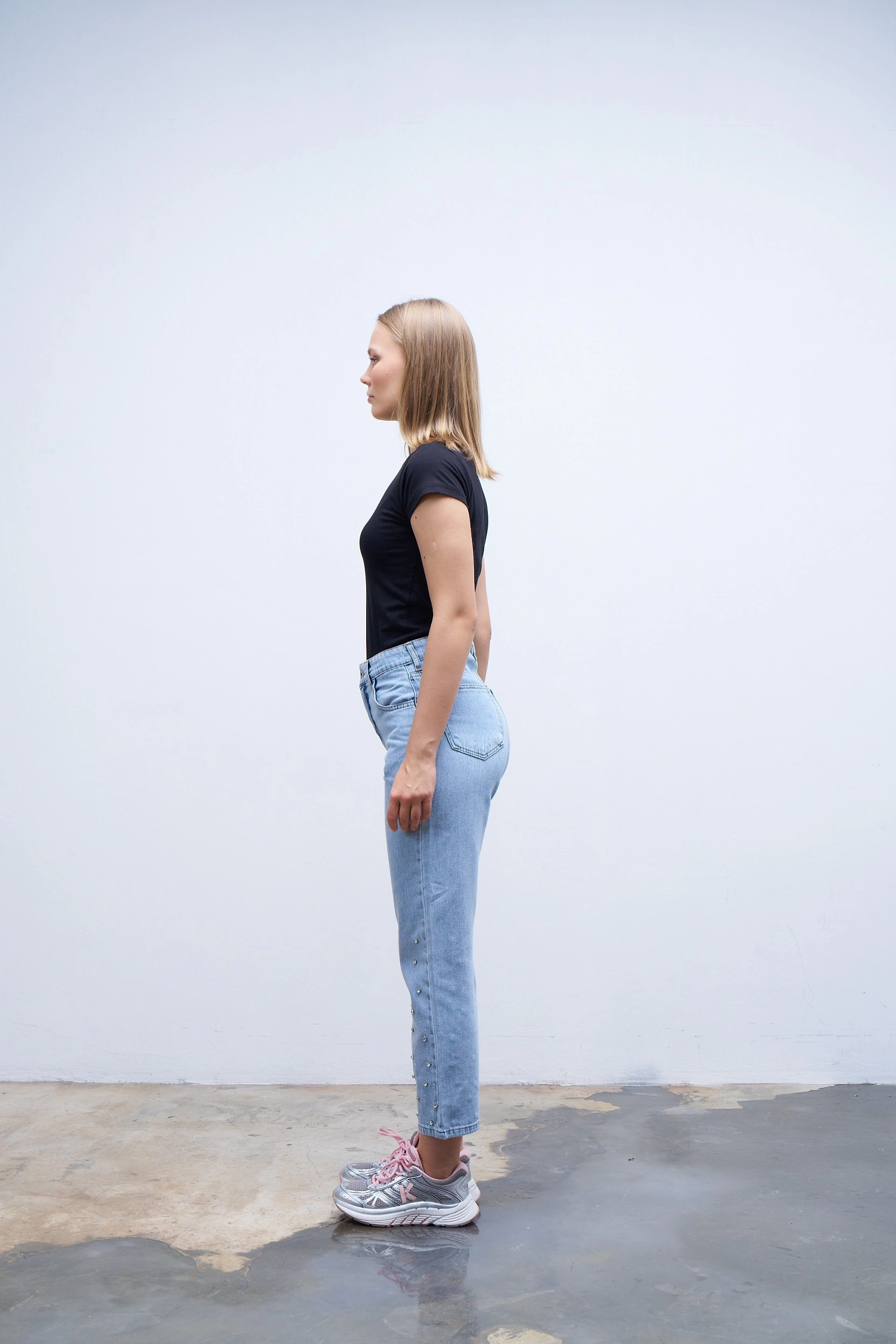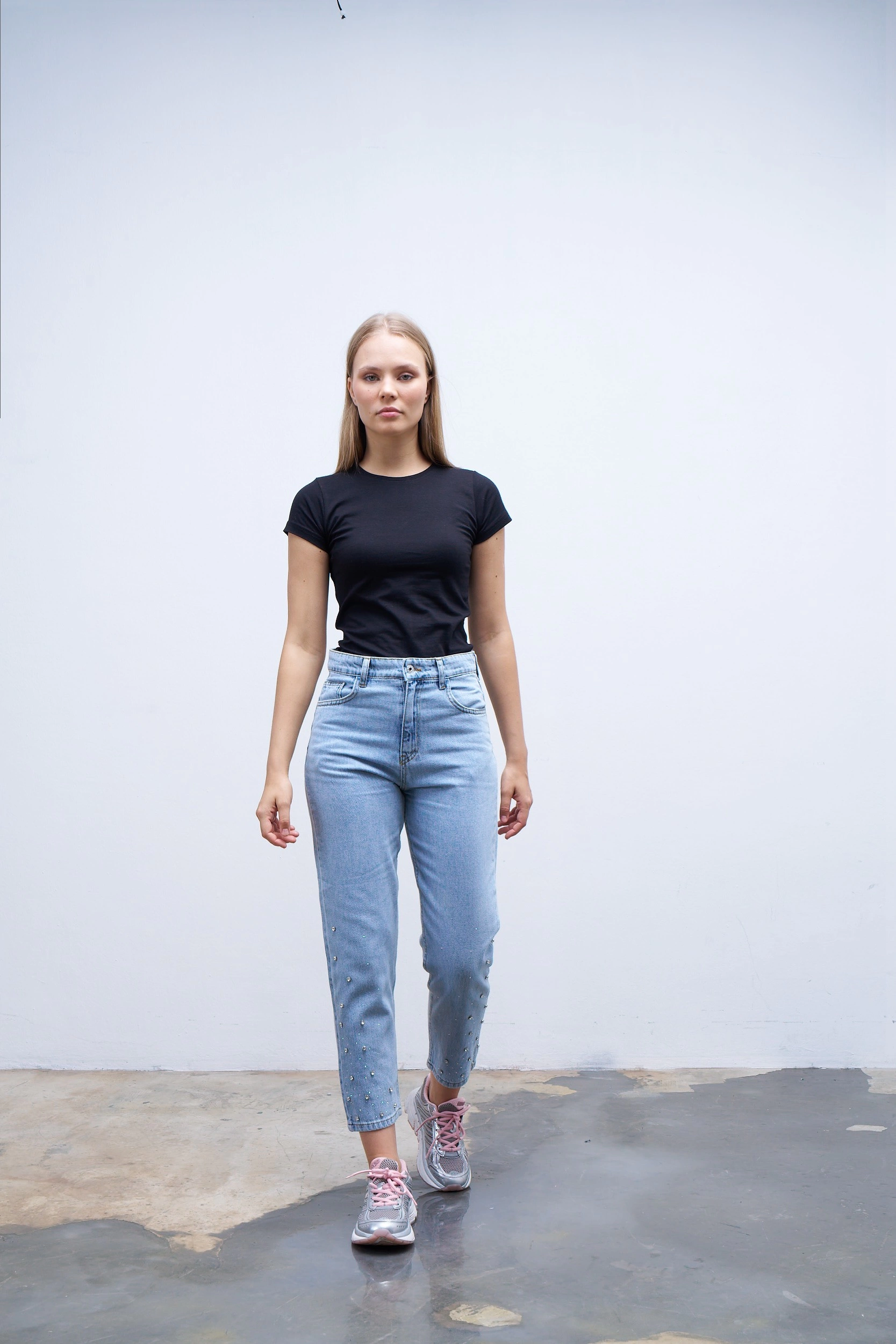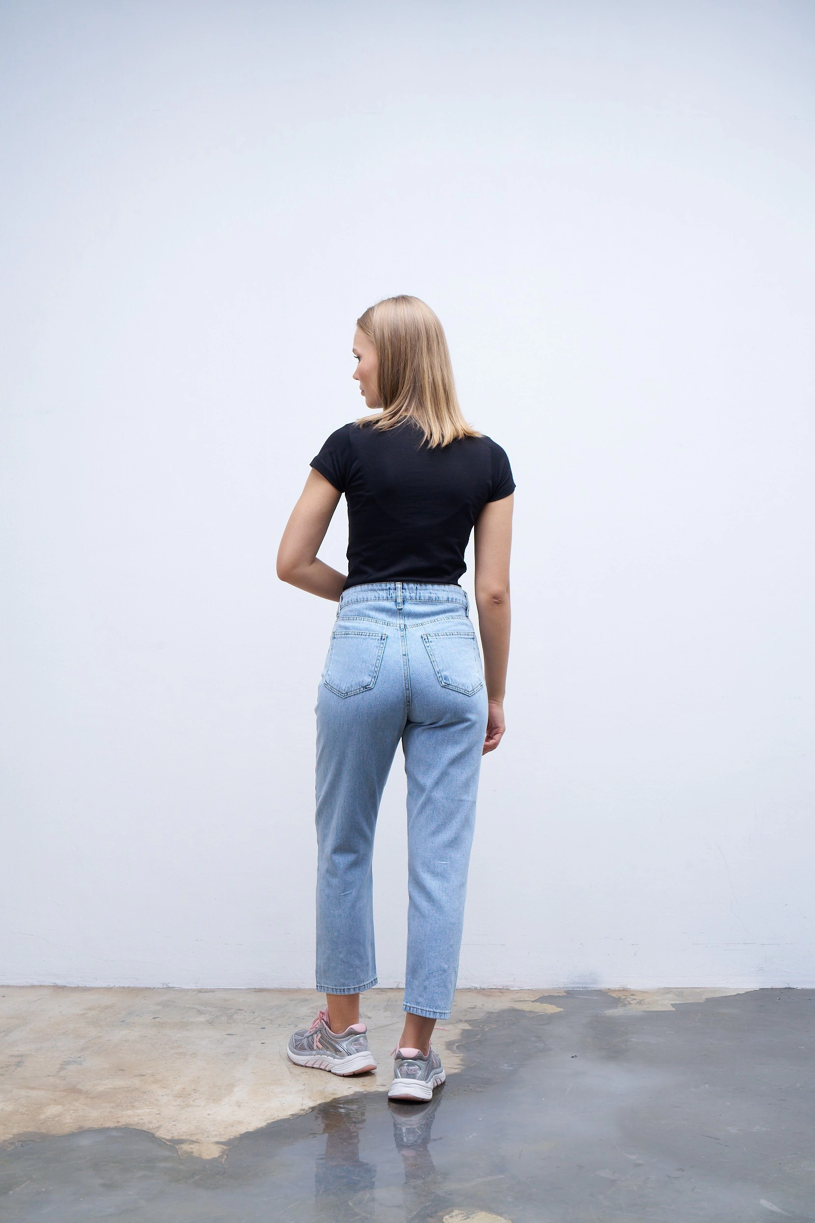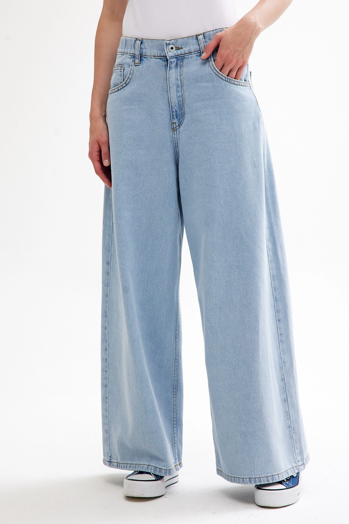 Qanu Pamuklu Bol Paça Açık Mavi Jean
