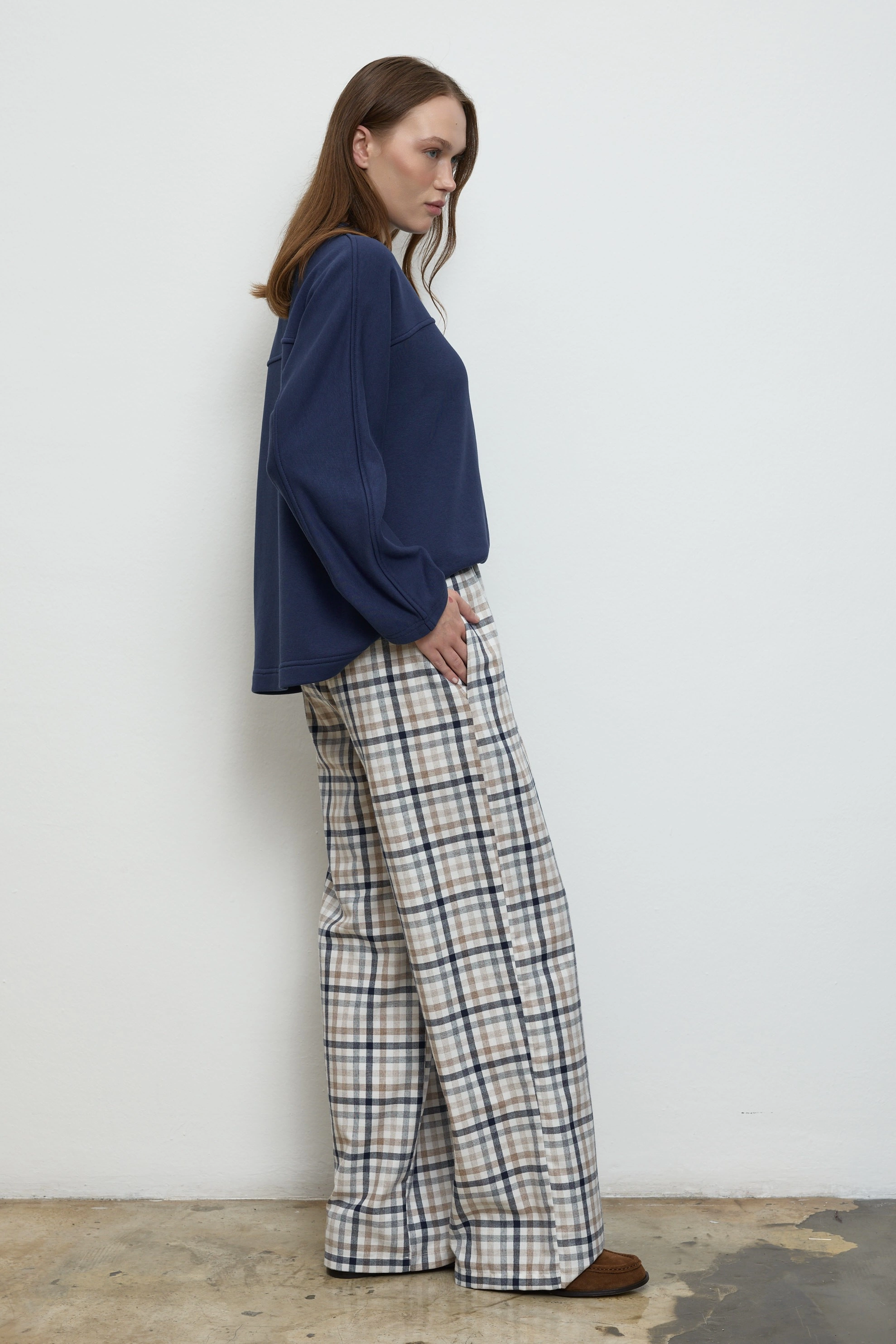 Qanu Pamuklu Önü Dikişli Pantolon Açık Mavi