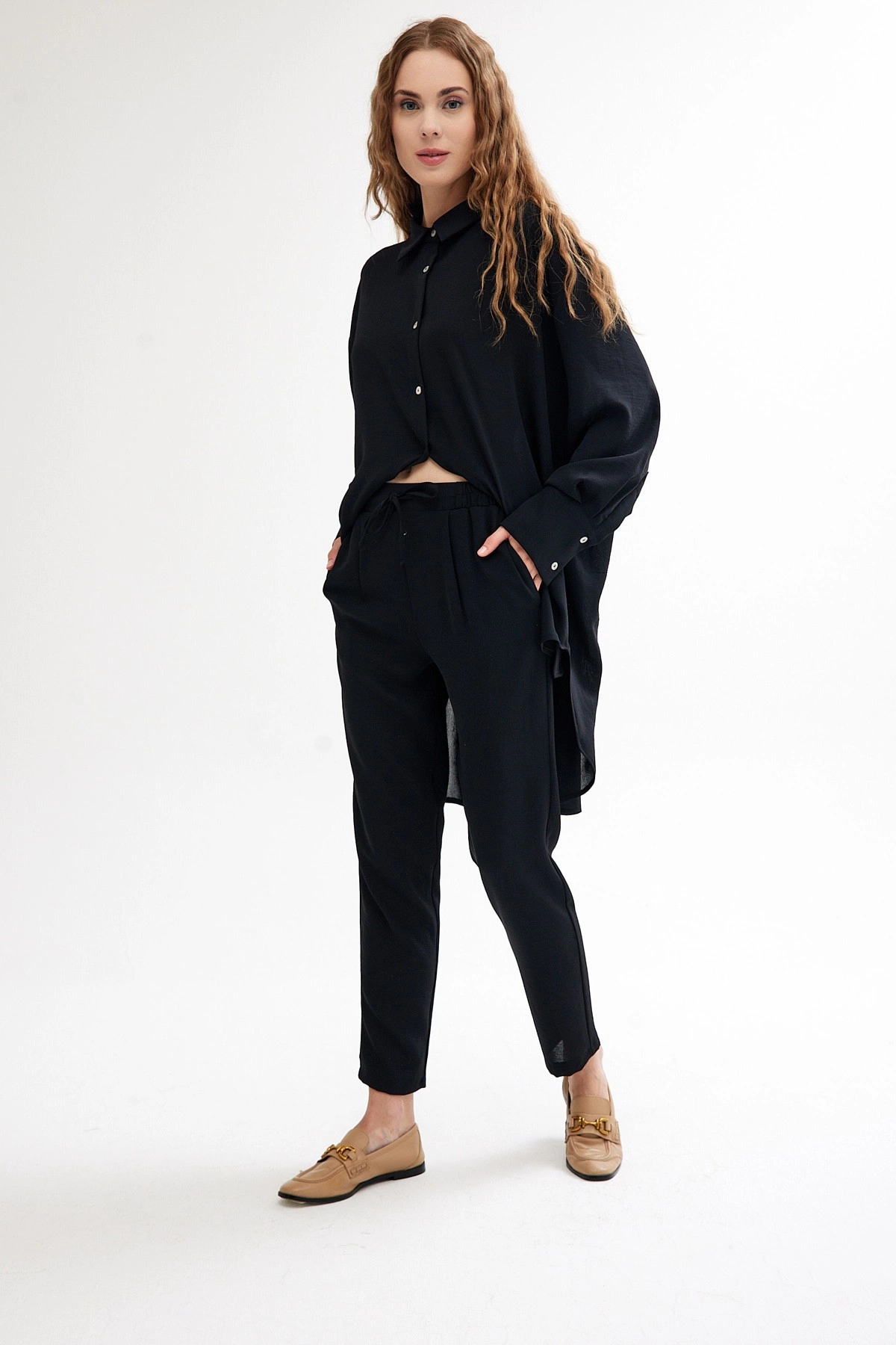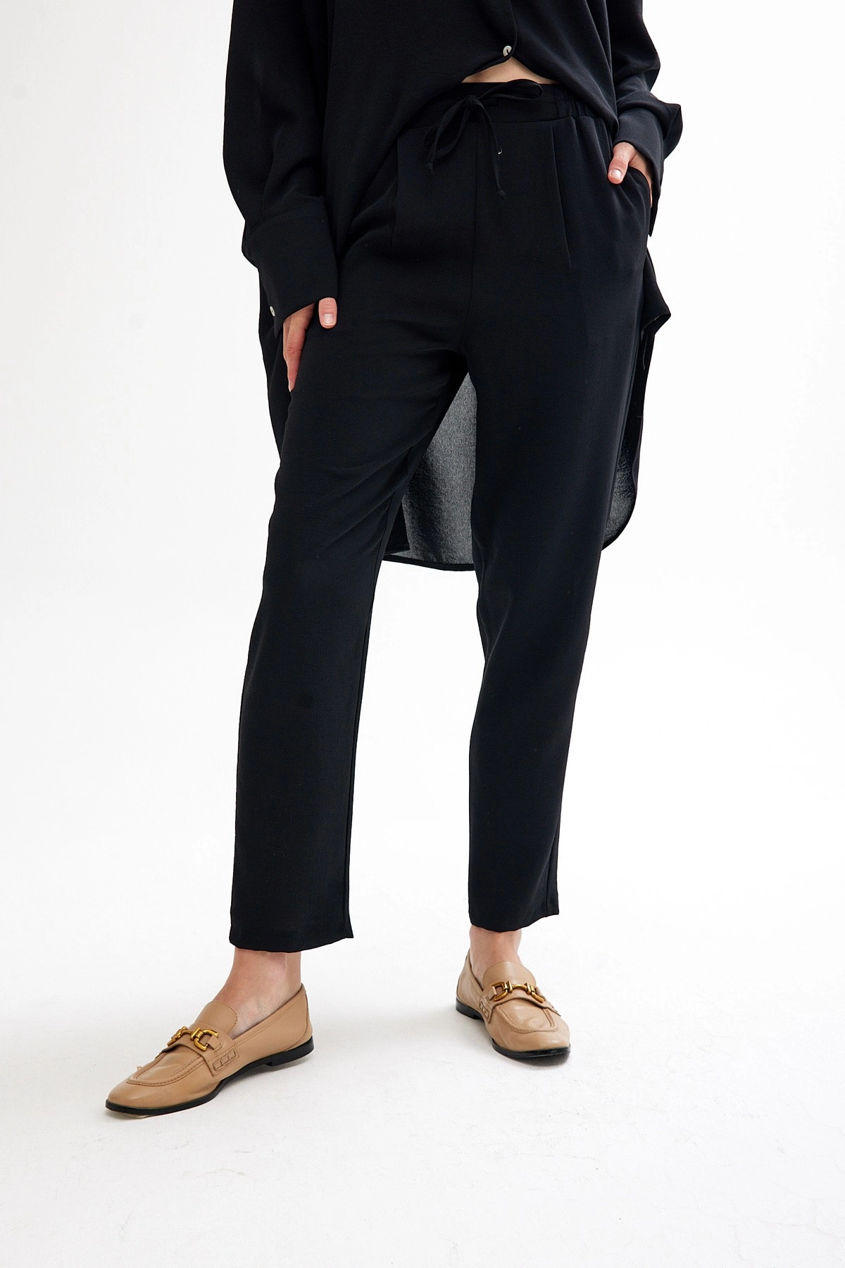 Qanu Çift Bel Detaylı Pantolon Siyah