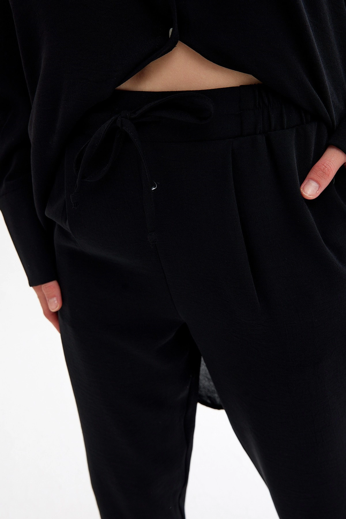 Qanu Pamuklu Paçası Dikişli Pantolon Siyah