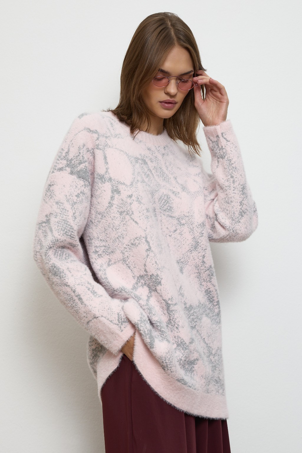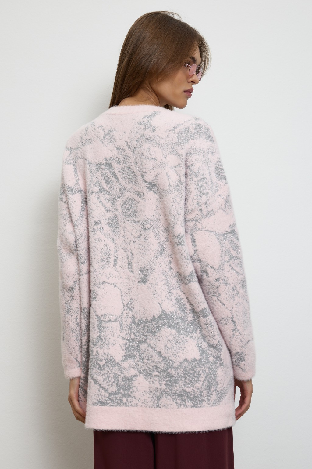 -Yumuşacık angora kumaştan üretilmiş, şıklığı ve konforu bir araya getiren desenli triko kazak. Günlük stilinize sıcak bir dokunuş katın.
