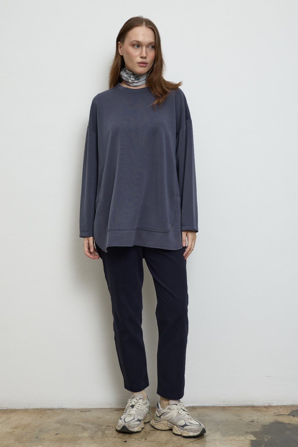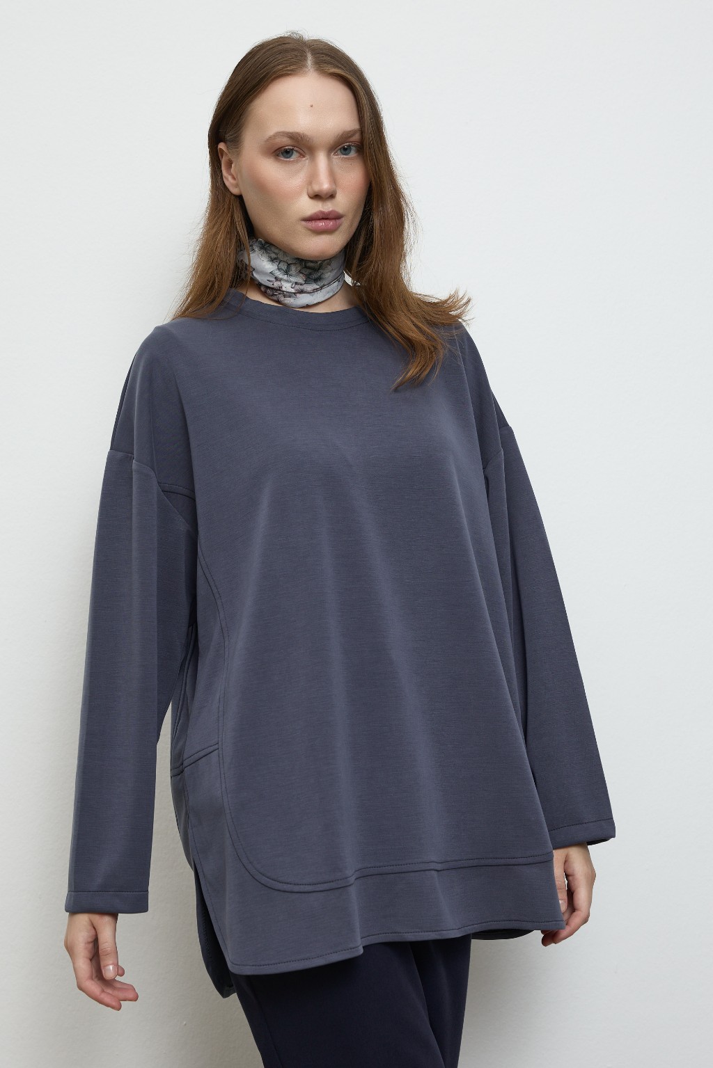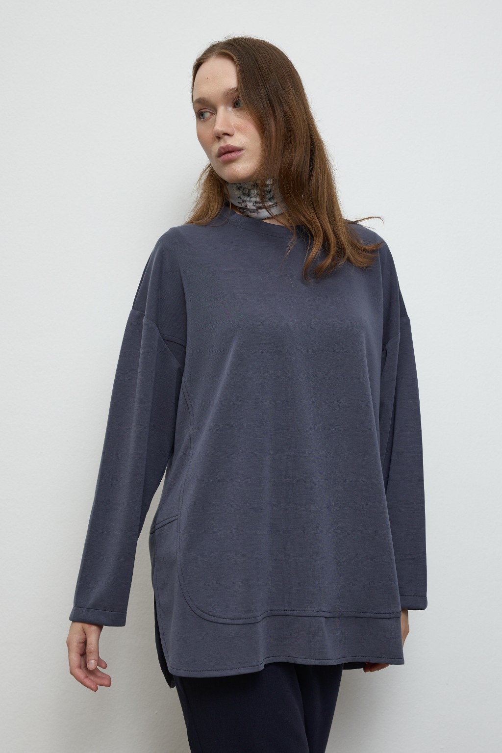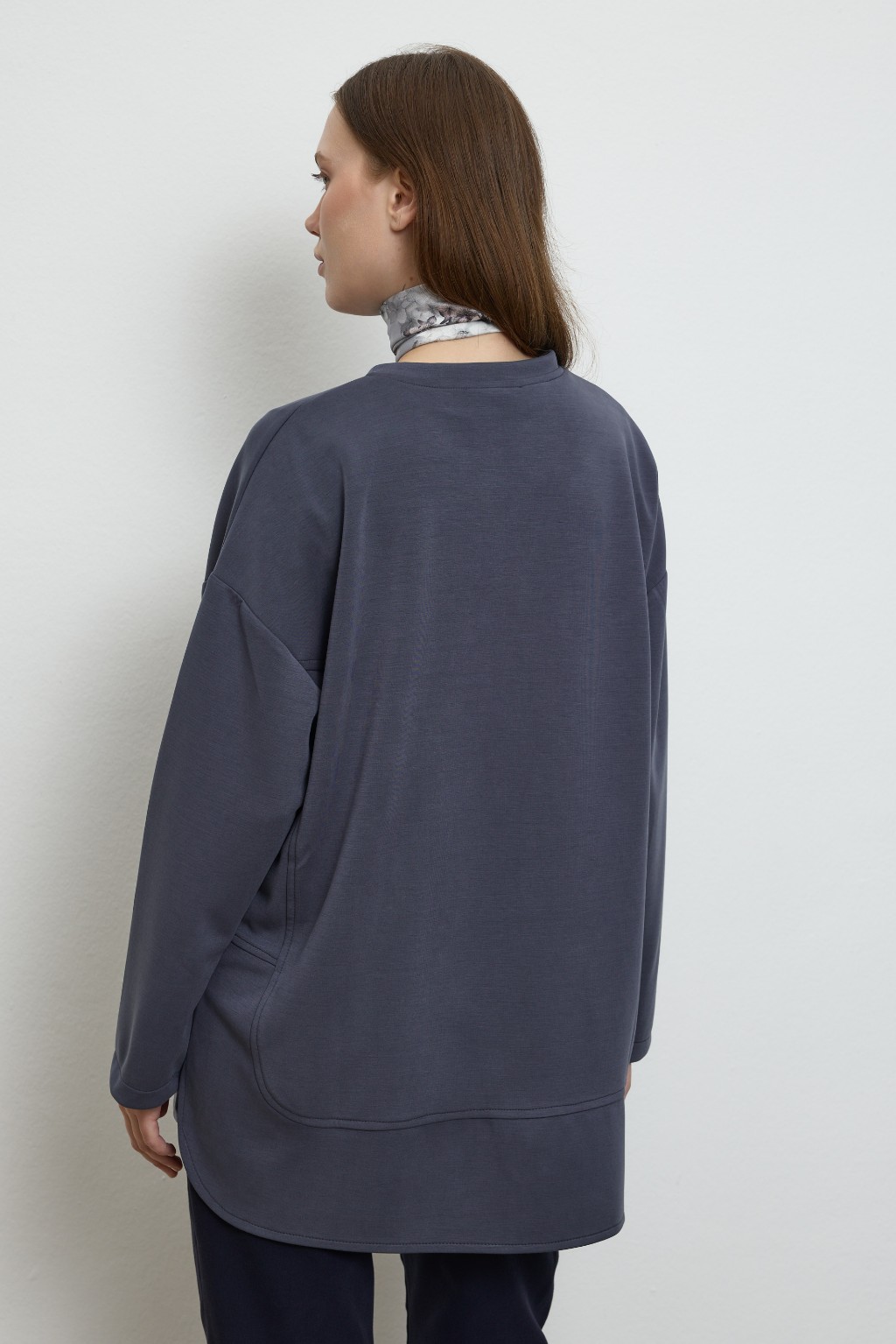 -Modern görünümünü tamamlayan önü kısa – arkası uzun kesimi ve dikkat çeken dikiş detayları, basic sweatshirt’lere şık bir alternatif sunuyor.