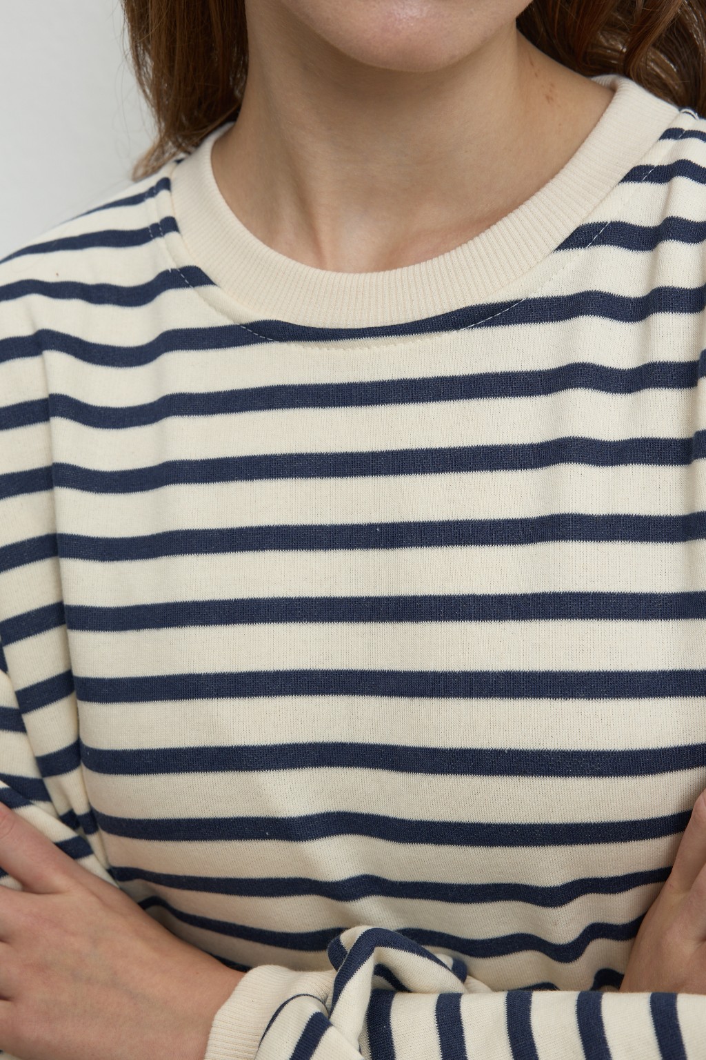 Qanu Basıc Çizgili Uzun Sweatshirt Lacivert