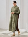 -Ürünümüz doğal kumaştan üretilmiş olup düğmeli,düşük kol,yakalıdır. Gizli cebi mevcuttur. Ön tarafında arkasında mevcut olan renkten biye detayı mevcuttur.