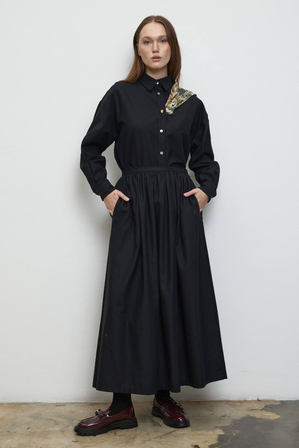 -Doğal pamuk karışımlı kumaşı sayesinde hafif, nefes alabilir ve cilde dost bir yapıya sahiptir. Beli büzgülü formu ise hem konfor hem de vücuda uyumlu bir görünüm sunar.