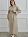 -İnce harici kuşağıyla ister bele oturtulabilir ister salaş şekilde kullanılabilir. Hem elbise gibi tek başına hem de pantolonla kombinlenebilir.