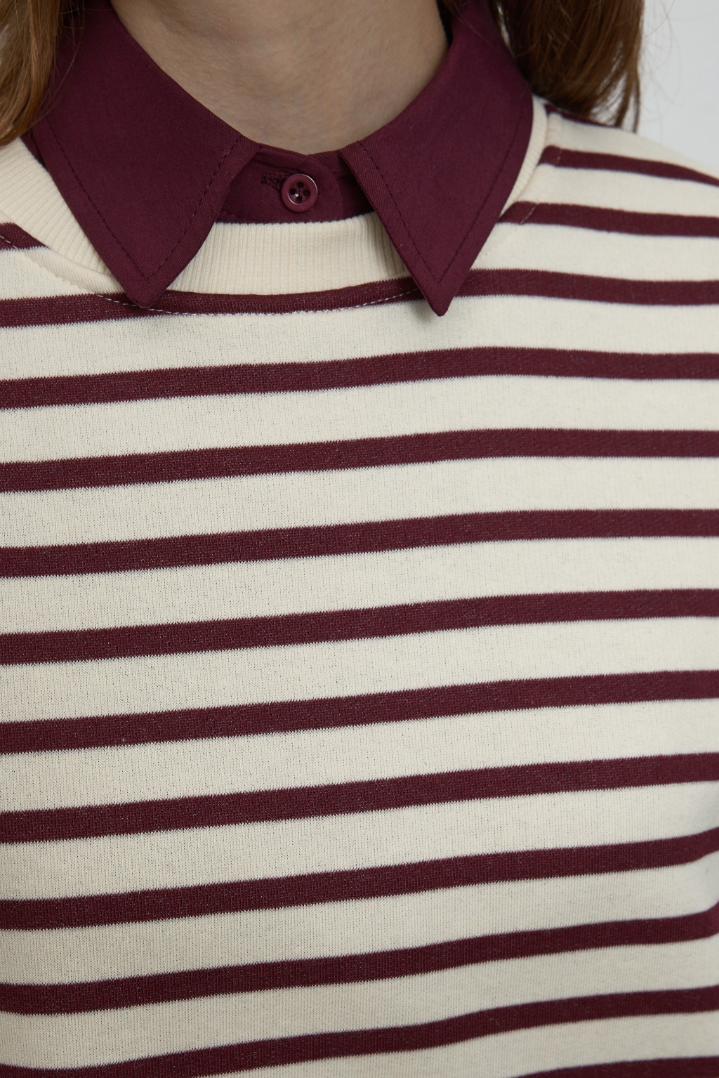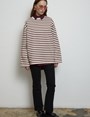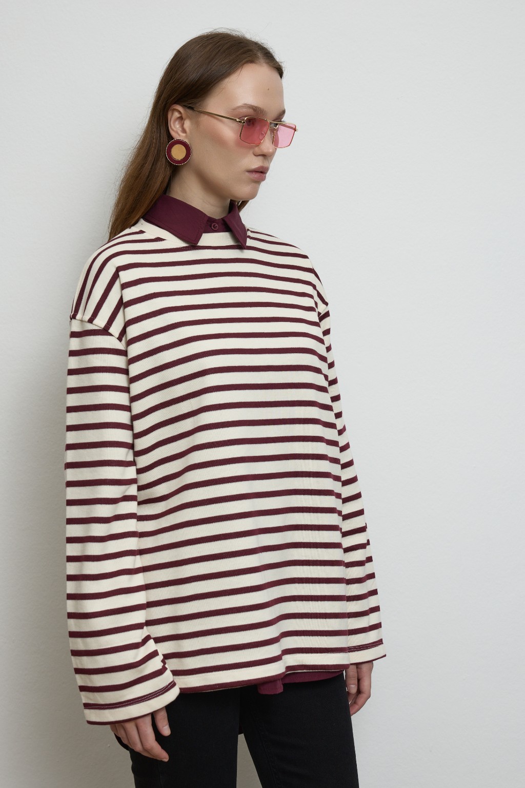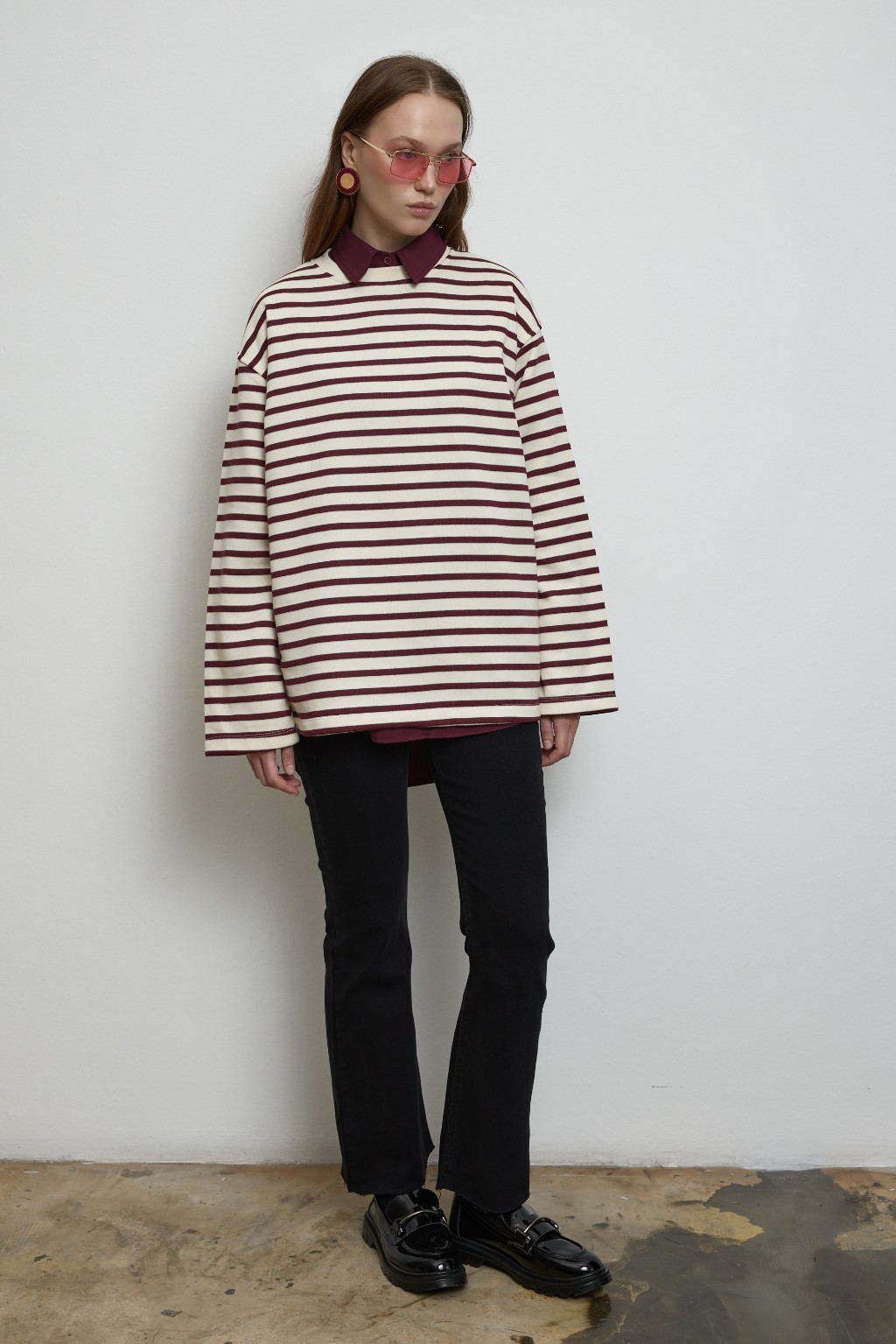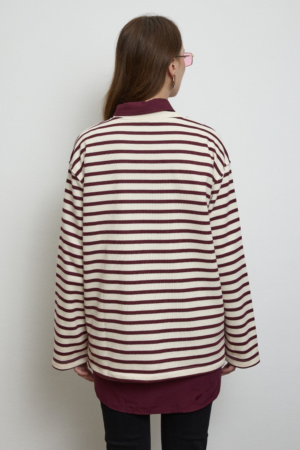Qanu Çizgili Kısa Sweatshirt Bordo