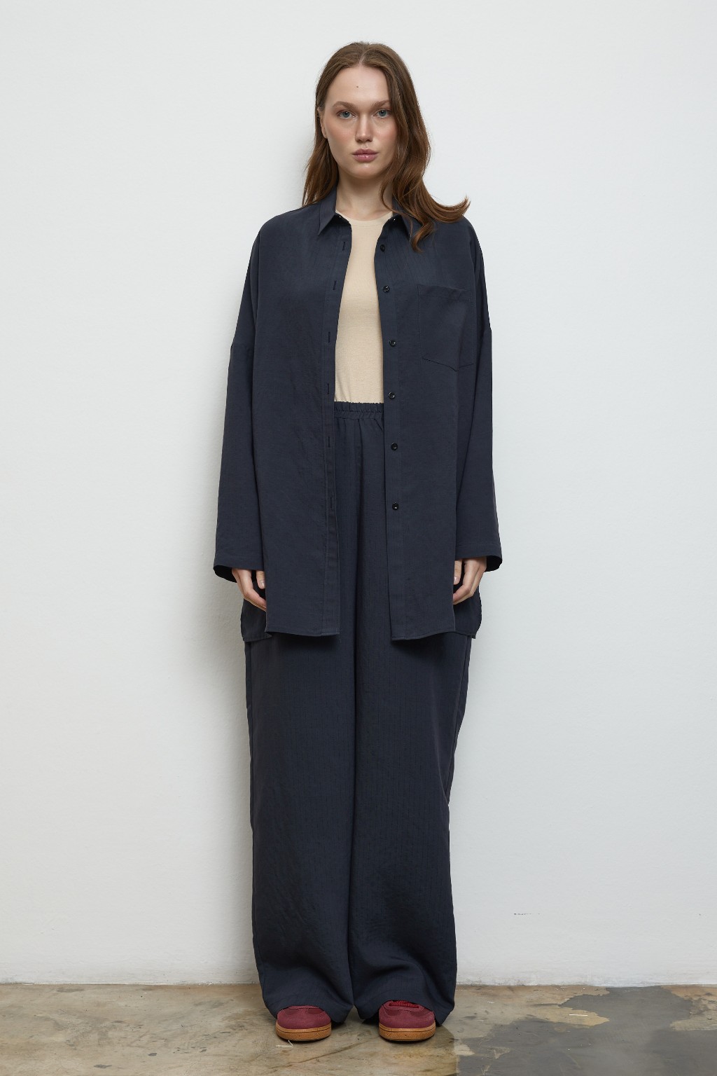 -Pantolon ise lastikli beli, cepli yapısı ve rahat kalıbıyla maksimum konfor sağlarken, zarif duruşundan ödün vermez.