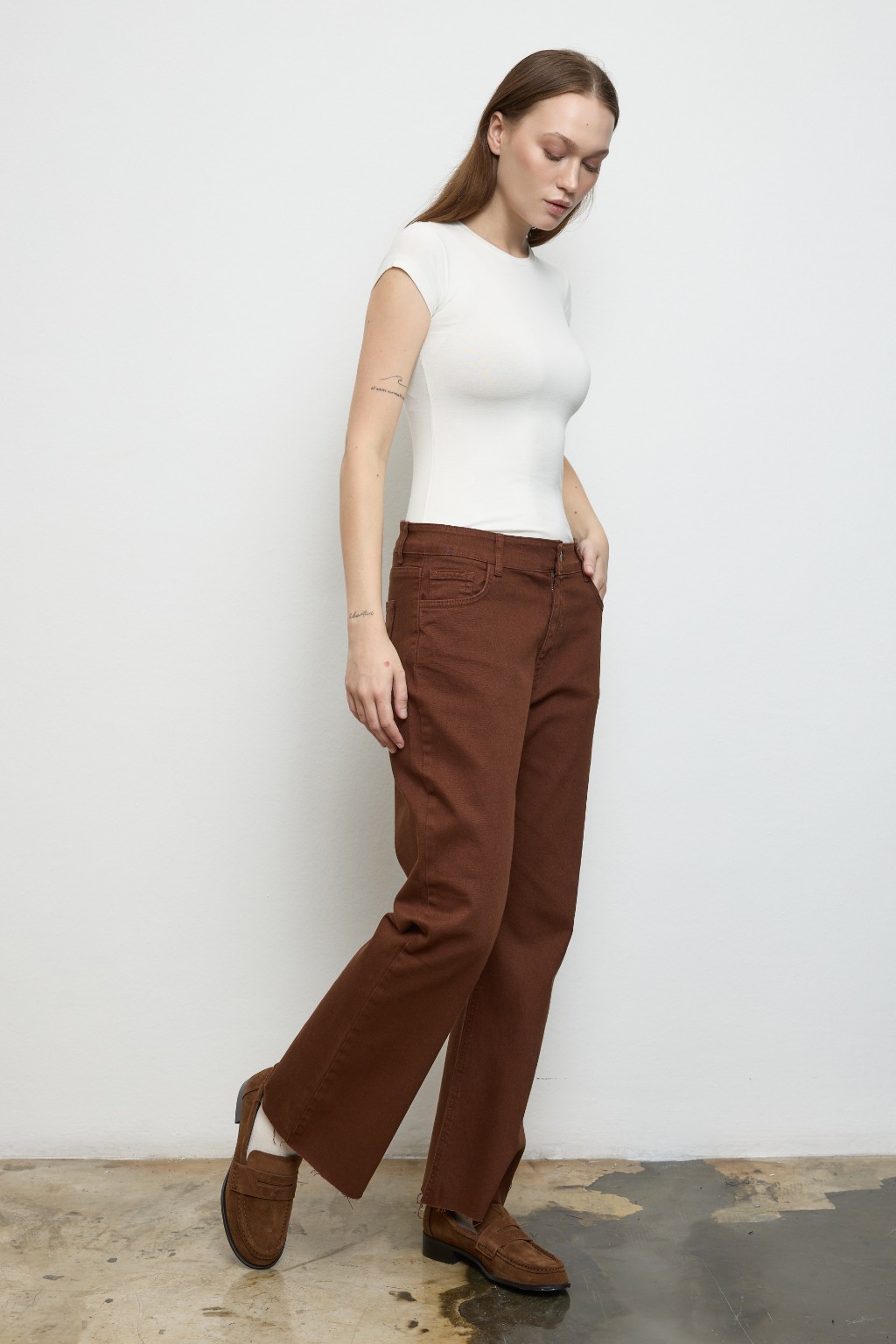 -Klasik tarzı modern dokunuşlarla buluşturan bu denim pantolon, gardırobunuzun vazgeçilmez parçası olmaya aday. İspanyol paça kesimiyle siluetinizi zarif bir şekilde uzatırken, fermuar ve düğme detayı şıklığa dinamik bir hava katıyor. Dikişsiz paça tasarımı ise doğal ve salaş bir görünüm sunarak özgün stilinizi yansıtmanıza olanak tanıyor.
