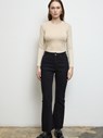 -Klasik tarzı modern dokunuşlarla buluşturan bu denim pantolon, gardırobunuzun vazgeçilmez parçası olmaya aday. İspanyol paça kesimiyle siluetinizi zarif bir şekilde uzatırken, fermuar ve düğme detayı şıklığa dinamik bir hava katıyor. Dikişsiz paça tasarımı ise doğal ve salaş bir görünüm sunarak özgün stilinizi yansıtmanıza olanak tanıyor.
