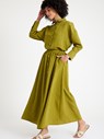 -Gömlek ise, göğüs kısmındaki dekoratif dikiş detayları ve önden düğmeli yapısıyla klasik çizgilere modern bir yorum katıyor. Patlı kol düğmeleri ise bütüncül şıklığı tamamlayan ince bir dokunuş.
