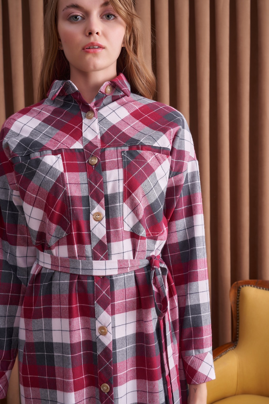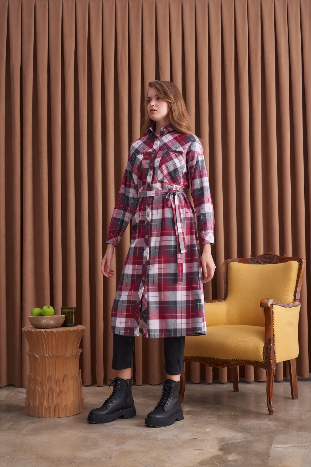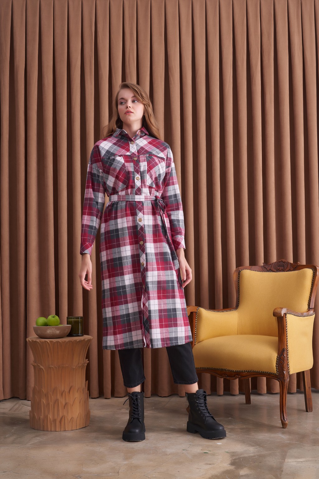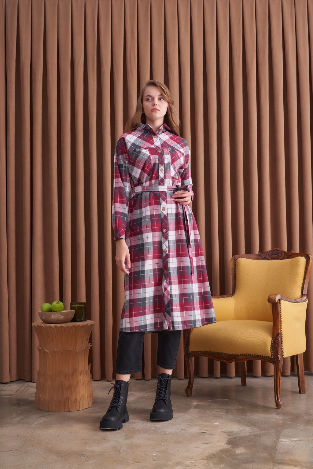Qanu Ekose Gömlek Bordo