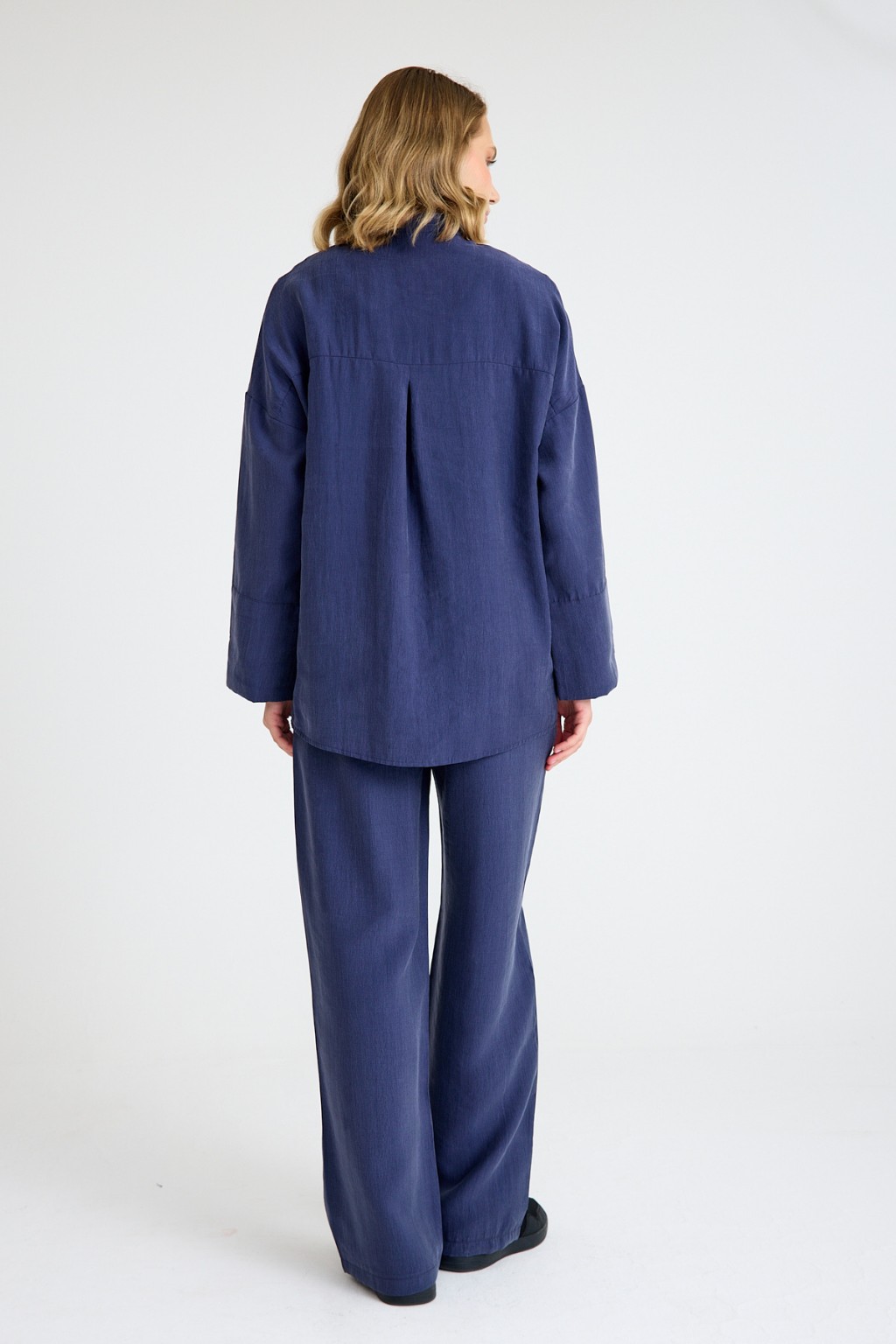 -Lastikli beliyle konfor sağlayan pantolon ise bol paça tasarımıyla özgür ve akıcı bir siluet sunar.