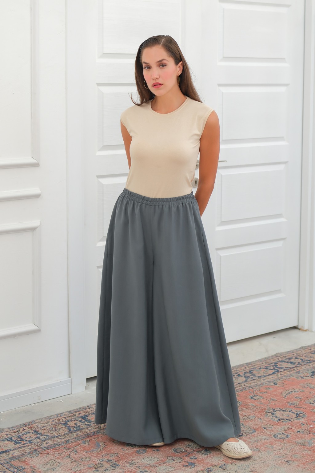 -Zarafet ve konforu bir araya getiren bu pantolonlu takım, stil sahibi kadınlar için özenle tasarlandı. Geniş paçalı pantolonu sayesinde hem özgürce hareket etmenin hem de sofistike bir görünümün keyfini çıkarın, beli lastikli yapısıyla gün boyu konfor sağlar, farklı vücut tiplerine uyum gösterir.