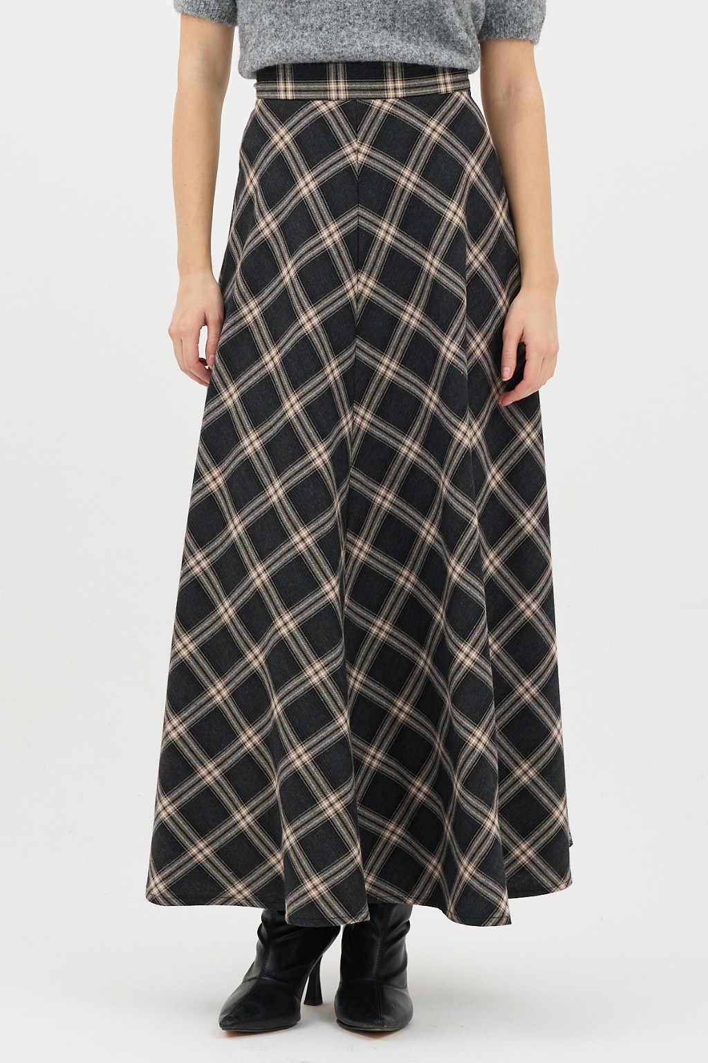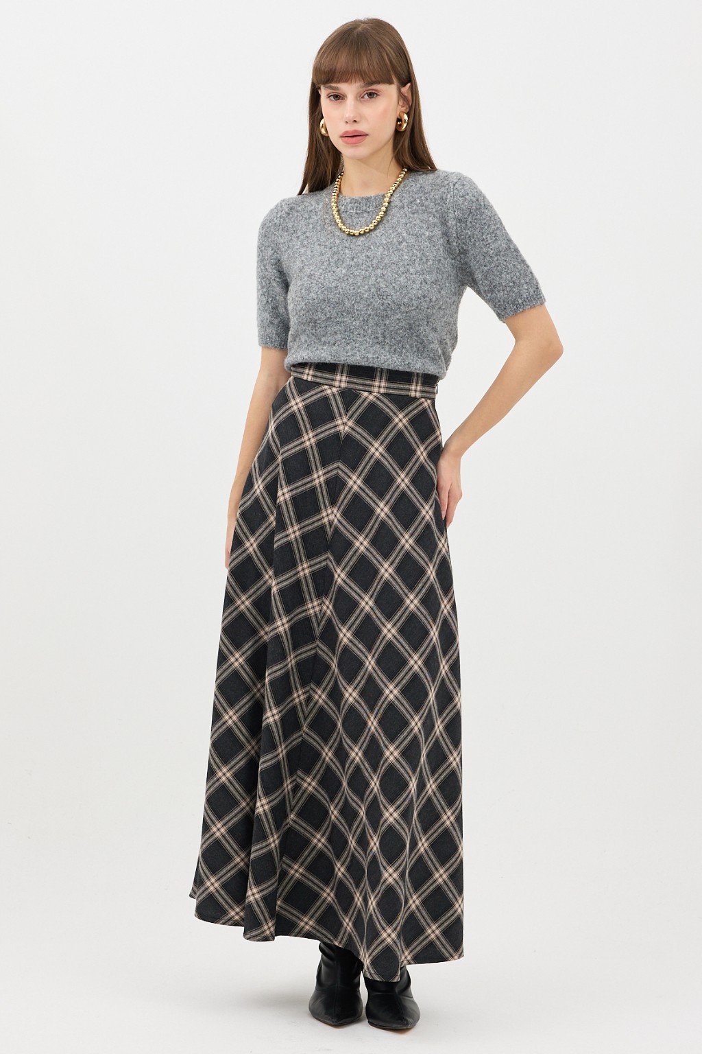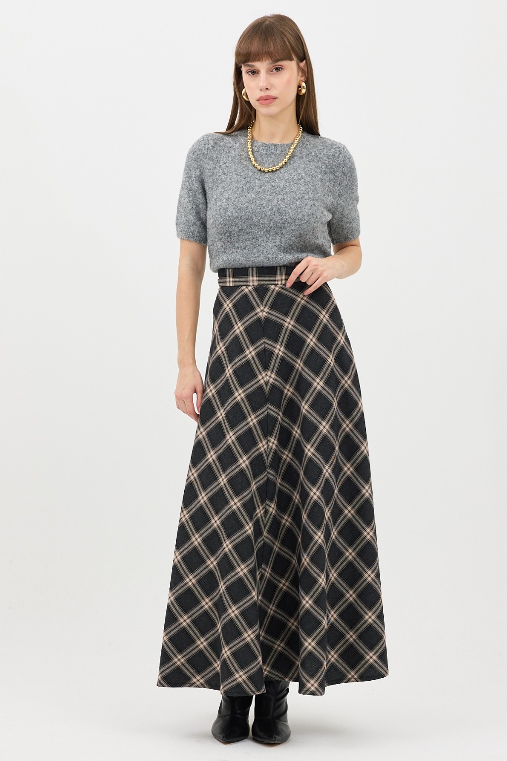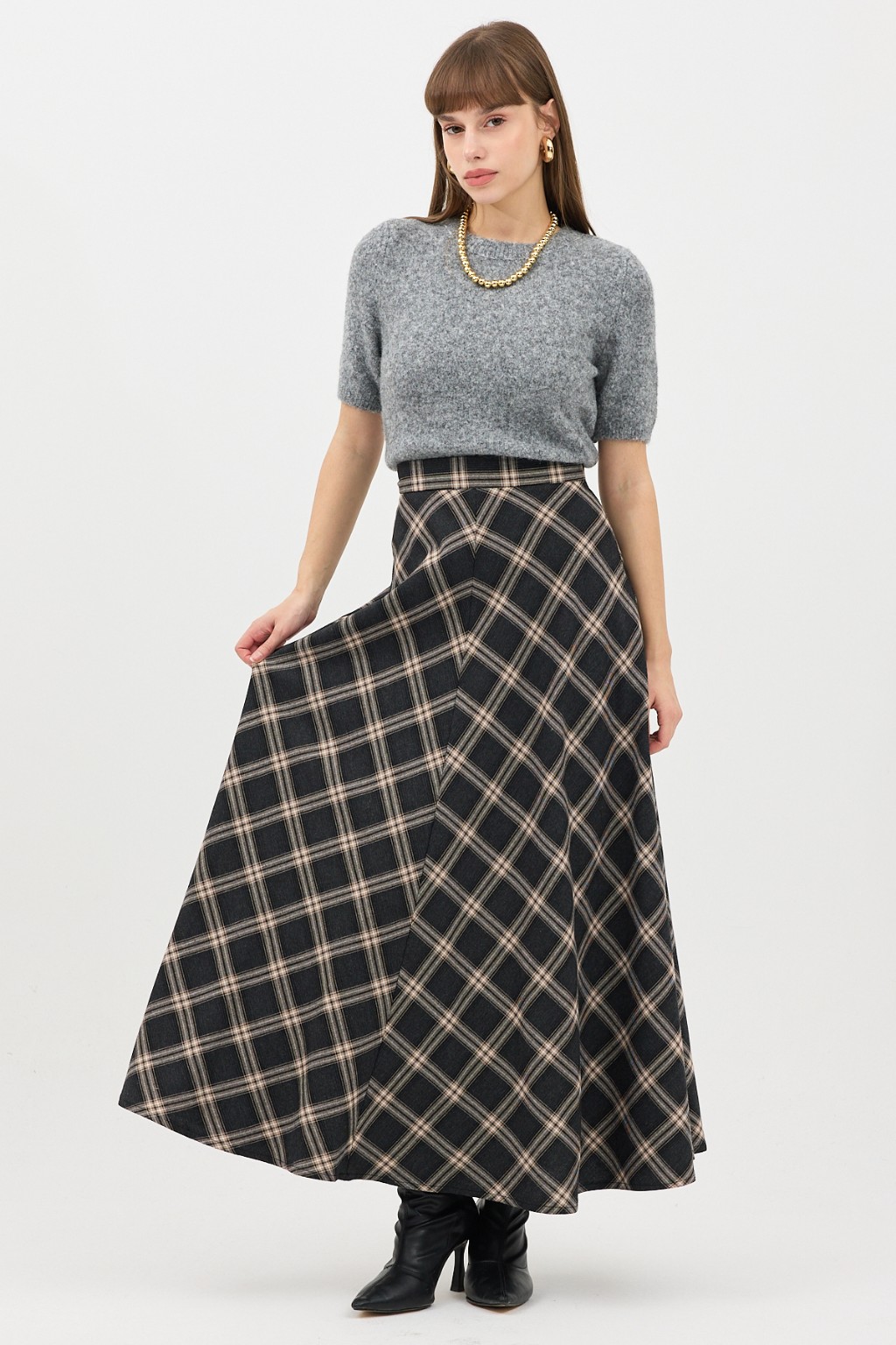 Qanu Leydi Ekose Etek Siyah-Vizon