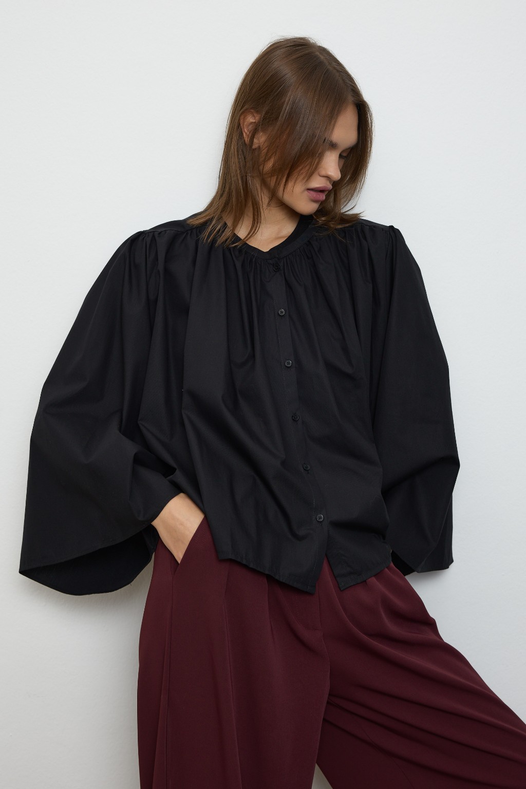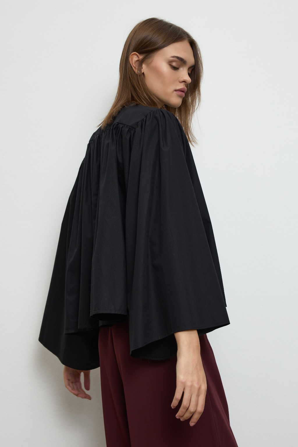 -Zarafetin ve rahatlığın buluştuğu bu özel tasarım, gardırobunuzun favorisi olmaya aday. %100 pamuklu dokusuyla gün boyu ferahlık sunarken, omuzlardaki biyeli detaylar ve geniş kollar modele hareket ve şıklık katıyor.
