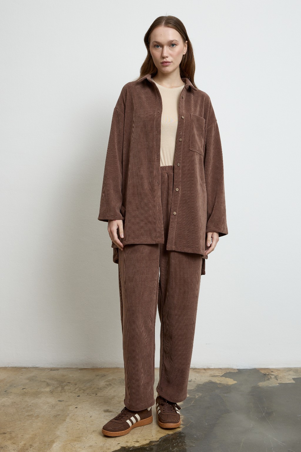 -Kadifenin yumuşak dokusu ve sezon trendlerine uygun yapısıyla bu takım; ister ev rahatlığında, ister şehir şıklığında sizinle.