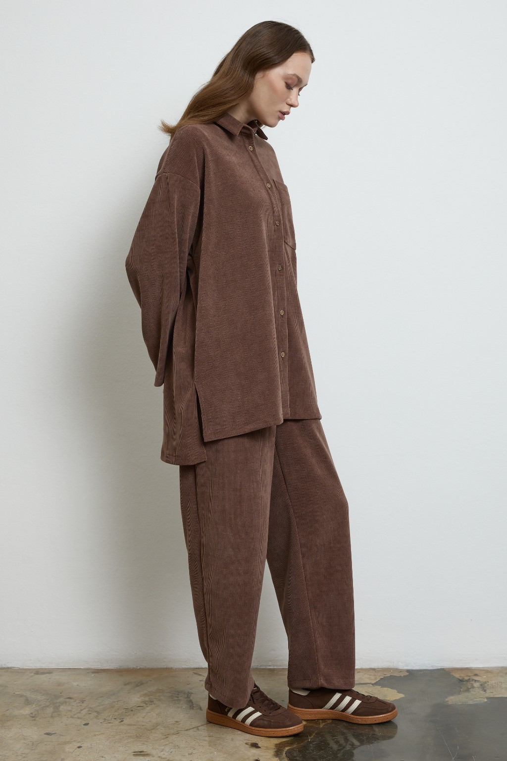 -Takımın tamamlayıcısı olan pantolon ise beli lastikli ve rahat kalıp formuyla maksimum konfor sunuyor. İki farklı beden seçeneğiyle (1 ve 2 beden) farklı vücut tiplerine uyum sağlar, gardırobunuzun vazgeçilmezlerinden biri olmaya aday.