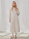 -Hakim yaka detayı, sade ve zarif bir görünüm sunarken, düğmeli tasarımı modern bir dokunuş ekler.