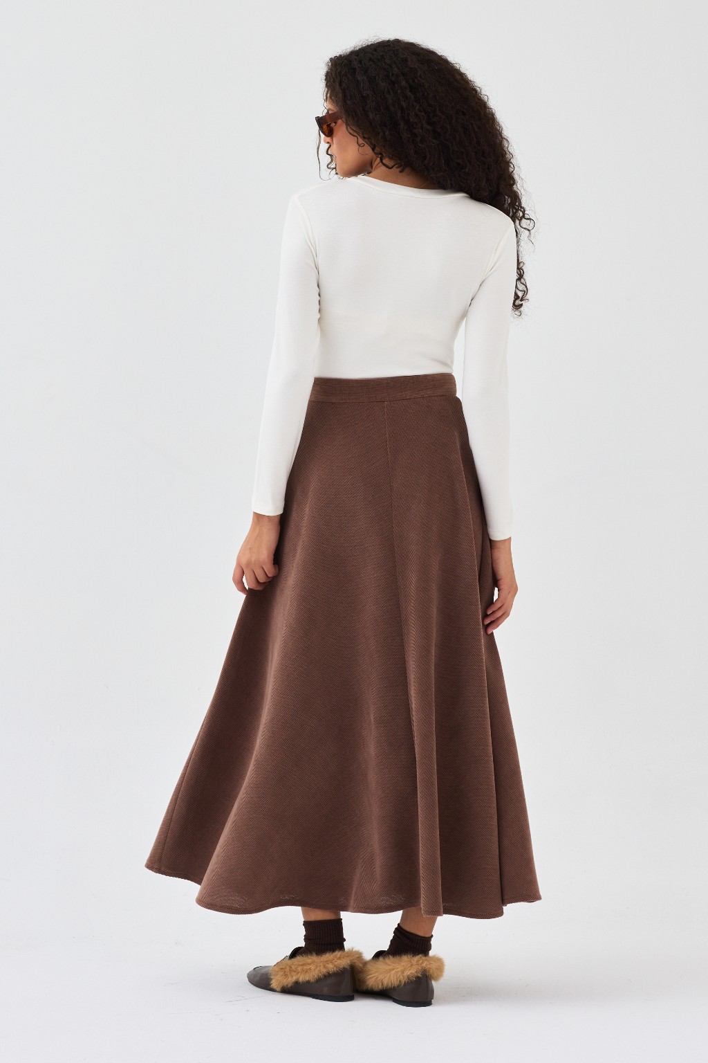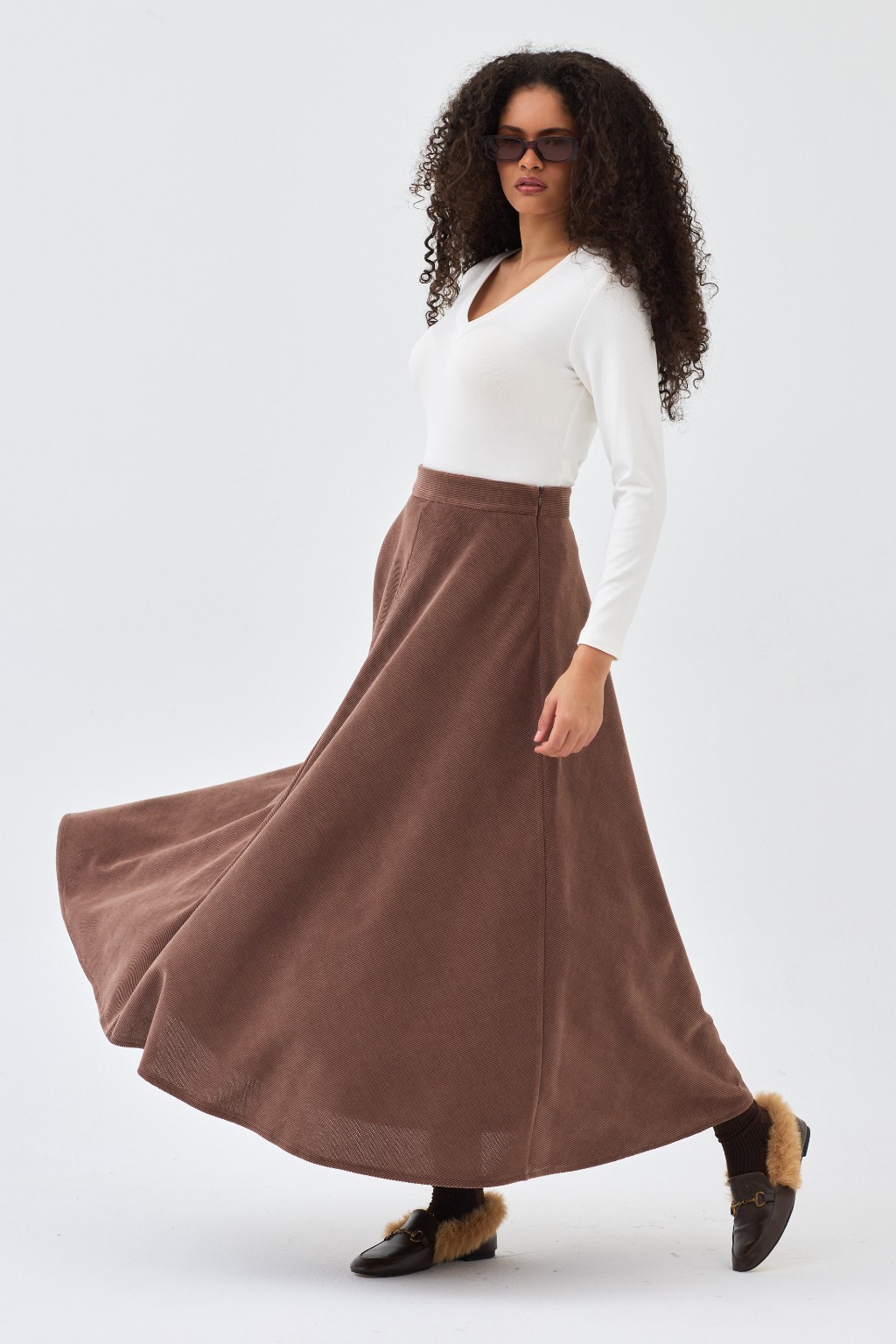 -Kadife kumaştan üretilen bu çan formundaki etek, her adımda zarif bir hareket yakalamanızı sağlar.